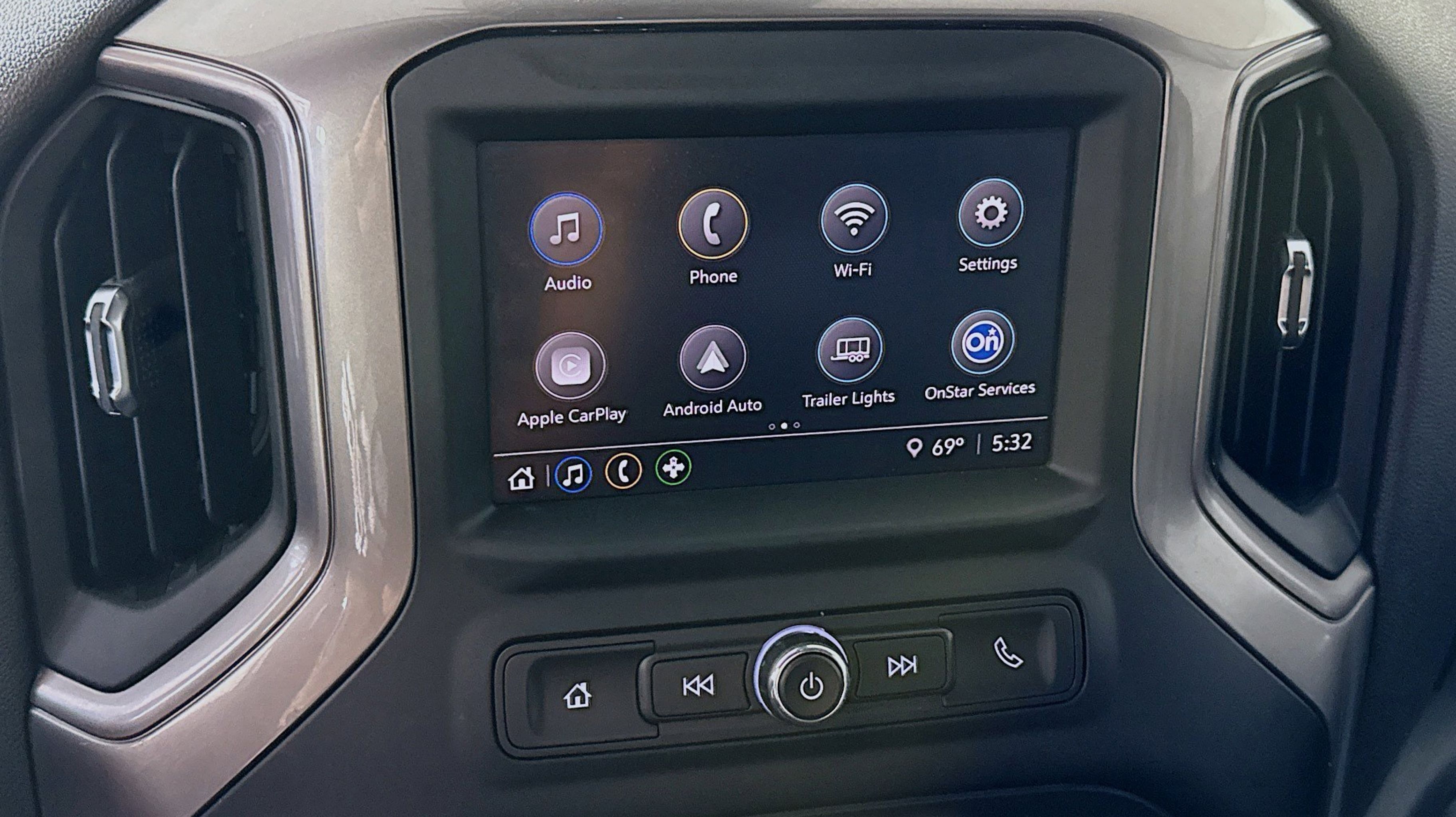 - AUDIO SYSTEM CHEVROLET INFOTAINMENT 3 SYSTEM 7 diagonal color touchscreen AM/FM stereo. Additional features for compatible phones include: Bluetooth audio streaming for 2 active devices voice command pass-through to phone wired Apple CarPlay and Android Auto capable. (STD)