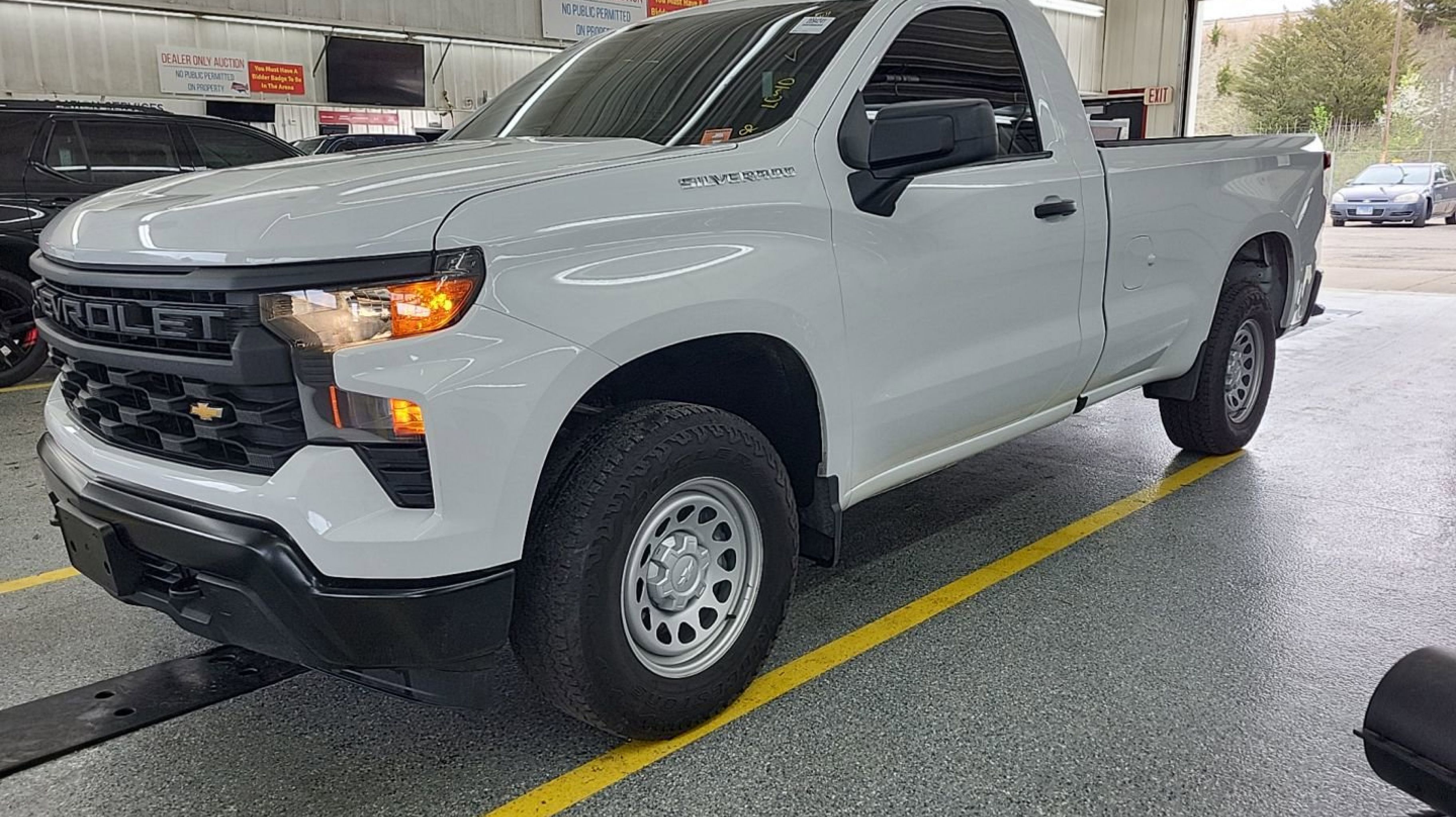 Summit White 2025 Chevrolet Silverado 1500 WT RWD 10-Speed Automatic EcoTec3 5.3L V8 10-Speed Automatic, Jet Black w/Cloth Seat Trim, 3.5 Monochromatic Display Driver Info Center, 4-Way Manual Driver Seat Adjuster, Black (Semi-Gloss) Front Bumper, Black (Semi-Gloss) Rear Bumper, Bluetooth® For Phone, Electronic Cruise Control, Front Frame-Mounted Black Recovery Hooks, HD Rear Vision Camera, Heated Power-Adjustable Outside Mirrors, Hitch Guidance, Inside Rear-View Mirror w/Tilt, Locking Tailgate, Manual Tailgate Function w/No EZ Lift, Manual Tilt Wheel Steering Column, OnStar Services Capable, Power Front Windows w/Driver Express Up/Down, Power Front Windows w/Passenger Express Down, Preferred Equipment Group 1WT, Remote Keyless Entry, Rubberized-Vinyl Floor Covering, SiriusXM Delete, Solar Absorbing Tinted Glass, Standard Suspension Package, Standard Tailgate, Teen Driver, Tire Pressure Monitoring System, Trailering Package, Wi-Fi Hot Spot Capable, 170 Amp Alternator, 2 Speakers, 2-Speaker Audio System, 220 Amp Alternator, 4-Wheel Disc Brakes, 40/20/40 Front Split Bench Seat, ABS brakes, Air Conditioning, Apple CarPlay/Android Auto, Auto High-beam Headlights, Auto-Locking Rear Differential, Automatic Emergency Braking, Auxiliary External Transmission Oil Cooler, Brake assist, Compass, Delay-off headlights, Driver door bin, Dual front impact airbags, Dual front side impact airbags, Electronic Stability Control, Emergency communication system: OnStar, External Engine Oil Cooler, Following Distance Indicator, Forward Collision Alert, Front anti-roll bar, Front Center Armrest w/Storage, Front License Plate Kit, Front Pedestrian Braking, Front reading lights, Front wheel independent suspension, Fully automatic headlights, Heated door mirrors, Illuminated entry, Integrated Trailer Brake Controller, IntelliBeam Automatic High Beam On/Off, Lane Keep Assist w/Lane Departure Warning, Low tire pressure warning, Occupant sensing airbag, Outside temperature display, Overhead airbag, Overhead console, Panic alarm, Passenger door bin, Passenger vanity mirror, Power door mirrors, Power steering, Power windows, Premium audio system: Chevrolet Infotainment 3, Radio data system, Radio: Chevrolet Infotainment 3 System, Rear reading lights, Rear step bumper, Remote keyless entry, SiriusXM Trial Subscription, Speed control, Speed-sensing steering, Tachometer, Tilt steering wheel, Traction control, Trip computer, Variably intermittent wipers, Vinyl Seat Trim, Voltmeter, Wheels: 17 x 8 Ultra Silver Painted Steel, 10-Speed Automatic, Jet Black w/Cloth Seat Trim, 3.5 Monochromatic Display Driver Info Center, 4-Way Manual Driver Seat Adjuster, Black (Semi-Gloss) Front Bumper, Black (Semi-Gloss) Rear Bumper, Bluetooth® For Phone, Electronic Cruise Control, Front Frame-Mounted Black Recovery Hooks, HD Rear Vision Camera, Heated Power-Adjustable Outside Mirrors, Hitch Guidance, Inside Rear-View Mirror w/Tilt, Locking Tailgate, Manual Tailgate Function w/No EZ Lift, Manual Tilt Wheel Steering Column, OnStar Services Capable, Power Front Windows w/Driver Express Up/Down, Power Front Windows w/Passenger Express Down, Preferred Equipment Group 1WT, Remote Keyless Entry, Rubberized-Vinyl Floor Covering, SiriusXM Delete, Solar Absorbing Tinted Glass, Standard Suspension Package, Standard Tailgate, Teen Driver, Tire Pressure Monitoring System, Trailering Package, Wi-Fi Hot Spot Capable.