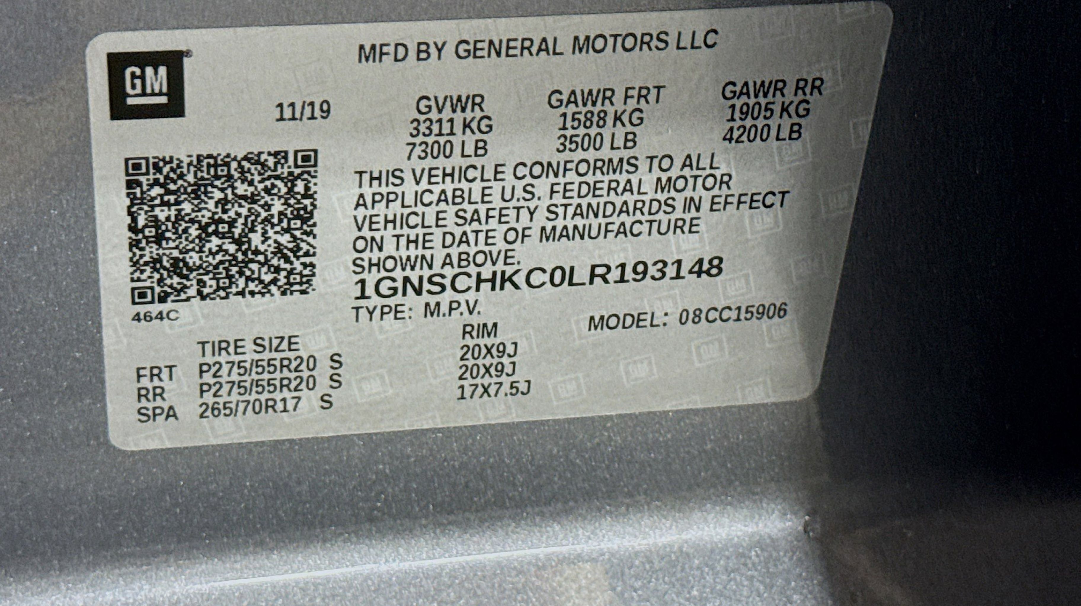 CARFAX One-Owner. 12-Volt Auxiliary Power Outlet (5), 1st & 2nd Row Color-Keyed Carpeted Floor Mats, 2nd Row 60/40 Split-Folding Manual Bench, 3rd Row Manual 60/40 Split-Folding Fold Flat Bench, 4-Wheel Antilock Disc Brakes, 6-Way Power Front Passenger Seat Adjuster, Auto-Dimming Inside Rear-View Mirror, Automatic Emergency Braking, Black Assist Steps, Bose Premium Audio System Feature, Color-Keyed Carpeting Floor Covering, Driver Inboard & Front Passenger Airbags, Electronic Cruise Control w/Set & Resume Speed, Enhanced Driver Alert Package, Extended-Range Remote Keyless Entry, Floor Console w/Storage Area, Forward Collision Alert, HD Radio, IntelliBeam w/Automatic High Beam On/Off, Lane Keep Assist w/Lane Departure Warning, Leather-Wrapped Steering Wheel, Memory Settings, Power Liftgate, Power-Adjustable Accelerator & Brake Pedals, Preferred Equipment Group 1LT, Premium Smooth Ride Suspension Package, Rear Park Assist w/Audible Warning, Remote Vehicle Start, Roof-Mounted Luggage Rack Side Rails, Safety Alert Seat, SiriusXM Radio, Universal Home Remote, 18 x 8.5 High-Polished Aluminum Finish Wheels, 2nd Row Manual Bucket Seats, 3.08 Rear Axle Ratio, 3rd row seats: split-bench, 4-Wheel Disc Brakes, 9 Speakers, ABS brakes, Adjustable pedals, Air Conditioning, Alloy wheels, AM/FM radio: SiriusXM, Apple CarPlay/Android Auto, Auto High-beam Headlights, Auto-dimming Rear-View mirror, Automatic temperature control, Brake assist, Bumpers: body-color, CD player, Compass, Delay-off headlights, Driver door bin, Driver vanity mirror, Dual front impact airbags, Dual front side impact airbags, Electronic Stability Control, Emergency communication system: OnStar and Chevrolet connected services capable, Exterior Parking Camera Rear, Front anti-roll bar, Front Bucket Seats, Front Center Armrest, Front dual zone A/C, Front reading lights, Front wheel independent suspension, Fully automatic headlights, Garage door transmitter, Heated door mirrors, Heated Front Reclining Bucket Seats, Heated front seats, Illuminated entry, Leather steering wheel, Leather-Appointed Seat Trim, Low tire pressure warning, Memory seat, Occupant sensing airbag, Outside temperature display, Overhead airbag, Overhead console, Panic alarm, Passenger door bin, Passenger vanity mirror, Pedal memory, Power door mirrors, Power driver seat, Power passenger seat, Power steering, Power windows, Radio: AM/FM Stereo w/Chevrolet Infotainment, Rain sensing wipers, Rear air conditioning, Rear anti-roll bar, Rear reading lights, Rear seat center armrest, Rear window defroster, Rear window wiper, Remote keyless entry, Security system, Single-Slot CD/MP3 Player, Speed control, Speed-sensing steering, Split folding rear seat, Spoiler, Steering wheel mounted audio controls, Tachometer, Telescoping steering wheel, Tilt steering wheel, Traction control, Trip computer, Variably intermittent wipers, Voltmeter, Wheels: 20 x 9 Polished-Aluminum, 12-Volt Auxiliary Power Outlet (5), 1st & 2nd Row Color-Keyed Carpeted Floor Mats, 2nd Row 60/40 Split-Folding Manual Bench, 3rd Row Manual 60/40 Split-Folding Fold Flat Bench, 4-Wheel Antilock Disc Brakes, 6-Way Power Front Passenger Seat Adjuster, Auto-Dimming Inside Rear-View Mirror, Automatic Emergency Braking, Black Assist Steps, Bose Premium Audio System Feature, Color-Keyed Carpeting Floor Covering, Driver Inboard & Front Passenger Airbags, Electronic Cruise Control w/Set & Resume Speed, Enhanced Driver Alert Package, Extended-Range Re