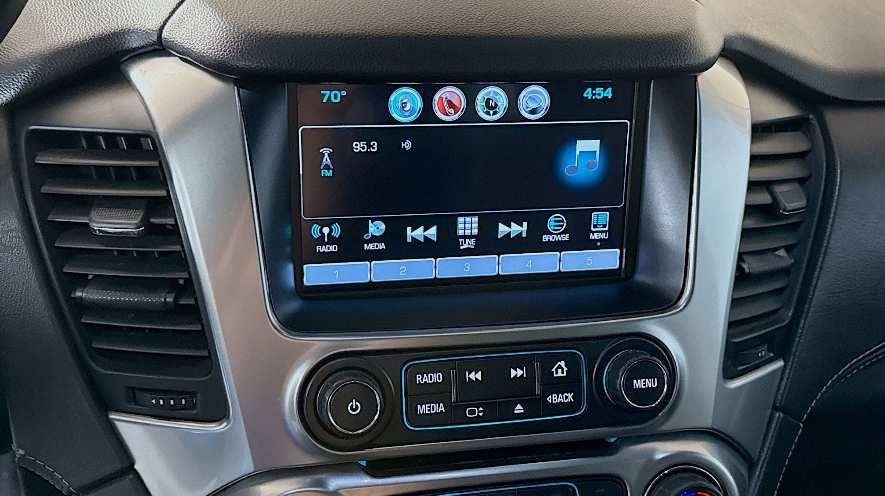 - AUDIO SYSTEM 8 DIAGONAL COLOR TOUCH-SCREEN WITH CHEVROLET INFOTAINMENT AM/FM stereo with seek-and-scan and digital clock includes Bluetooth streaming audio for music and select phones; voice-activated technology for radio and phone; and Shop with the ability to browse select and install apps to your vehicle. You can customize your content with audio weather and more; featuring Apple CarPlay and Android Auto capability for compatible phones; 5 USB ports and 1 auxiliary jack (STD)