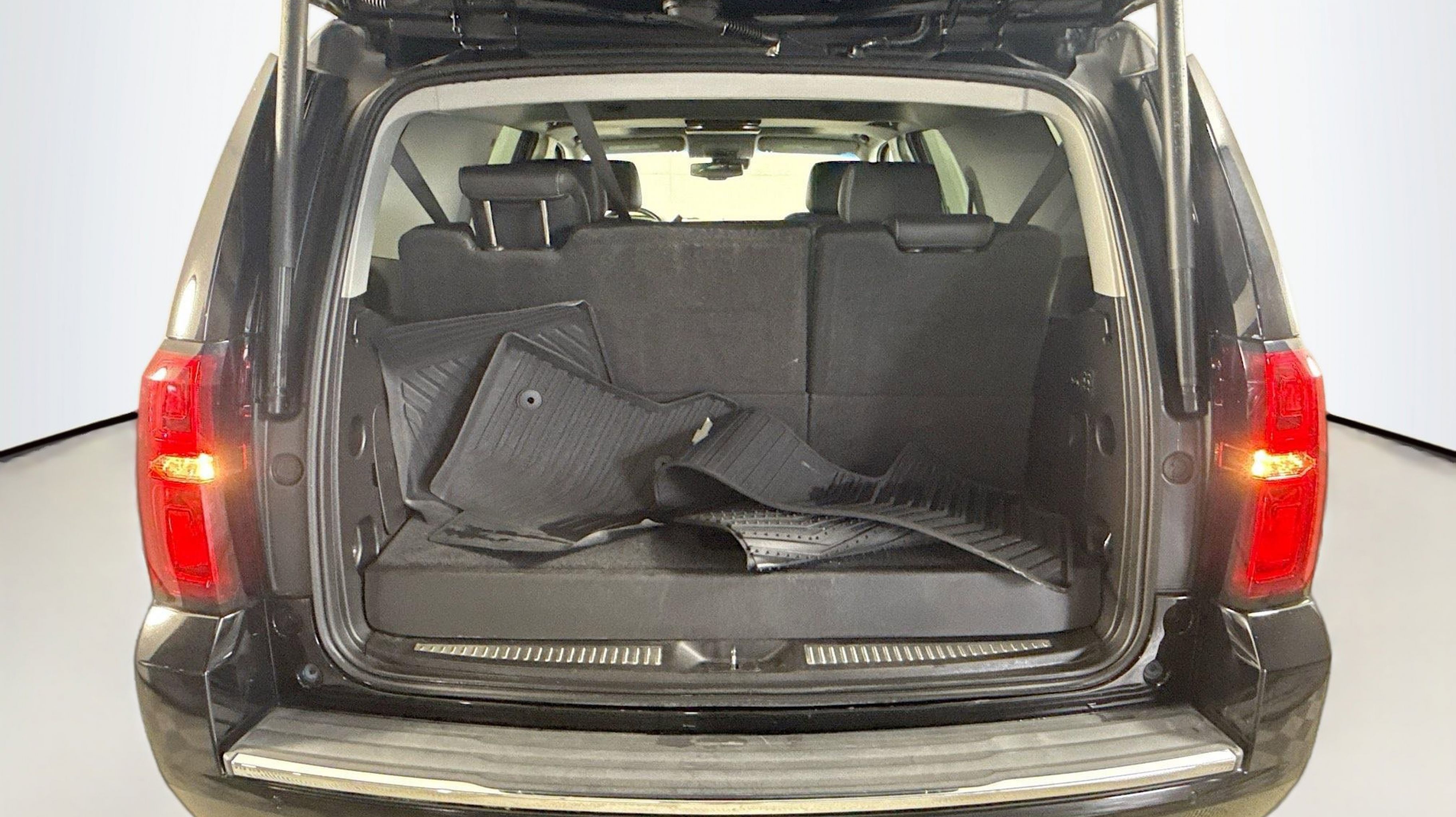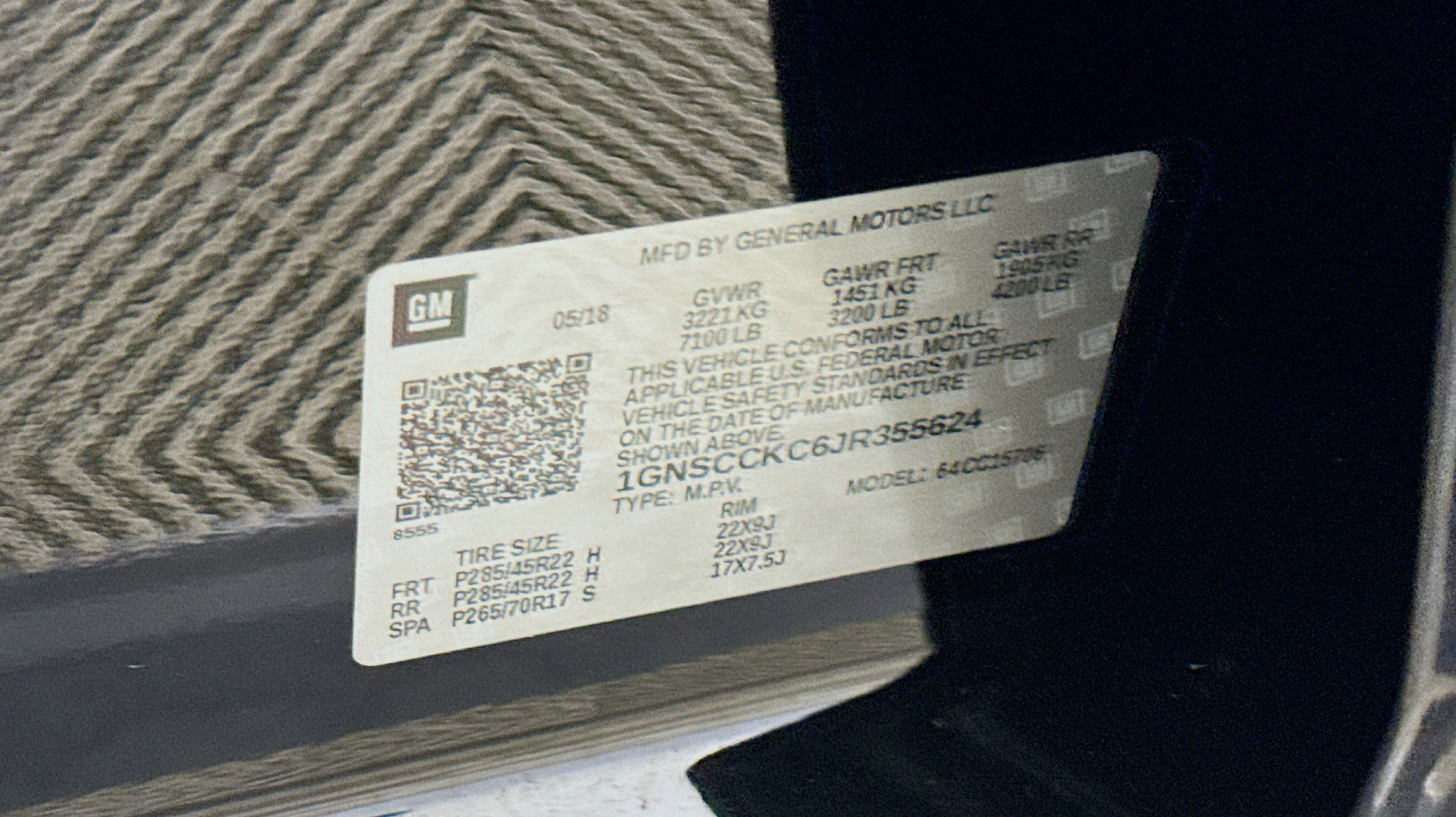 Black 2018 Chevrolet Tahoe Premier RWD 6-Speed Automatic Electronic with Overdrive EcoTec3 5.3L V8 Jet Black w/Leather-Appointed Seat Trim, 1st & 2nd Row Color-Keyed Carpeted Floor Mats, 3rd Row 60/40 Power Fold Split-Bench, 4-Wheel Antilock Disc Brakes w/Brake Assist, 5 12-Volt Auxiliary Power Outlets, Auto-Dimming Inside Rear-View Mirror, Black Assist Steps w/Chrome Accent Strip, Bose Centerpoint Premium 10-Speaker Surround Sound, Cargo Net, Color-Keyed Carpeting Floor Covering, Driver Inboard & Front Passenger Airbags, Electronic Cruise Control w/Set & Resume Speed, Enhanced Driver Alert Package (Y86), Floor Console, Fog Lamps, Forward Collision Alert, Front & Rear Park Assist, Front Passenger 6-Way Power Seat Adjuster, Hands Free Power Liftgate, Heated & Ventilated Driver & Front Passenger Seats, Heated 2nd Row Seats, Heated Leather Wrapped Steering Wheel, IntelliBeam Headlamps, Lane Change Alert w/Side Blind Zone Alert, Lane Keep Assist w/Lane Departure Warning, Low Speed Forward Automatic Braking, Magnetic Ride Control Suspension Package, Memory Settings, OnStar Basic Plan For 5 Years, Passive Entry System, Power Release 2nd Row Bucket Seats, Power Sunroof, Power Tilt & Telescopic Steering Column, Power-Adjustable Accelerator & Brake Pedals, Power-Folding Heated Outside Mirrors, Preferred Equipment Group 1LZ, Push Button Keyless Start, Rear Cross-Traffic Alert, Rear Seat Blu-Ray/DVD Entertainment System, Remote Keyless Entry, Remote Vehicle Start, Roof-Mounted Luggage Rack Side Rails, SiriusXM NavTraffic, SiriusXM Satellite Radio, Sun, Entertainment & Destinations Package, Universal Home Remote, Wireless Charging, 10 Speakers, 3.08 Rear Axle Ratio, 3rd row seats: split-bench, 4-Wheel Disc Brakes, ABS brakes, Adaptive Cruise Control, Adaptive suspension, Adjustable pedals, Air Conditioning, All-Weather Floor Mats, Alloy wheels, AM/FM radio: SiriusXM, Apple CarPlay/Android Auto, Auto High-beam Headlights, Auto-dimming door mirrors, Auto-dimming Rear-View mirror, Automatic temperature control, Bluetooth® For Phone, Bodyside moldings, Brake assist, Bumpers: body-color, CD player, Compass, Delay-off headlights, Driver door bin, Driver vanity mirror, Dual front impact airbags, Dual front side impact airbags, Electronic Stability Control, Emergency communication system: OnStar Guidance, Enhanced Driver Information Center, Exterior Parking Camera Rear, Forward Automatic Braking, Front anti-roll bar, Front Bucket Seats, Front Center Armrest, Front dual zone A/C, Front fog lights, Front Heated Reclining Bucket Seats, Front reading lights, Front wheel independent suspension, Fully automatic headlights, Garage door transmitter, HD Radio, Head-Up Display, Heated door mirrors, Heated front seats, Heated rear seats, Heated steering wheel, High-Intensity Discharge Headlights, Illuminated entry, Low tire pressure warning, Memory seat, Navigation System, Occupant sensing airbag, Outside temperature display, Overhead airbag, Overhead console, Panic alarm, Passenger door bin, Passenger vanity mirror, Pedal memory, Perforated Leather-Appointed Seat Trim, Power door mirrors, Power driver seat, Power Liftgate, Power passenger seat, Power steering, Power windows, Premium audio system: Chevrolet MyLink, Radio: Chevrolet MyLink w/Nav/AM/FM Stereo, Rain sensing wipers, Rear air conditioning, Rear anti-roll bar, Rear reading lights, Rear window defroster, Rear window wiper, Remote keyless entry, Roof rack: rails only, Security system, Single-