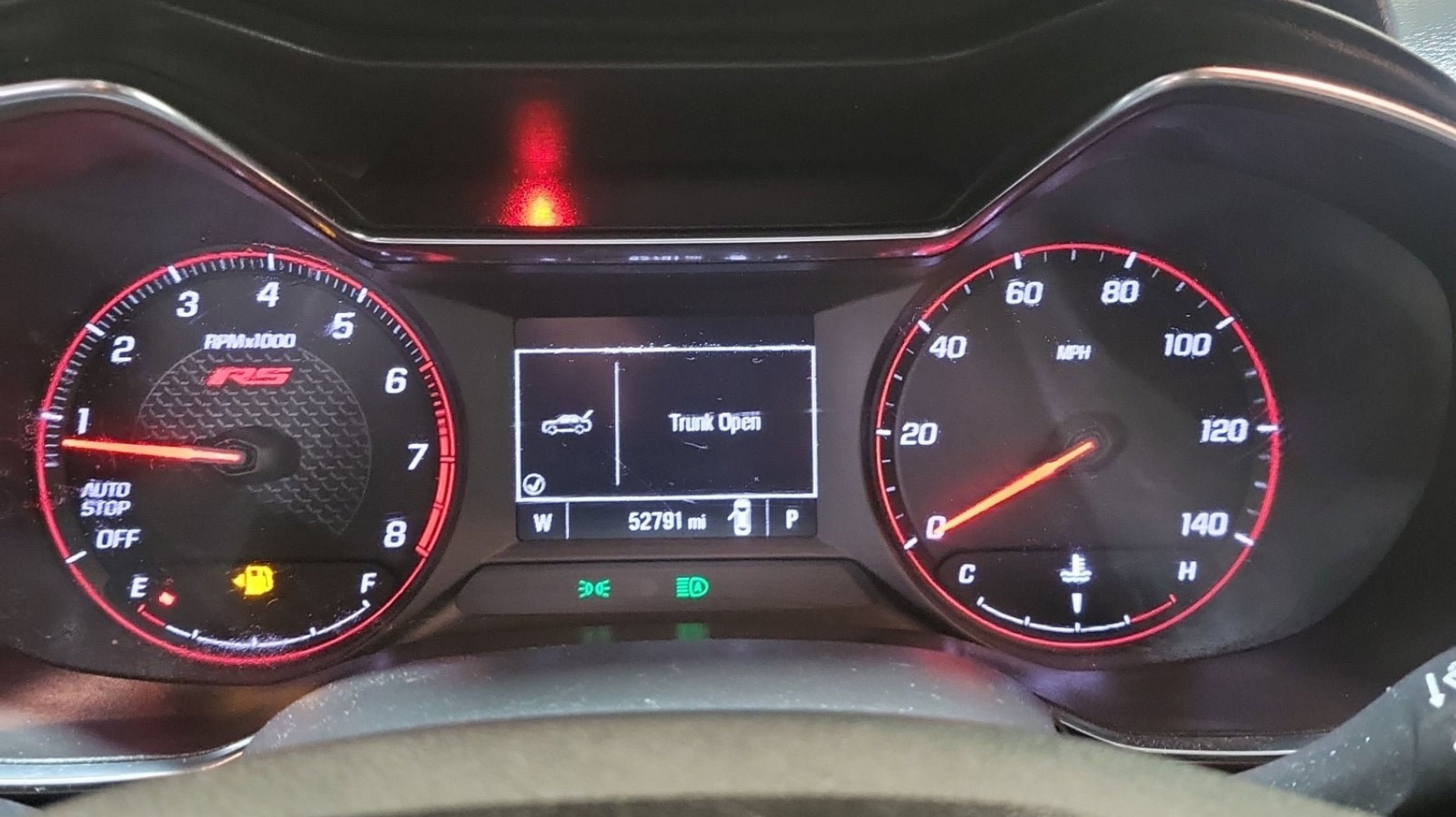 Heated Steering Wheel, Preferred Equipment Group 1RS, 2-Way Adjustable Front Head Restraints, 2-Way Power Driver Lumbar Seat Adjuster, 4-Way Manual Front Passenger Seat Adjuster, 4-Wheel Disc Brakes, 5.45 Axle Ratio, 6 Speakers, 6-Speaker Audio System Feature, 7 Diagonal Color Touchscreen, 8-Way Power Driver Seat Adjuster, ABS brakes, Air Conditioning, Alloy wheels, AM/FM radio: SiriusXM, Auto High-beam Headlights, Brake assist, Bumpers: body-color, Cloth w/Leatherette Seat Trim, Compass, Delay-off headlights, Deleted 3 Years of Remote Access, Driver door bin, Driver vanity mirror, Dual front impact airbags, Dual front side impact airbags, Electronic Stability Control, Emergency communication system: OnStar and Chevrolet connected services capable, Exterior Parking Camera Rear, Flat-Folding Front Passenger Seatback, Front anti-roll bar, Front Bucket Seats, Front Center Armrest, Front fog lights, Front reading lights, Front wheel independent suspension, Fully automatic headlights, Heated door mirrors, Heated Driver & Front Passenger Seats, Heated front seats, Heated steering wheel, Illuminated entry, Knee airbag, Leather Shift Knob, Leather steering wheel, Low tire pressure warning, Mosaic Black Metallic Two-Tone Roof, Occupant sensing airbag, Overhead airbag, Overhead console, Panic alarm, Passenger door bin, Passenger vanity mirror, Power door mirrors, Power driver seat, Power steering, Power windows, Radio data system, Radio: Chevrolet Infotainment 3 System, Rear seat center armrest, Rear side impact airbag, Rear window defroster, Rear window wiper, Remote keyless entry, Ride & Handling Suspension, Security system, SiriusXM Radio, Speed control, Split folding rear seat, Spoiler, Steering wheel mounted audio controls, Tachometer, Telescoping steering wheel, Tilt steering wheel, Traction control, Trip computer, Variably intermittent wipers, Wheels: 18 High Gloss Black Machined Aluminum, Wireless Apple CarPlay/Android Auto, Heated Steering Wheel, Preferred Equipment Group 1RS.