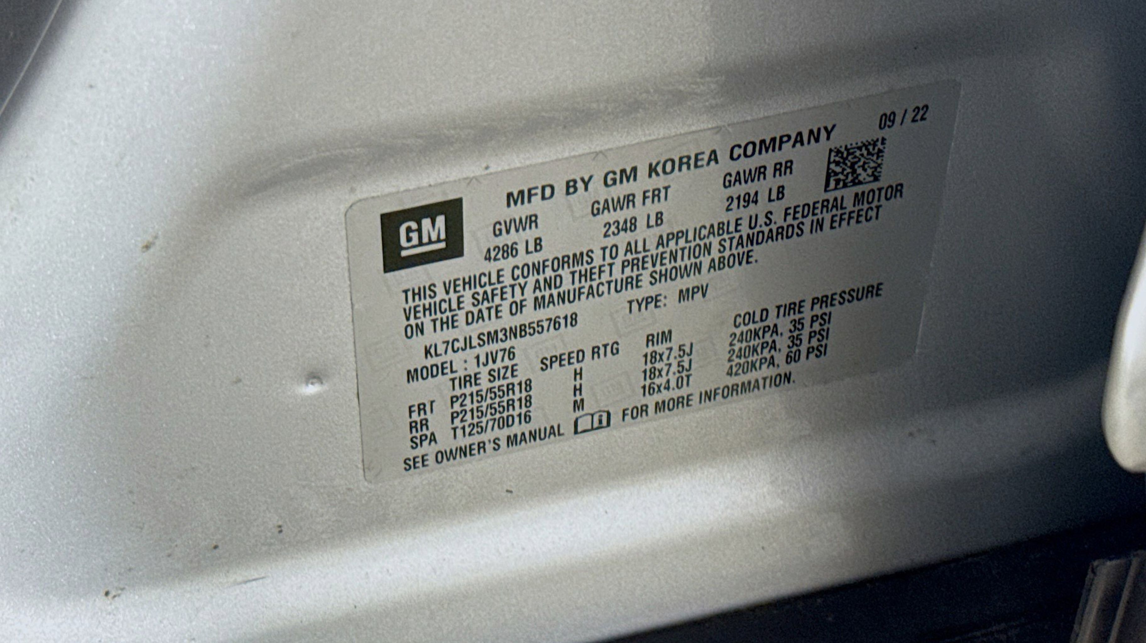 Silver Ice Metallic 2022 Chevrolet Trax LT FWD 6-Speed Automatic Turbo 1.4L VVT DOHC 4-Cylinder DI SIDI 2 Spare Keys Key System, 3-Spoke Leather-Wrapped Steering Wheel, 6-Way Power Driver Seat Adjuster, Black Grille w/Black Surround, Black Trax Badge w/Red Outline, Keyless Open, Keyless Start, LT Convenience Package, Preferred Equipment Group 1LT, Redline Edition, Wheels: 18 Black Finish Aluminum, 16 Aluminum Wheels, 2 USB Ports w/Auxiliary Input Jack, 2-Way Manual Front Passenger Seat Adjuster, 3.53 Final Drive Axle Ratio, 4-Way Manual Driver Seat Adjuster, 6 Speakers, 6-Speaker Audio System Feature, ABS brakes, Air Conditioning, Alloy wheels, AM/FM radio: SiriusXM, Apple CarPlay/Android Auto, Brake assist, Bumpers: body-color, Compass, Delay-off headlights, Deluxe Cloth/Leatherette Seat Trim, Driver door bin, Driver vanity mirror, Driver's Seat Mounted Armrest, Dual front impact airbags, Dual front side impact airbags, Electronic Stability Control, Emergency communication system: OnStar and Chevrolet connected services capable, Exterior Parking Camera Rear, Front anti-roll bar, Front Bucket Seats, Front Bucket Seats w/Driver Power Lumbar, Front License Plate Bracket, Front reading lights, Front wheel independent suspension, Fully automatic headlights, Heated door mirrors, Illuminated entry, Knee airbag, Low tire pressure warning, Occupant sensing airbag, Outside temperature display, Overhead airbag, Panic alarm, Passenger door bin, Passenger vanity mirror, Power door mirrors, Power steering, Power windows, Premium audio system: Chevrolet Infotainment 3, Radio data system, Radio: Chevrolet Infotainment 3 System, Rear seat center armrest, Rear side impact airbag, Rear window defroster, Rear window wiper, Remote keyless entry, Roof rack: rails only, Security system, SiriusXM Radio, Speed control, Split folding rear seat, Spoiler, Steering wheel mounted audio controls, Tachometer, Telescoping steering wheel, Tilt steering wheel, Traction control, Trip computer, Variably intermittent wipers, 2 Spare Keys Key System, 3-Spoke Leather-Wrapped Steering Wheel, 6-Way Power Driver Seat Adjuster, Black Grille w/Black Surround, Black Trax Badge w/Red Outline, Keyless Open, Keyless Start, LT Convenience Package, Preferred Equipment Group 1LT, Redline Edition, Wheels: 18 Black Finish Aluminum.