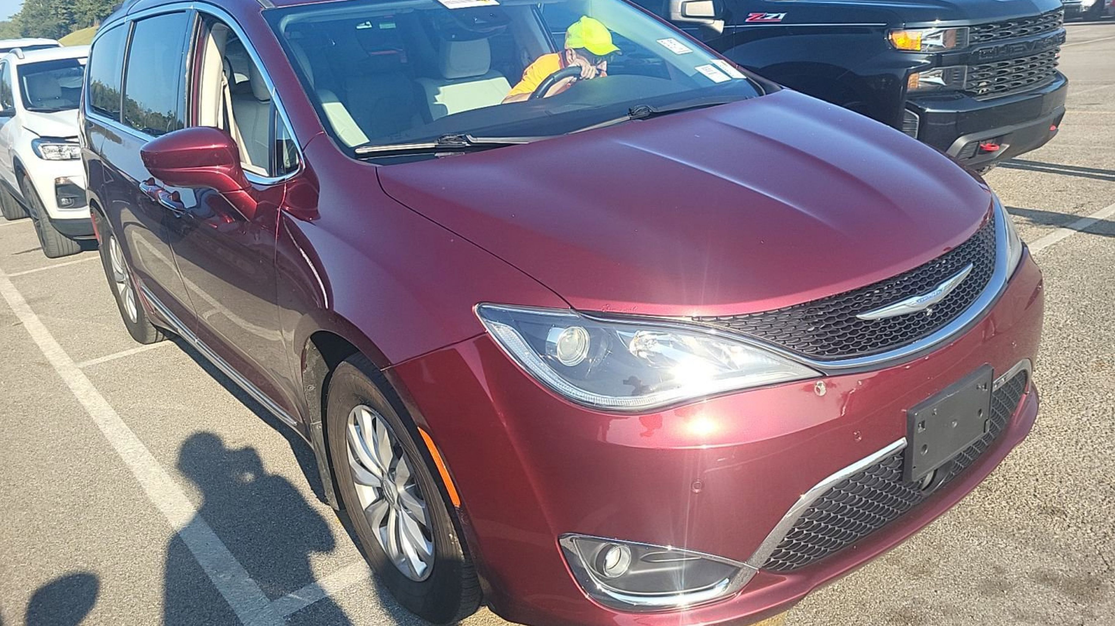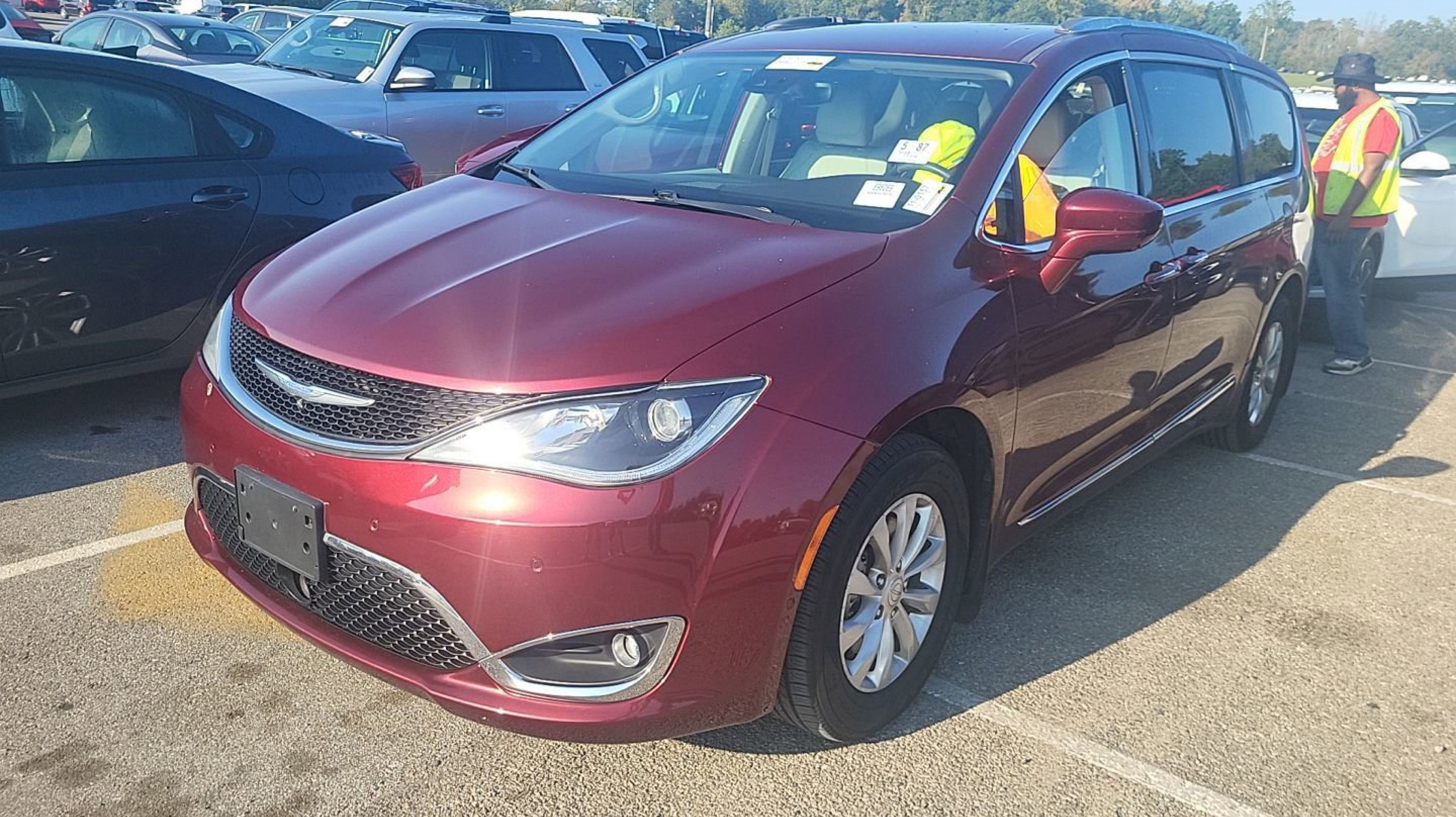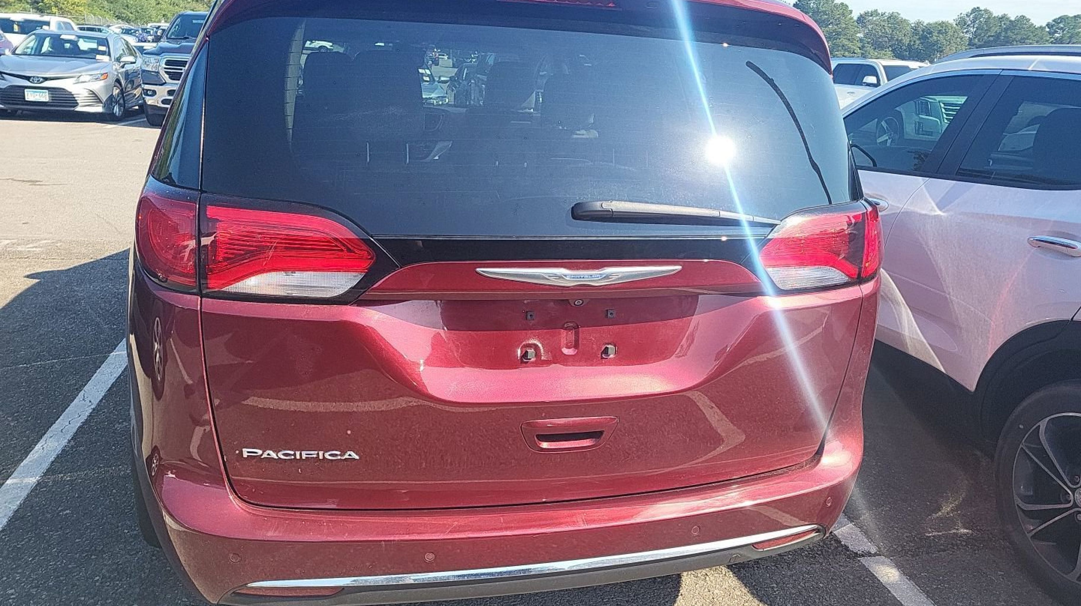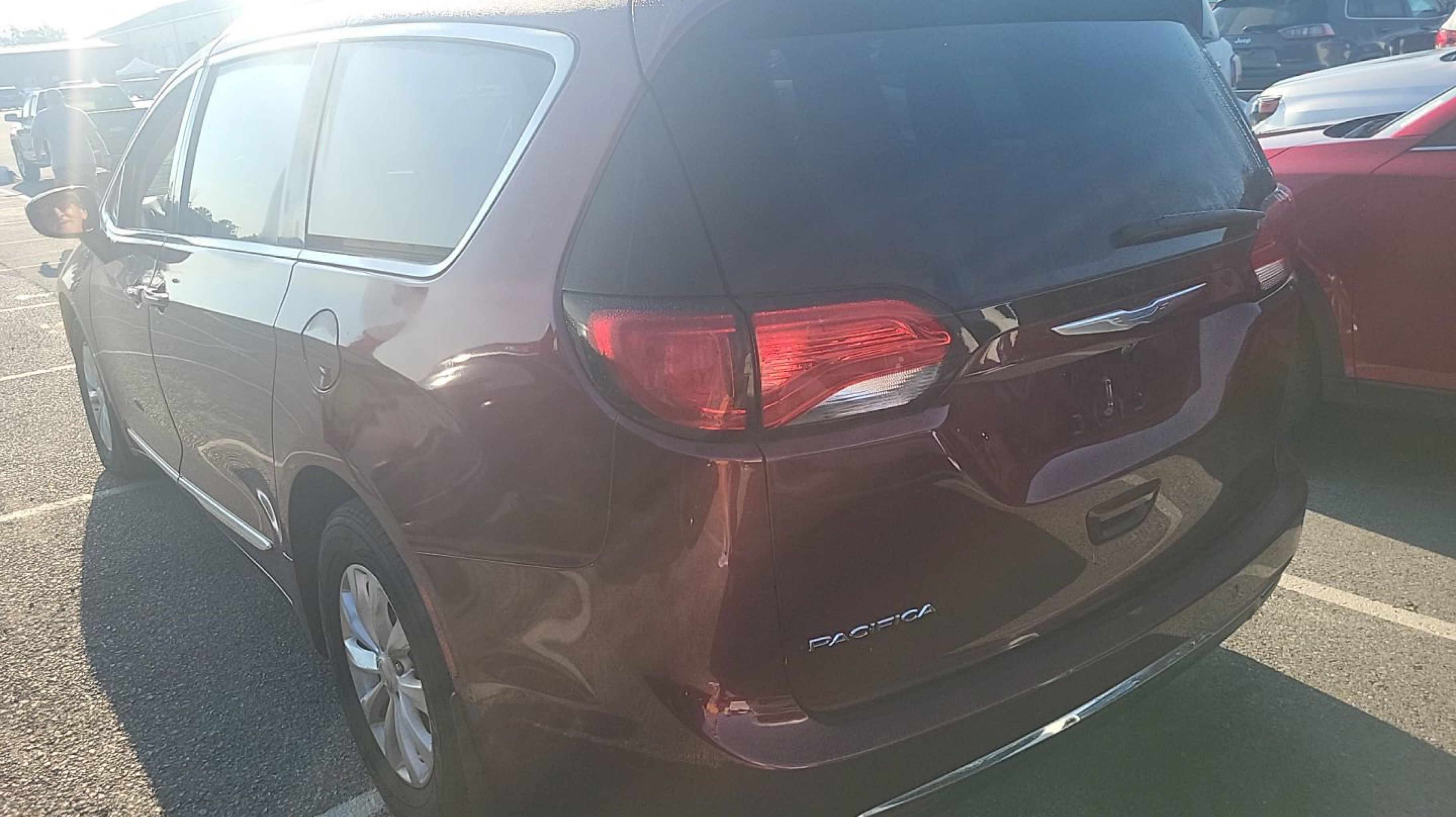 Velvet Red Pearlcoat 2018 Chrysler Pacifica Touring L Plus FWD 9-Speed Automatic 3.6L V6 24V VVT 360 Surround View Camera System, Adaptive Cruise Control w/Stop & Go, Advanced Brake Assist, Advanced SafetyTec Group, All Weather Cargo Floor Mats, All-Weather Floor Mats - Stow 'N Go, Automatic High Beam Headlamp Control, Blind Spot & Cross Path Detection, Bright Door Sills, Cargo Area Liner, Front Splash Guards, Full Speed Forward Collision Warning Plus, Hands Free Power Liftgate, Hands Free Sliding Door & Liftgate Group, Hands Free Sliding Doors, Lane Departure Warning Plus, MOPAR Interior Protection Package A, MOPAR Splash Guards - Vehicle Set, Parallel & Perp Park Assist w/Stop, ParkSense Front/Rear Park Assist w/Stop, Quick Order Package 27J, Rain Sensitive Windshield Wipers, Rear Cargo Bin Stow 'N' Go Storage, Rear Splash Guards, 1-Year SiriusXM Guardian Trial, 13 Speakers, 17 x 7.0 Aluminum Wheels, 3.25 Axle Ratio, 3rd row seats: split-bench, 4-Wheel Disc Brakes, 8.4 Touchscreen Display, A/V remote, ABS brakes, Air Conditioning, Alloy wheels, AM/FM radio: SiriusXM, Apple CarPlay, Apple CarPlay/Android Auto, Auto High-beam Headlights, Auto-dimming Rear-View mirror, Automatic temperature control, Bodyside moldings, Brake assist, Bumpers: body-color, CD player, Compass, Delay-off headlights, Disassociated Touchscreen Display, Driver door bin, Driver vanity mirror, Driver's Seat Mounted Armrest, Dual front impact airbags, Dual front side impact airbags, DVD-Audio, Electronic Stability Control, Emergency communication system: Uconnect Access, For Details, Visit DriveUconnect.com, Four wheel independent suspension, Front anti-roll bar, Front Bucket Seats, Front dual zone A/C, Front fog lights, Front reading lights, Fully automatic headlights, Garage door transmitter, Google Android Auto, GPS Antenna Input, GPS Navigation, HD Radio, Headphones, Heated door mirrors, Heated front seats, Heated rear seats, Heated steering wheel, Illuminated entry, Integrated Voice Command w/Bluetooth, KeySense, Knee airbag, Leather steering wheel, Low tire pressure warning, Navigation System, Occupant sensing airbag, Outside temperature display, Overhead airbag, Overhead console, Panic alarm, ParkView Rear Back-Up Camera, Passenger door bin, Passenger seat mounted armrest, Passenger vanity mirror, Perforated Leather Trim Bucket Seats, Power door mirrors, Power driver seat, Power Liftgate, Power passenger seat, Power steering, Power windows, Radio data system, Radio: Uconnect 4C Nav w/8.4 Display, Rain sensing wipers, Rear air conditioning, Rear reading lights, Rear window defroster, Rear window wiper, Reclining 3rd row seat, Remote keyless entry, Roof rack, Security system, SiriusXM Satellite Radio, SiriusXM Traffic Plus, SiriusXM Travel Link, Speed control, Split folding rear seat, Spoiler, Steering wheel mounted audio controls, Tachometer, Telescoping steering wheel, Tilt steering wheel, Toffee Seats, Touring Suspension, Traction control, Trip computer, USB Host Flip, Variably intermittent wipers, Voltmeter, 360 Surround View Camera System, Adaptive Cruise Control w/Stop & Go, Advanced Brake Assist, Advanced SafetyTec Group, All Weather Cargo Floor Mats, All-Weather Floor Mats - Stow 'N Go, Automatic High Beam Headlamp Control, Blind Spot & Cross Path Detection, Bright Door Sills, Cargo Area Liner, Front Splash Guards, Full Speed Forward Collision Warning Plus, Hands Free Power Liftgate, Hands Free Sliding Door & Liftgate Group, Hands Fre