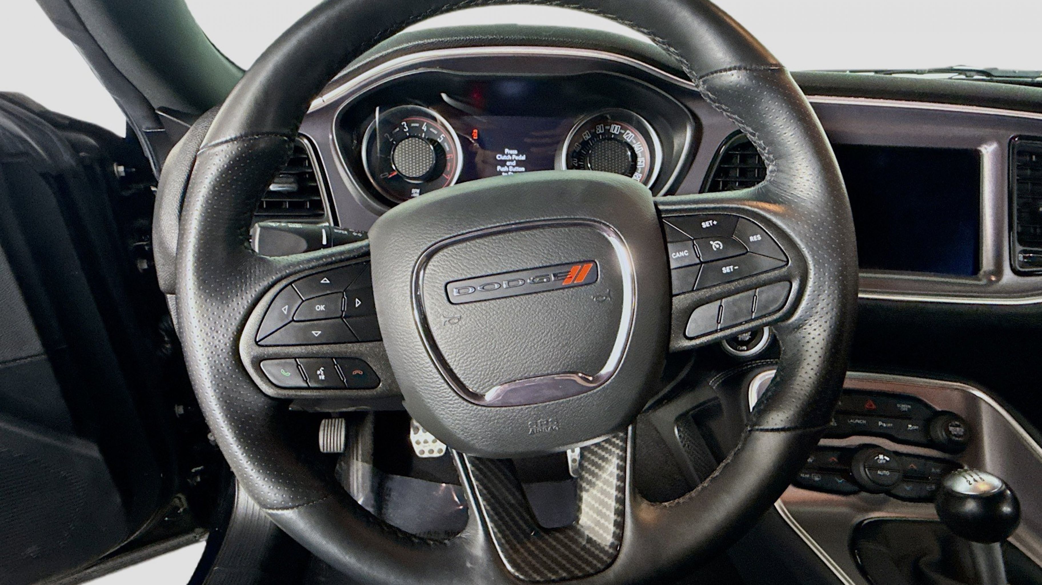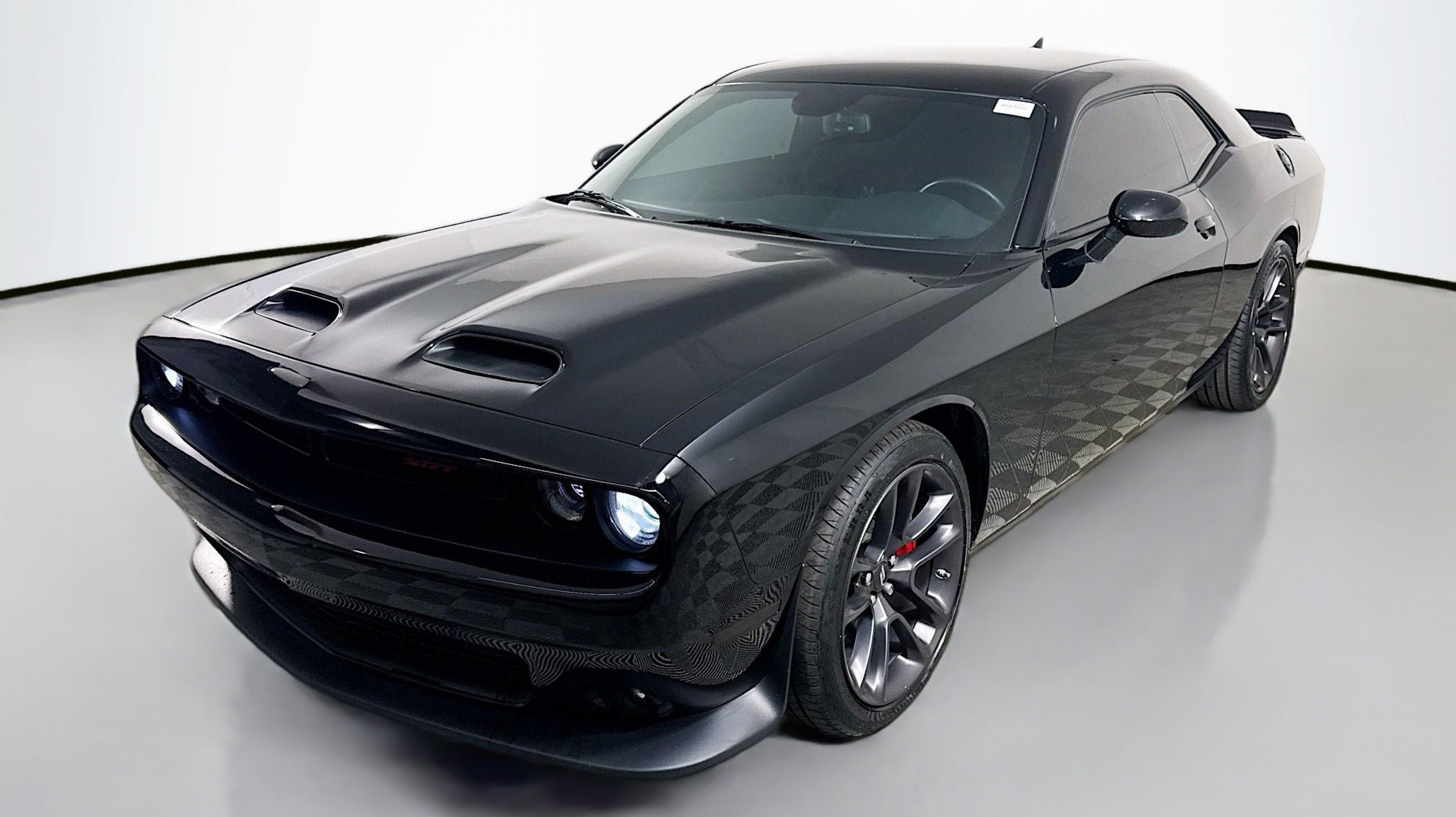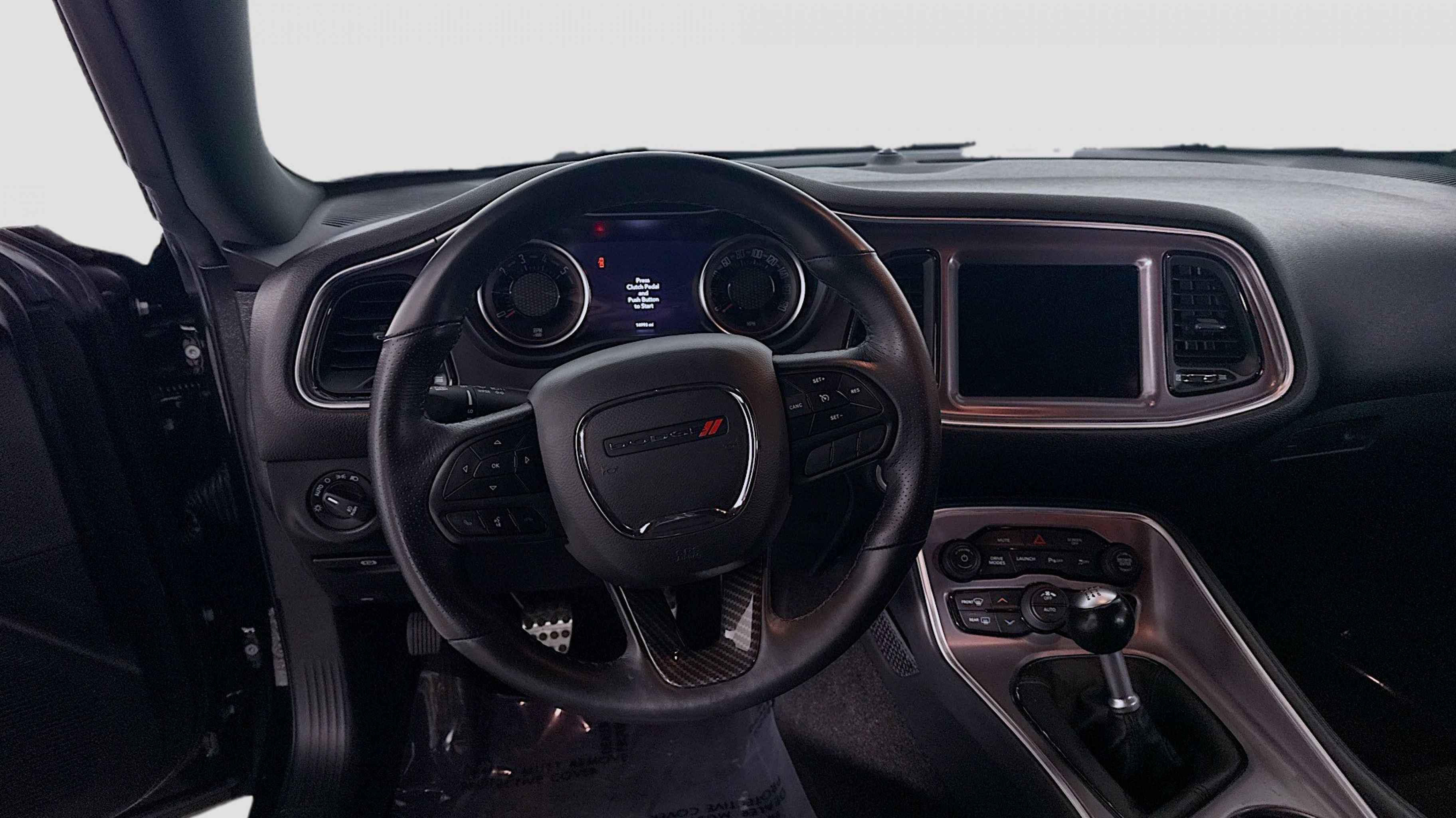 Pitch Black Clearcoat 2020 Dodge Challenger R/T Scat Pack RWD Tremec 6-Speed Manual SRT HEMI 6.4L V8 Quick Order Package 23G R/T Scat Pack, 1-Yr SiriusXM Guardian Trial, 230MM Rear Axle, 4-Wheel Disc Brakes, 4G LTE Wi-Fi Hot Spot, 6 Speakers, 8.4 Touchscreen Display, ABS brakes, Air Conditioning, Alloy wheels, AM/FM radio: SiriusXM, Anti-whiplash front head restraints, Apple CarPlay, Apple CarPlay/Android Auto, Auto-dimming Rear-View mirror, Automatic temperature control, Black Fuel Filler Door, Black Grille w/Bezel, Brake assist, Bumpers: body-color, Compass, Delay-off headlights, Driver door bin, Driver vanity mirror, Dual front impact airbags, Dual front side impact airbags, Electronic Stability Control, Emergency communication system: SiriusXM Guardian, For Details, Visit DriveUconnect.com, Four wheel independent suspension, Front anti-roll bar, Front Bucket Seats, Front Center Armrest, Front dual zone A/C, Front fog lights, Front License Plate Bracket, Front reading lights, Fully automatic headlights, Garage door transmitter, Google Android Auto, GPS Antenna Input, HD Radio, Heated door mirrors, Heated front seats, Heated steering wheel, Illuminated entry, Integrated Center Stack Radio, Integrated Voice Command w/Bluetooth, Leather Shift Knob, Low tire pressure warning, Media Hub (2 USB, AUX), Outside temperature display, Overhead airbag, Overhead console, Panic alarm, ParkView Rear Back-Up Camera, Passenger door bin, Passenger vanity mirror, Power door mirrors, Power driver seat, Power steering, Power windows, Radio data system, Radio: Uconnect 4C w/8.4 Display, Rear anti-roll bar, Rear reading lights, Rear seat center armrest, Rear window defroster, Remote keyless entry, Rhombi 2-Pc Wheel Center Cap, Scat Pack Logo Houndstooth Seat, Security system, SiriusXM Satellite Radio, Speed control, Speed-sensing steering, Split folding rear seat, Spoiler, Sport steering wheel, Steering wheel mounted audio controls, Tachometer, Telescoping steering wheel, Tilt steering wheel, Traction control, Trip computer, USB Host Flip, Variably intermittent wipers, Wheels: 20 x 9 Lo Gloss Granite Crystal, Quick Order Package 23G R/T Scat Pack.