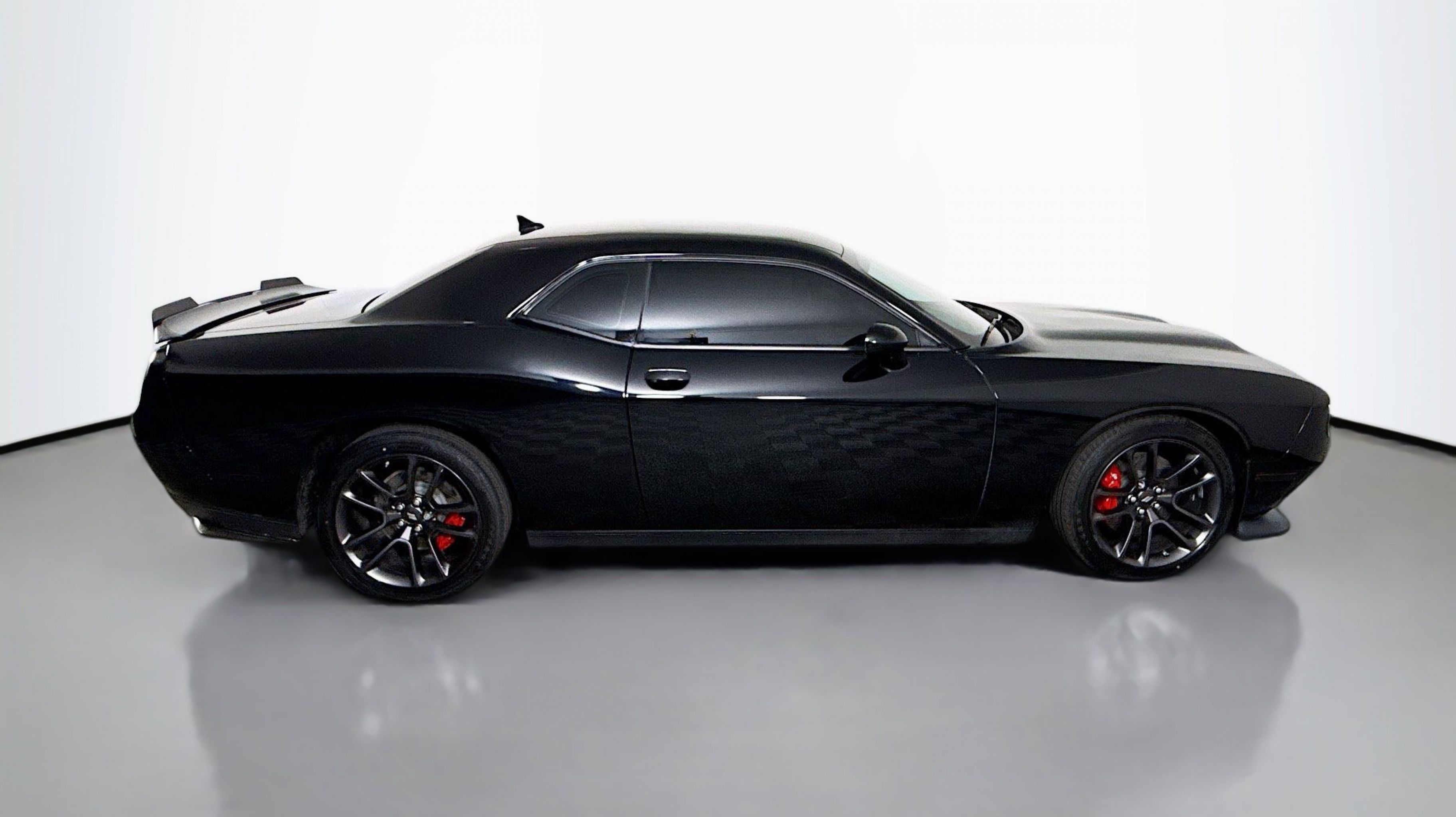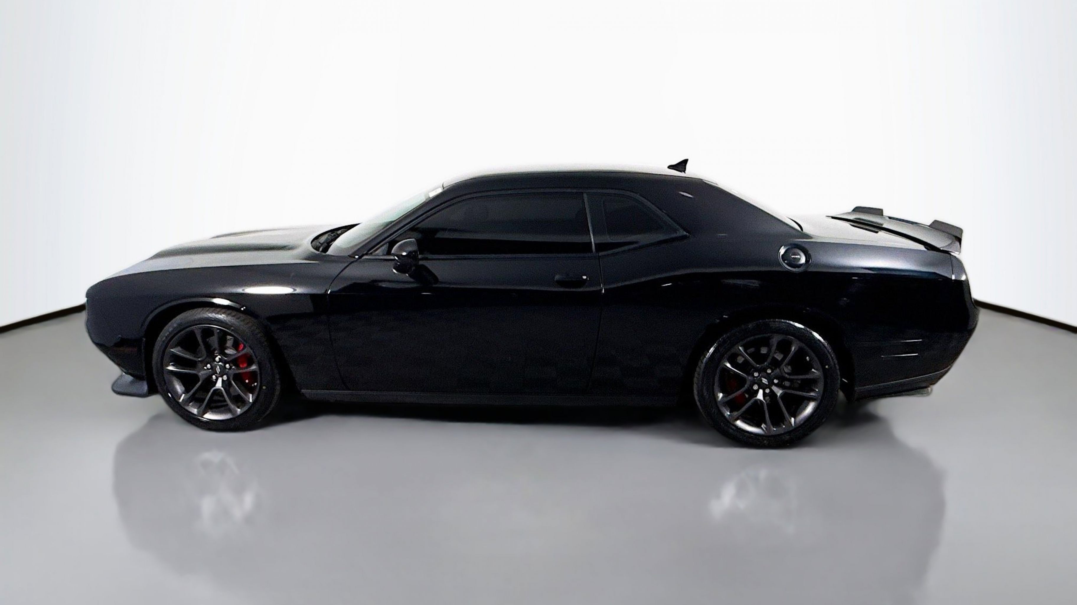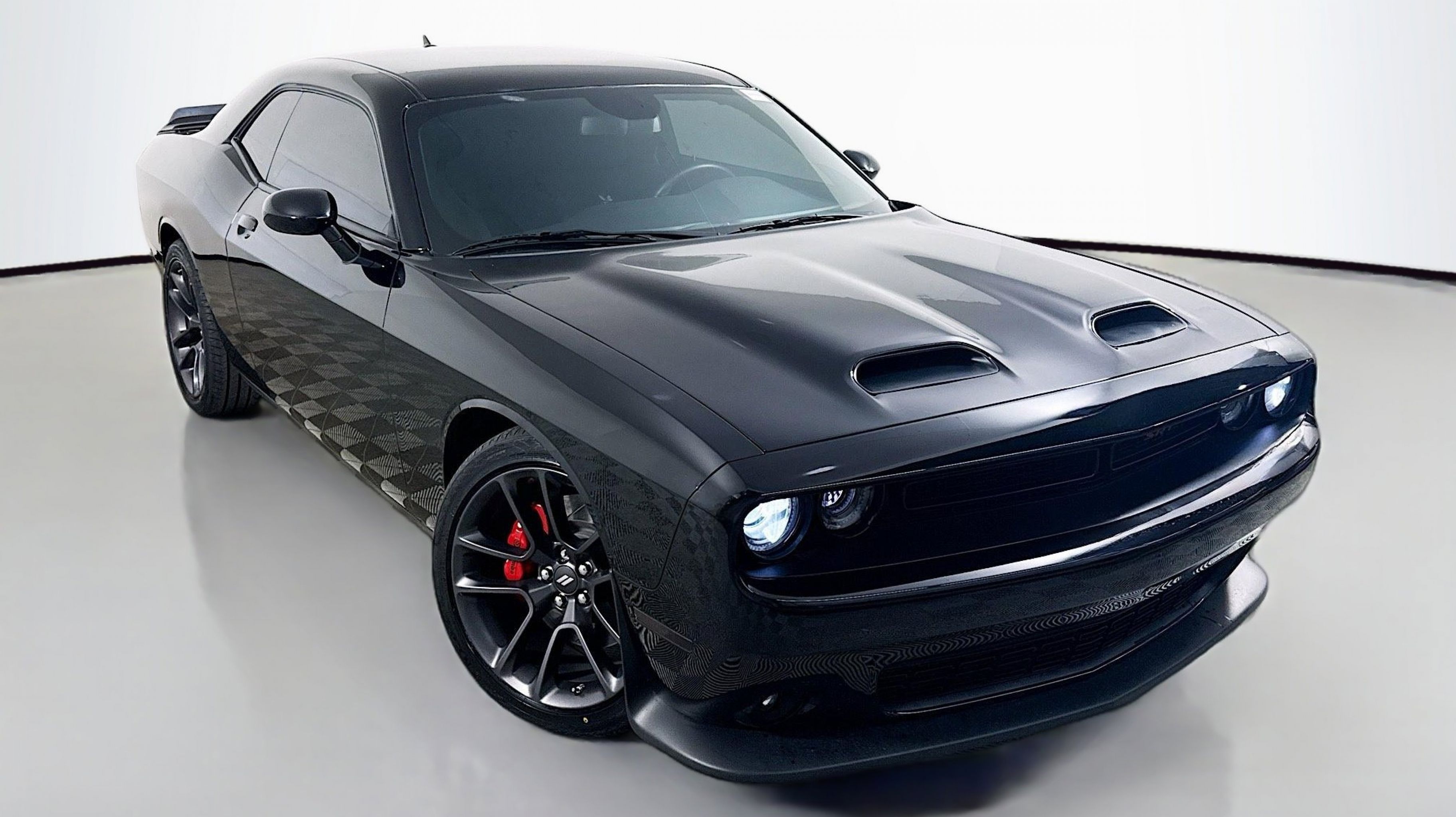 Pitch Black Clearcoat 2020 Dodge Challenger R/T Scat Pack RWD Tremec 6-Speed Manual SRT HEMI 6.4L V8 Quick Order Package 23G R/T Scat Pack, 1-Yr SiriusXM Guardian Trial, 230MM Rear Axle, 4-Wheel Disc Brakes, 4G LTE Wi-Fi Hot Spot, 6 Speakers, 8.4 Touchscreen Display, ABS brakes, Air Conditioning, Alloy wheels, AM/FM radio: SiriusXM, Anti-whiplash front head restraints, Apple CarPlay, Apple CarPlay/Android Auto, Auto-dimming Rear-View mirror, Automatic temperature control, Black Fuel Filler Door, Black Grille w/Bezel, Brake assist, Bumpers: body-color, Compass, Delay-off headlights, Driver door bin, Driver vanity mirror, Dual front impact airbags, Dual front side impact airbags, Electronic Stability Control, Emergency communication system: SiriusXM Guardian, For Details, Visit DriveUconnect.com, Four wheel independent suspension, Front anti-roll bar, Front Bucket Seats, Front Center Armrest, Front dual zone A/C, Front fog lights, Front License Plate Bracket, Front reading lights, Fully automatic headlights, Garage door transmitter, Google Android Auto, GPS Antenna Input, HD Radio, Heated door mirrors, Heated front seats, Heated steering wheel, Illuminated entry, Integrated Center Stack Radio, Integrated Voice Command w/Bluetooth, Leather Shift Knob, Low tire pressure warning, Media Hub (2 USB, AUX), Outside temperature display, Overhead airbag, Overhead console, Panic alarm, ParkView Rear Back-Up Camera, Passenger door bin, Passenger vanity mirror, Power door mirrors, Power driver seat, Power steering, Power windows, Radio data system, Radio: Uconnect 4C w/8.4 Display, Rear anti-roll bar, Rear reading lights, Rear seat center armrest, Rear window defroster, Remote keyless entry, Rhombi 2-Pc Wheel Center Cap, Scat Pack Logo Houndstooth Seat, Security system, SiriusXM Satellite Radio, Speed control, Speed-sensing steering, Split folding rear seat, Spoiler, Sport steering wheel, Steering wheel mounted audio controls, Tachometer, Telescoping steering wheel, Tilt steering wheel, Traction control, Trip computer, USB Host Flip, Variably intermittent wipers, Wheels: 20 x 9 Lo Gloss Granite Crystal, Quick Order Package 23G R/T Scat Pack.