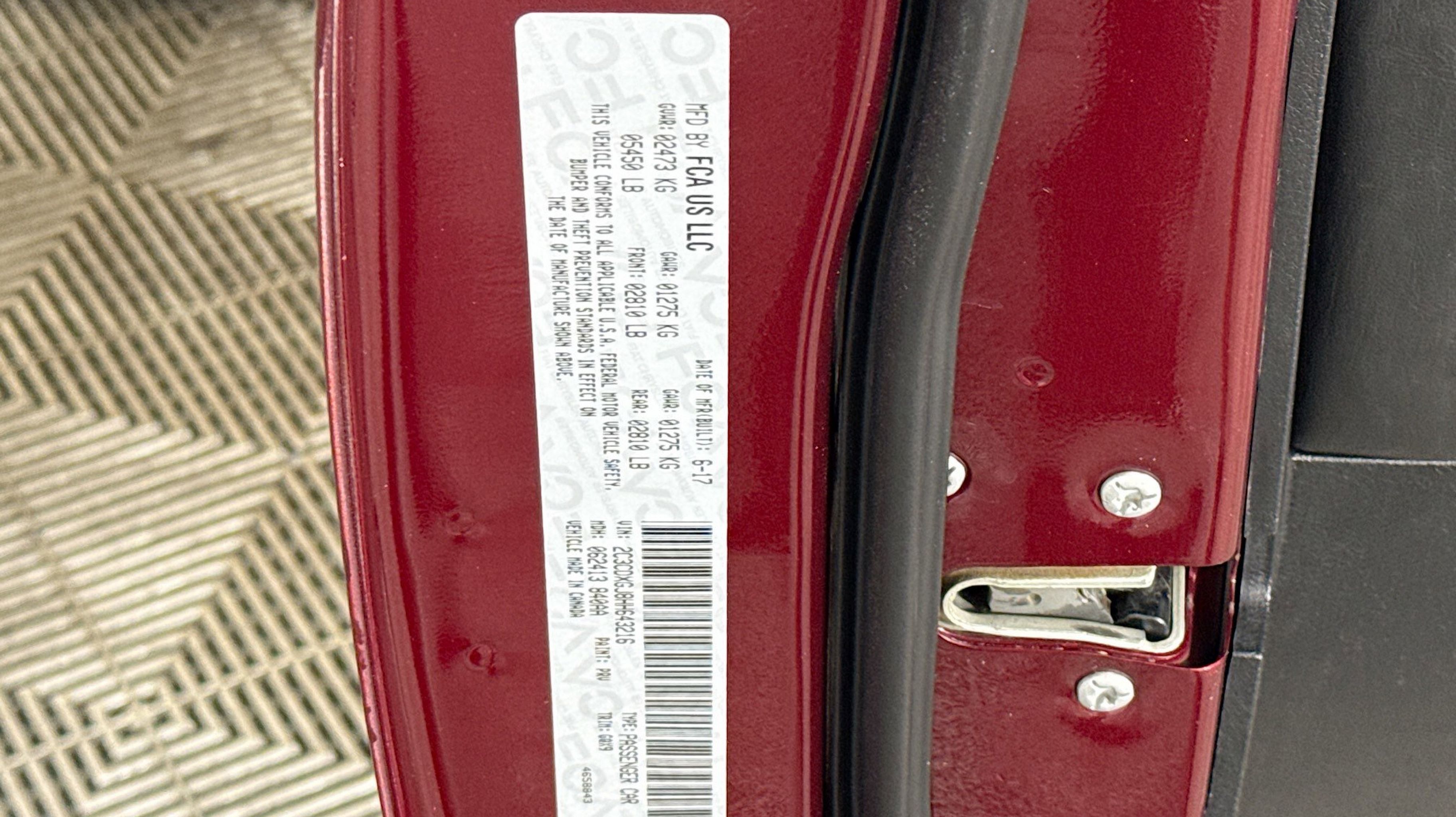 Octane Red Pearlcoat 2017 Dodge Charger R/T Scat Pack RWD 8-Speed Automatic SRT HEMI 6.4L V8 MDS Black w/Cloth Performance Seats or Leather w/Alcantara Perf Seats, Quick Order Package 21W R/T Scat Pack, 1-Yr SiriusXM Guardian Trial, 4-Wheel Disc Brakes, 5-Year SiriusXM Travel Link Service, 6 Speakers, 8.4 Touchscreen Display, ABS brakes, Air Conditioning, Alloy wheels, AM/FM radio: SiriusXM, Anti-whiplash front head restraints, Apple CarPlay/Android Auto, Auto-dimming Rear-View mirror, Automatic temperature control, Brake assist, Bumpers: body-color, Cloth Performance Seats, Compass, Delay-off headlights, Driver door bin, Driver vanity mirror, Dual front impact airbags, Dual front side impact airbags, Electronic Stability Control, Emergency communication system: Uconnect Access, Four wheel independent suspension, Front anti-roll bar, Front Bucket Seats, Front Center Armrest, Front dual zone A/C, Front fog lights, Front reading lights, Fully automatic headlights, Garage door transmitter: HomeLink, GPS Antenna Input, GPS Navigation, Illuminated entry, Integrated Center Stack Radio, Integrated Voice Command w/Bluetooth, Leather Shift Knob, Low tire pressure warning, Occupant sensing airbag, Outside temperature display, Overhead airbag, Overhead console, Panic alarm, ParkView Rear Back-Up Camera, Passenger door bin, Passenger vanity mirror, Power door mirrors, Power driver seat, Power Driver/Passenger 4-Way Lumbar Adjust, Power passenger seat, Power steering, Power windows, Radio data system, Radio: Uconnect 4C Nav w/8.4 Display, Radio: Uconnect 4C w/8.4 Display, Rear anti-roll bar, Rear reading lights, Rear seat center armrest, Rear window defroster, Remote keyless entry, Rhombi 2-Pc Wheel Center Cap, Security system, SiriusXM Satellite Radio, SiriusXM Traffic Plus, SiriusXM Travel Link, Speed control, Speed-Sensitive Wipers, Split folding rear seat, Spoiler, Steering wheel mounted audio controls, Tachometer, Telescoping steering wheel, Tilt steering wheel, Traction control, Trip computer, USB Host Flip, Variably intermittent wipers, Wheels: 20 x 9.0 Alum Machined Face/Satin Black, Wheels: 20 x 9.0 Forged/Painted Aluminum, Black w/Cloth Performance Seats or Leather w/Alcantara Perf Seats, Quick Order Package 21W R/T Scat Pack.