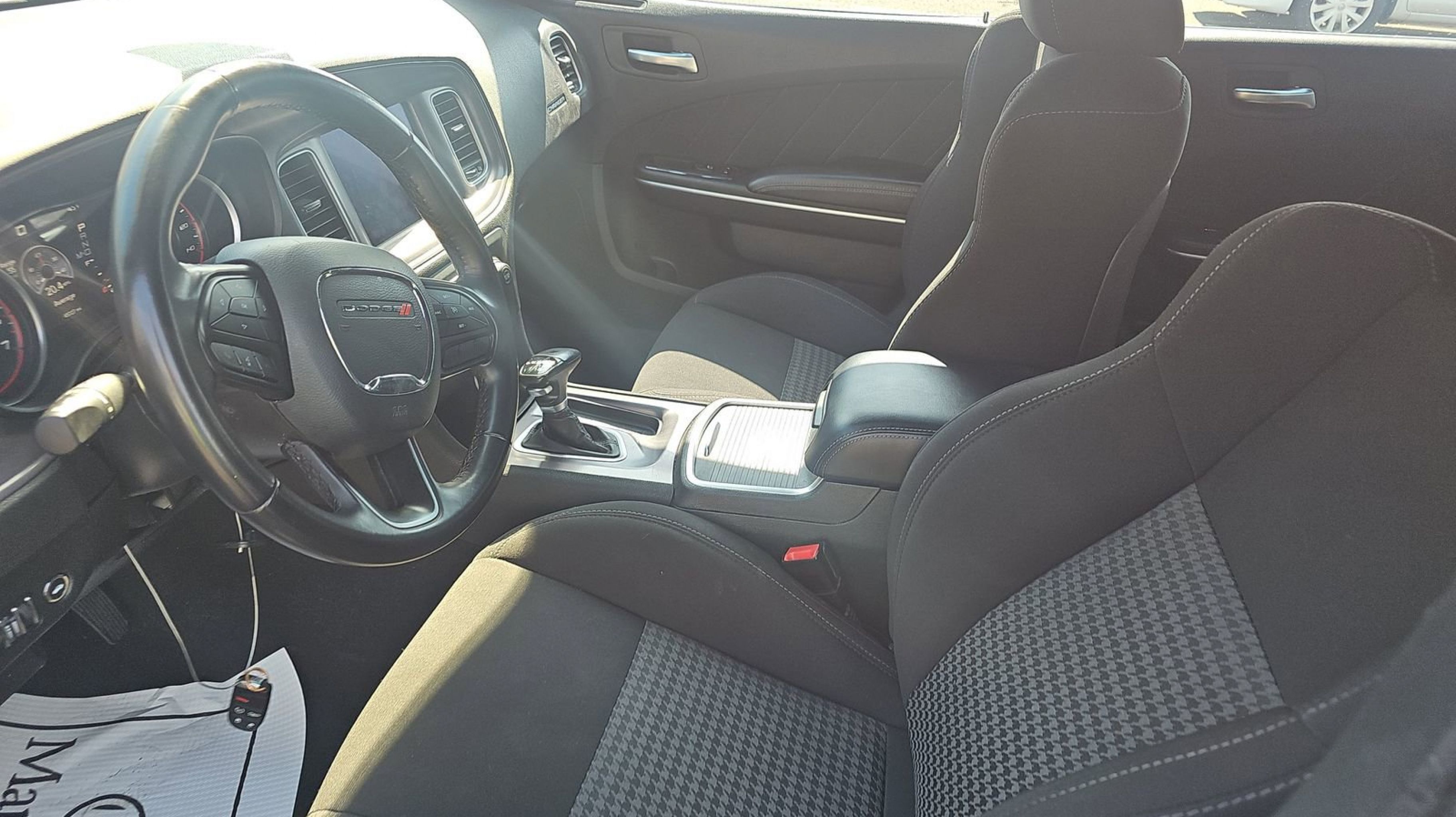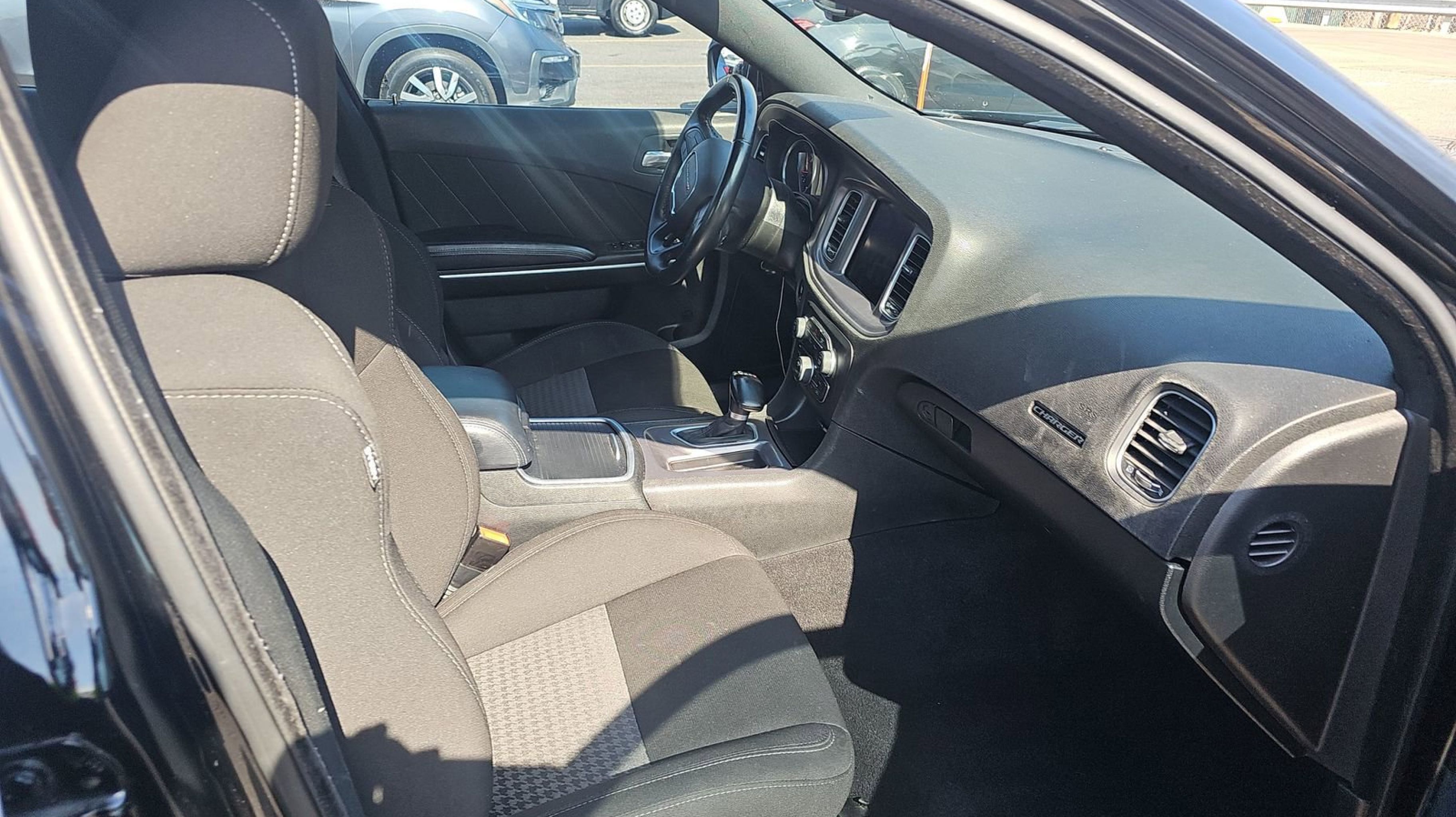 Pitch Black Clearcoat 2023 Dodge Charger GT RWD 8-Speed Automatic 3.6L V6 24V VVT Black w/Houndstooth Cloth Sport Seat, Quick Order Package 2EH, 1-Yr SiriusXM Guardian Trial, 2-Piece Shark Fin Antenna, 4-Wheel Disc Brakes, 4G LTE Wi-Fi Hot Spot, 6 Speakers, 8.4 Touchscreen Display, ABS brakes, Air Conditioning, Alloy wheels, AM/FM radio: SiriusXM, Anti-whiplash front head restraints, Apple CarPlay, Apple CarPlay/Android Auto, Auto-dimming Rear-View mirror, Automatic temperature control, Brake assist, Bumpers: body-color, Cloth Performance Seats, Compass, Delay-off headlights, Driver door bin, Driver vanity mirror, Dual front impact airbags, Dual front side impact airbags, Electronic Stability Control, Emergency communication system: SiriusXM Guardian, For Details, Visit DriveUconnect.com, Four wheel independent suspension, Front anti-roll bar, Front Bucket Seats, Front Center Armrest, Front dual zone A/C, Front License Plate Bracket, Front reading lights, Fully automatic headlights, Garage door transmitter: HomeLink, Google Android Auto, GPS Antenna Input, HD Radio, Heated door mirrors, Illuminated entry, Integrated Center Stack Radio, Integrated Voice Command w/Bluetooth, Knee airbag, Leather Shift Knob, Low tire pressure warning, Manufacturer's Statement of Origin, Media Hub (2 USB, AUX), Occupant sensing airbag, Outside temperature display, Overhead airbag, Overhead console, Panic alarm, ParkView Rear Back-Up Camera, Passenger door bin, Passenger vanity mirror, Power 2-Way Driver Lumbar Adjust, Power 8-Way Driver Seat, Power door mirrors, Power driver seat, Power steering, Power windows, Radio: Uconnect 4C w/8.4 Display, Rear anti-roll bar, Rear Armrest w/Cupholder Seat, Rear reading lights, Rear seat center armrest, Rear window defroster, Remote keyless entry, Speed control, Speed-Sensitive Wipers, Split folding rear seat, Spoiler, Steering wheel mounted audio controls, Tachometer, Telescoping steering wheel, Tilt steering wheel, Traction control, Trip computer, USB Host Flip, Variably intermittent wipers, Wheels: 20 x 8 Satin Carbon Painted, Black w/Houndstooth Cloth Sport Seat, Quick Order Package 2EH.