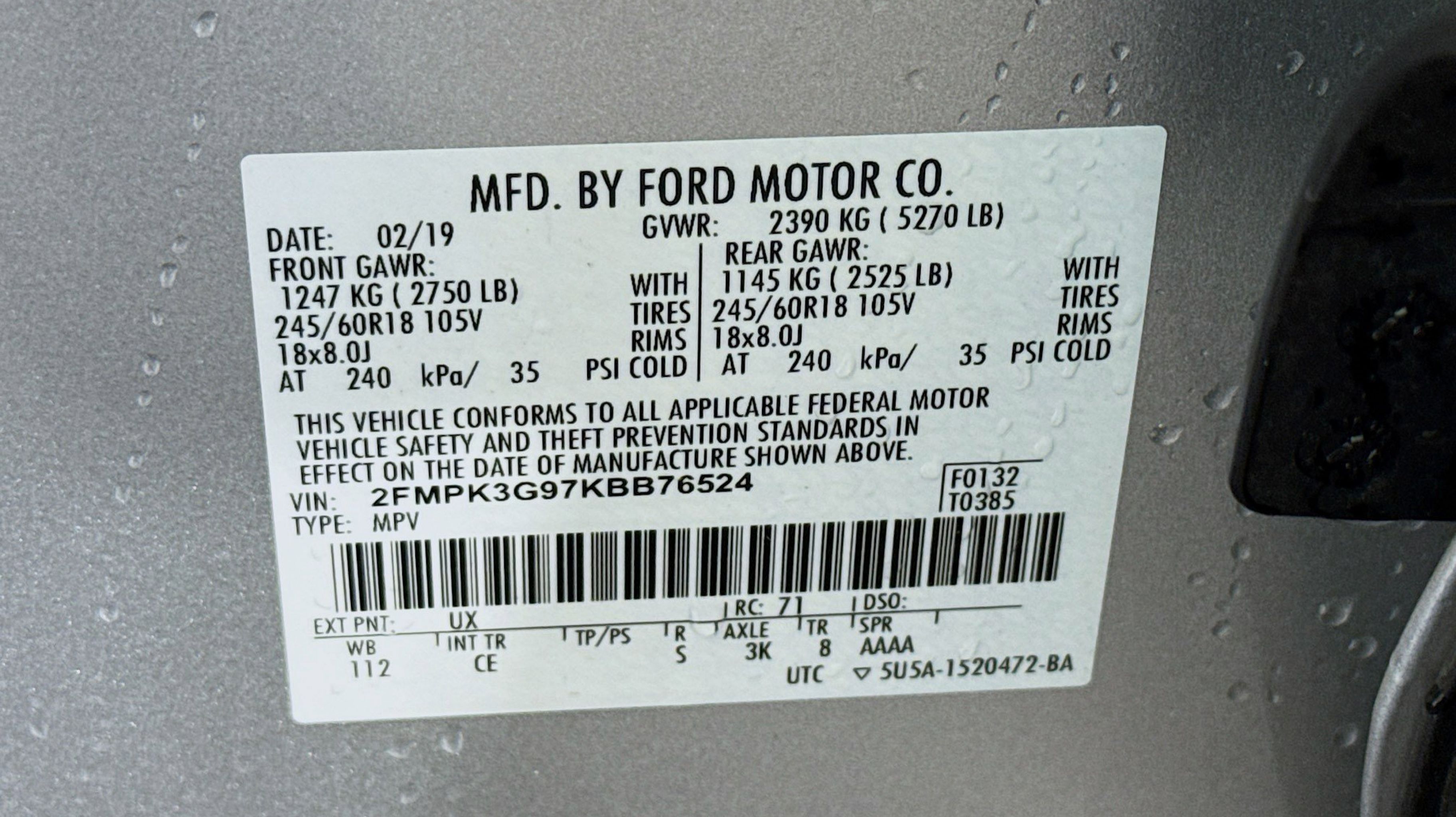 - ENGINE: TWIN-SCROLL 2.0L ECOBOOST -inc: auto start-stop technology (STD)