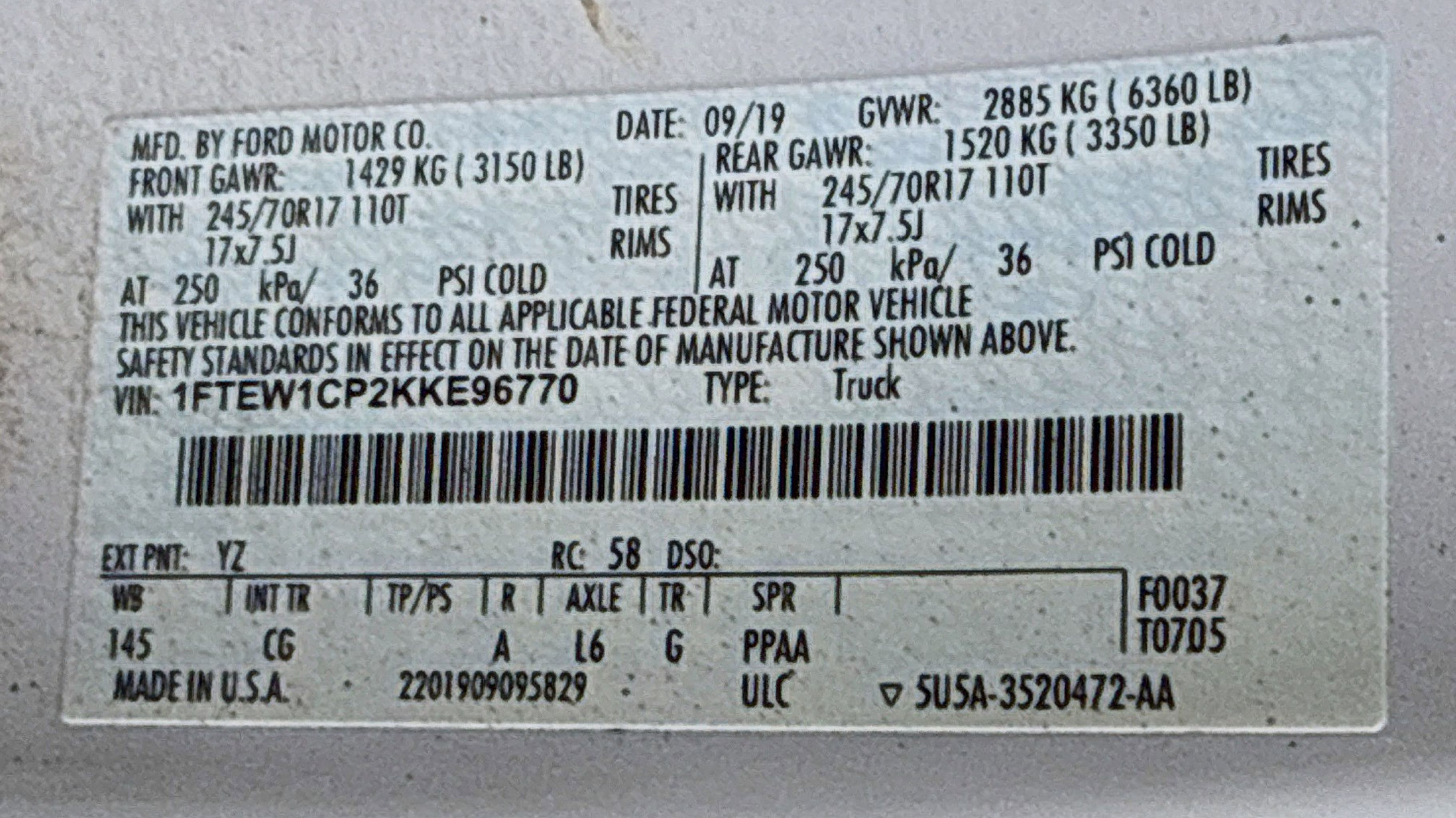 - ENGINE: 2.7L V6 ECOBOOST -inc: auto start-stop technology GVWR: 6 360 lbs Payload Package