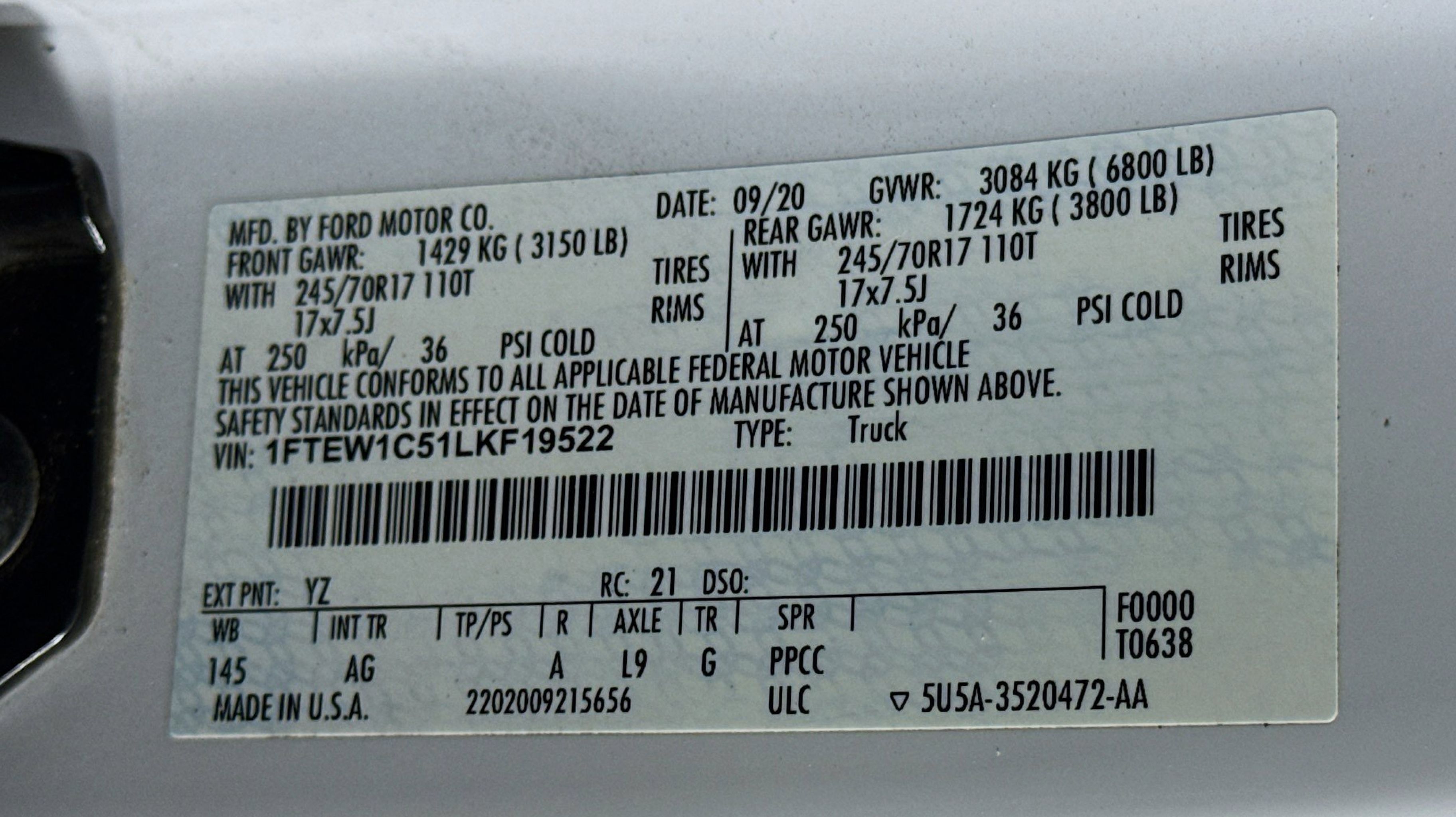 - ENGINE: 5.0L V8 -inc: auto start-stop technology and flex-fuel capability GVWR: 6 800 lbs Payload Package 3.15 Axle Ratio