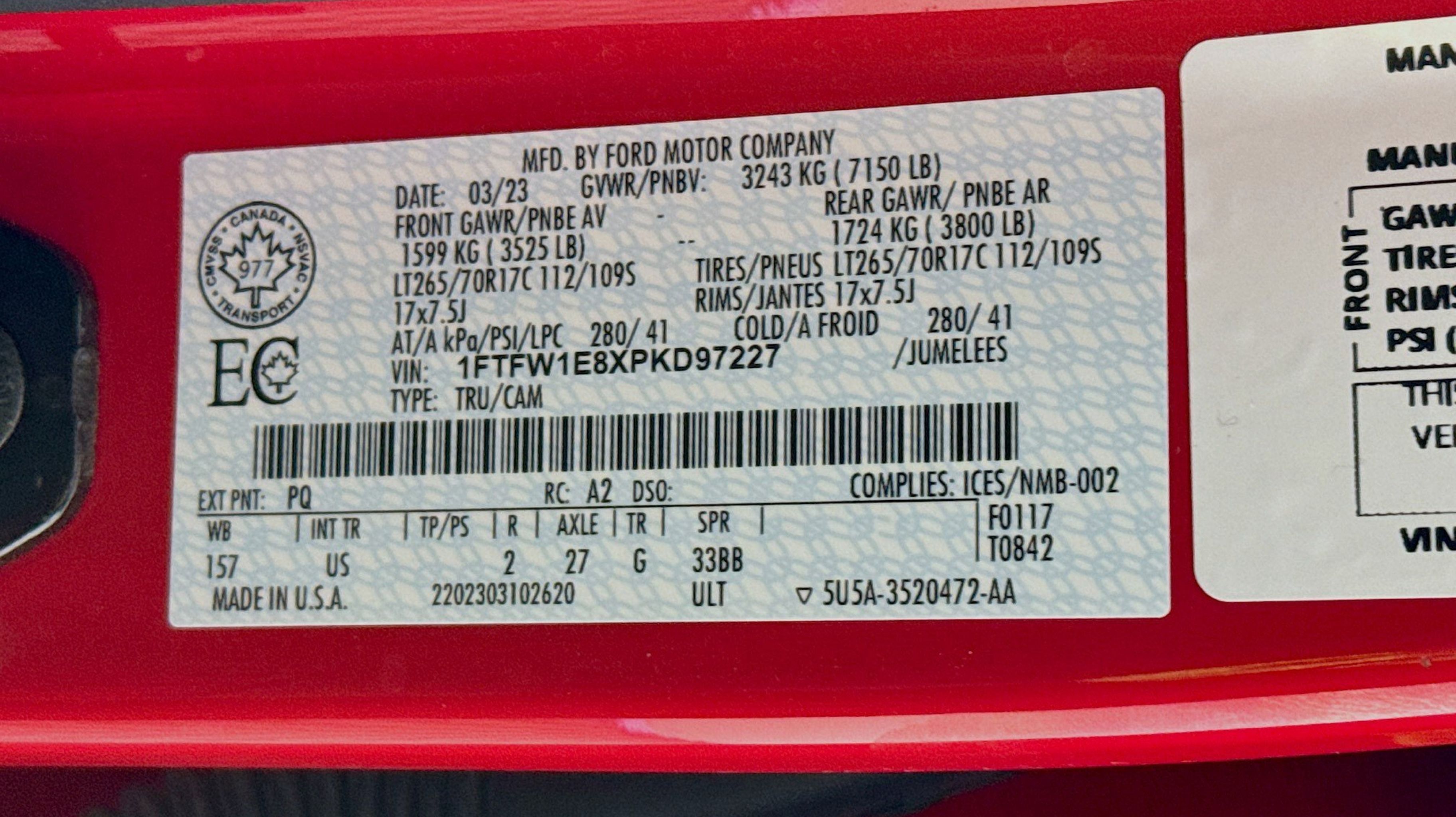 - ENGINE: 3.5L V6 ECOBOOST -inc: GVWR: 7 050 lbs Payload Package 3.31 Axle Ratio