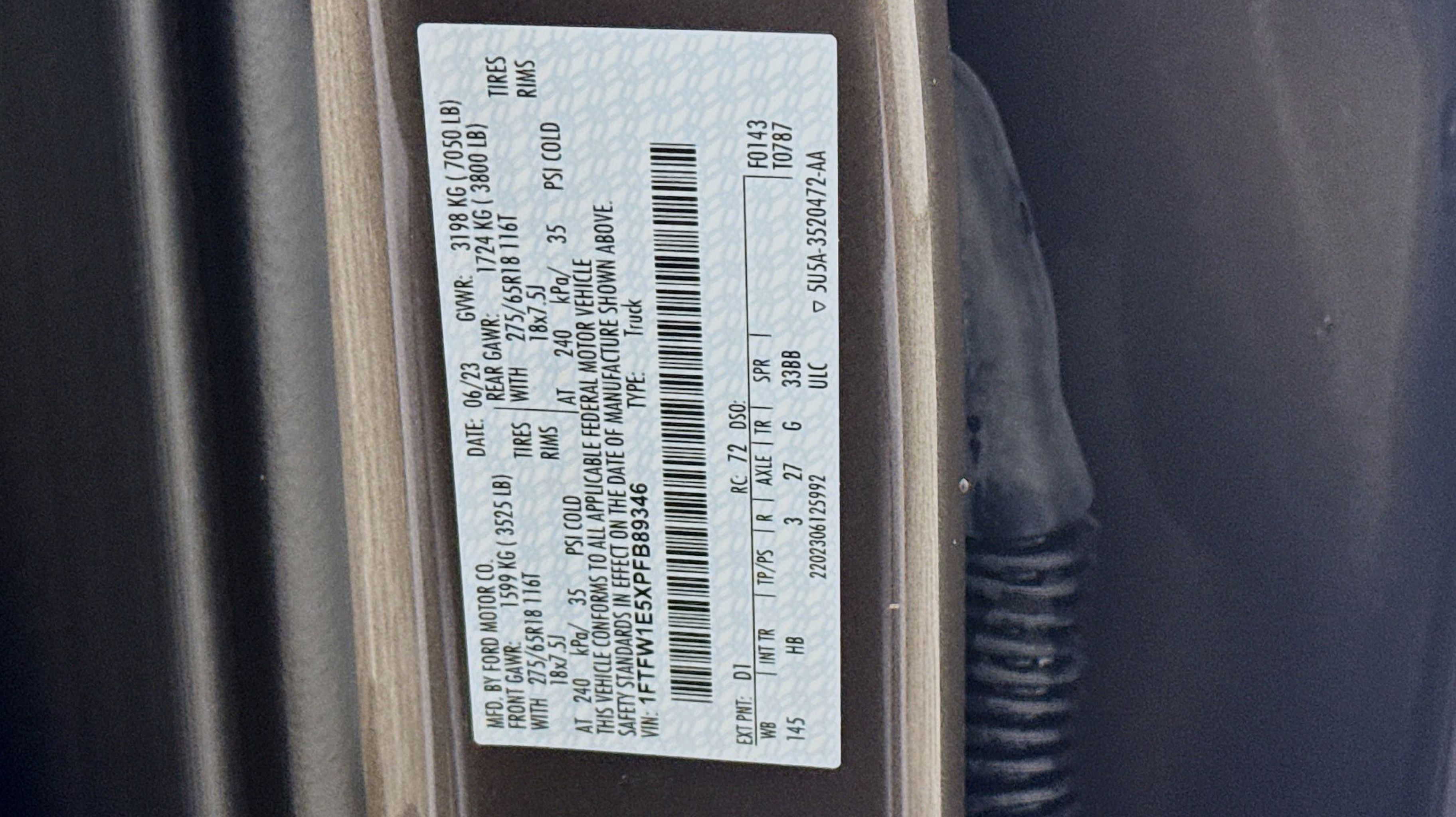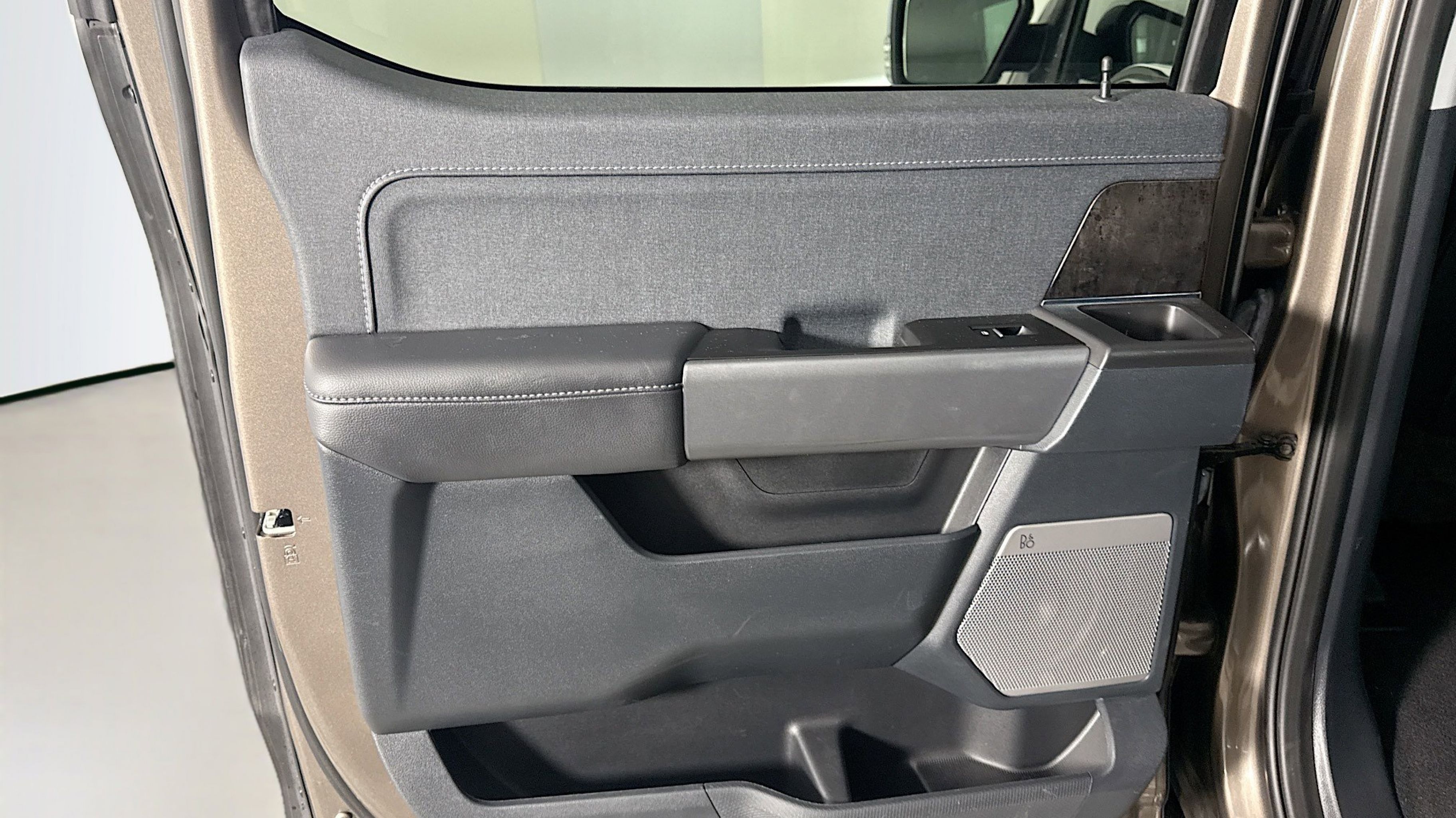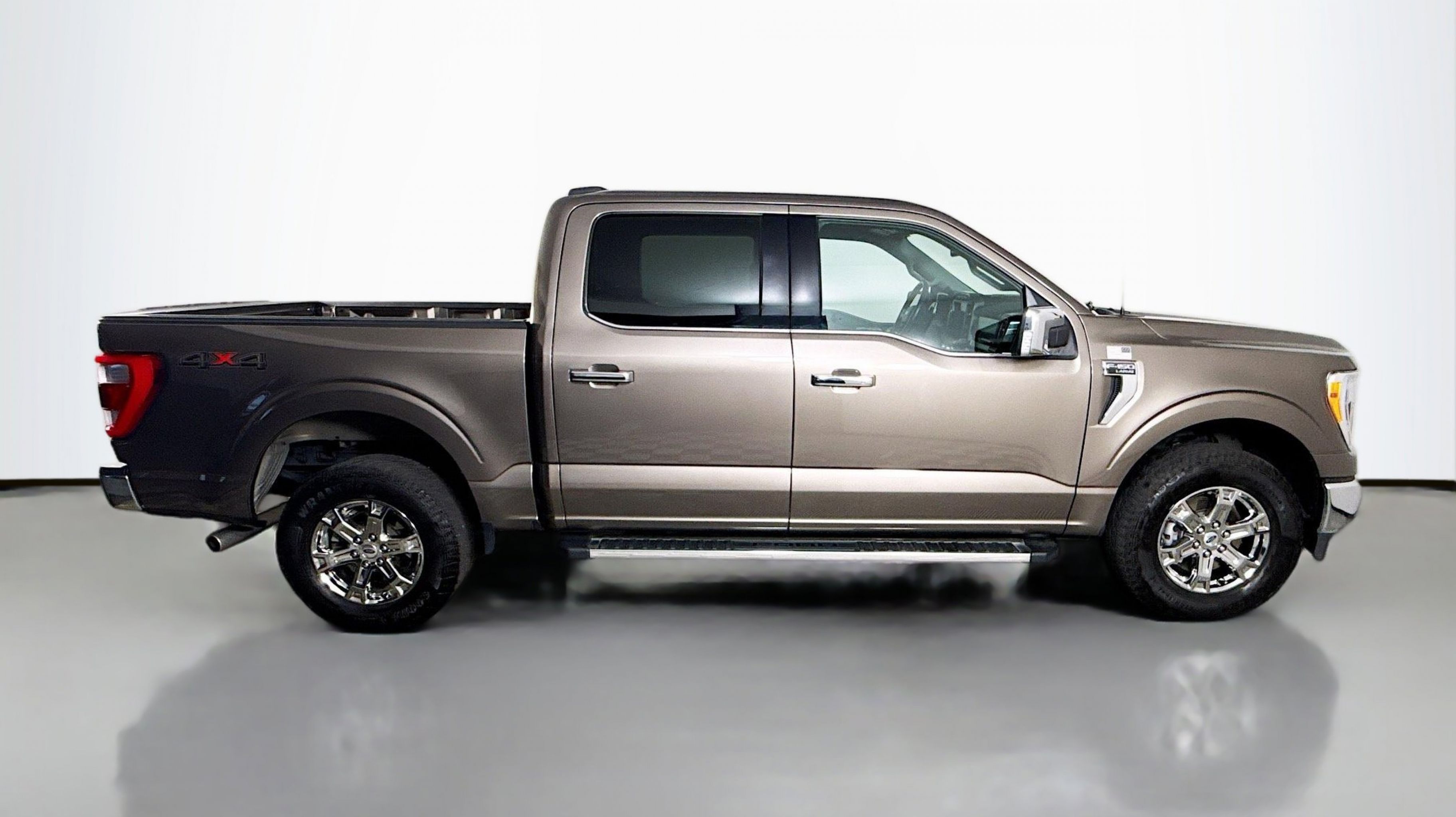 Stone Gray Metallic 2023 Ford F-150 Lariat 4WD 10-Speed Automatic 5.0L V8 4WD, Equipment Group 501A Standard, 3.31 Axle Ratio, 4-Wheel Disc Brakes, 8 Speakers, ABS brakes, Adjustable pedals, Air Conditioning, Alloy wheels, AM/FM radio: SiriusXM with 360L, Auto High-beam Headlights, Auto-dimming door mirrors, Auto-dimming Rear-View mirror, Automatic temperature control, Brake assist, Bumpers: chrome, Chrome wheels, Class IV Trailer Hitch Receiver, Compass, Delay-off headlights, Driver door bin, Driver vanity mirror, Dual front impact airbags, Dual front side impact airbags, Electronic Stability Control, Emergency communication system: SYNC 4 911 Assist, Exterior Parking Camera Rear, Front anti-roll bar, Front Bucket Seats, Front Center Armrest, Front dual zone A/C, Front fog lights, Front reading lights, Front wheel independent suspension, Fully automatic headlights, Garage door transmitter, Heated door mirrors, Heated front seats, Heated steering wheel, Illuminated entry, Inclination/Intrusion Sensor Removal, Leather-Trimmed Bucket Seats, Low tire pressure warning, Memory seat, Occupant sensing airbag, Outside temperature display, Overhead airbag, Overhead console, Panic alarm, Passenger door bin, Passenger vanity mirror, Pedal memory, Power door mirrors, Power driver seat, Power passenger seat, Power steering, Power windows, Radio data system, Radio: B&O Sound System by Bang & Olufsen, Rear reading lights, Rear seat center armrest, Rear step bumper, Rear window defroster, Remote keyless entry, Security system, Speed control, Speed-sensing steering, Split folding rear seat, Steering Wheel Heat Removal (DISC), Steering wheel mounted audio controls, SYNC 4 w/Enhanced Voice Recognition, Tachometer, Telescoping steering wheel, Tilt steering wheel, Traction control, Trip computer, Turn signal indicator mirrors, Variably intermittent wipers, Ventilated front seats, Voltmeter, Wheels: 18 Chrome-Like PVD, 4WD, Equipment Group 501A Standard.