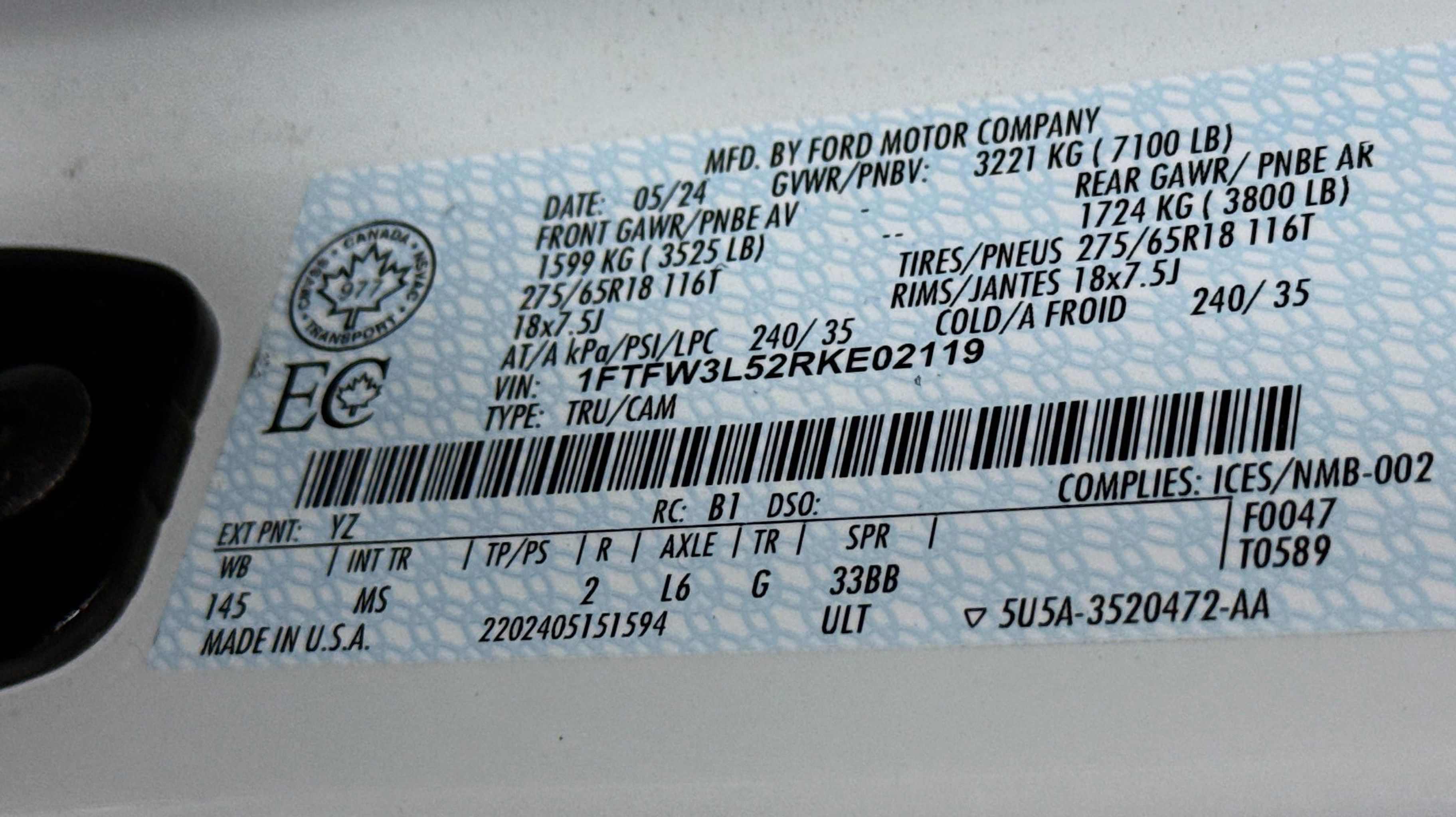 - ENGINE: 5.0L V8 -inc: auto start-stop technology 3.31 Axle Ratio GVWR: 7 100 lbs Payload Package