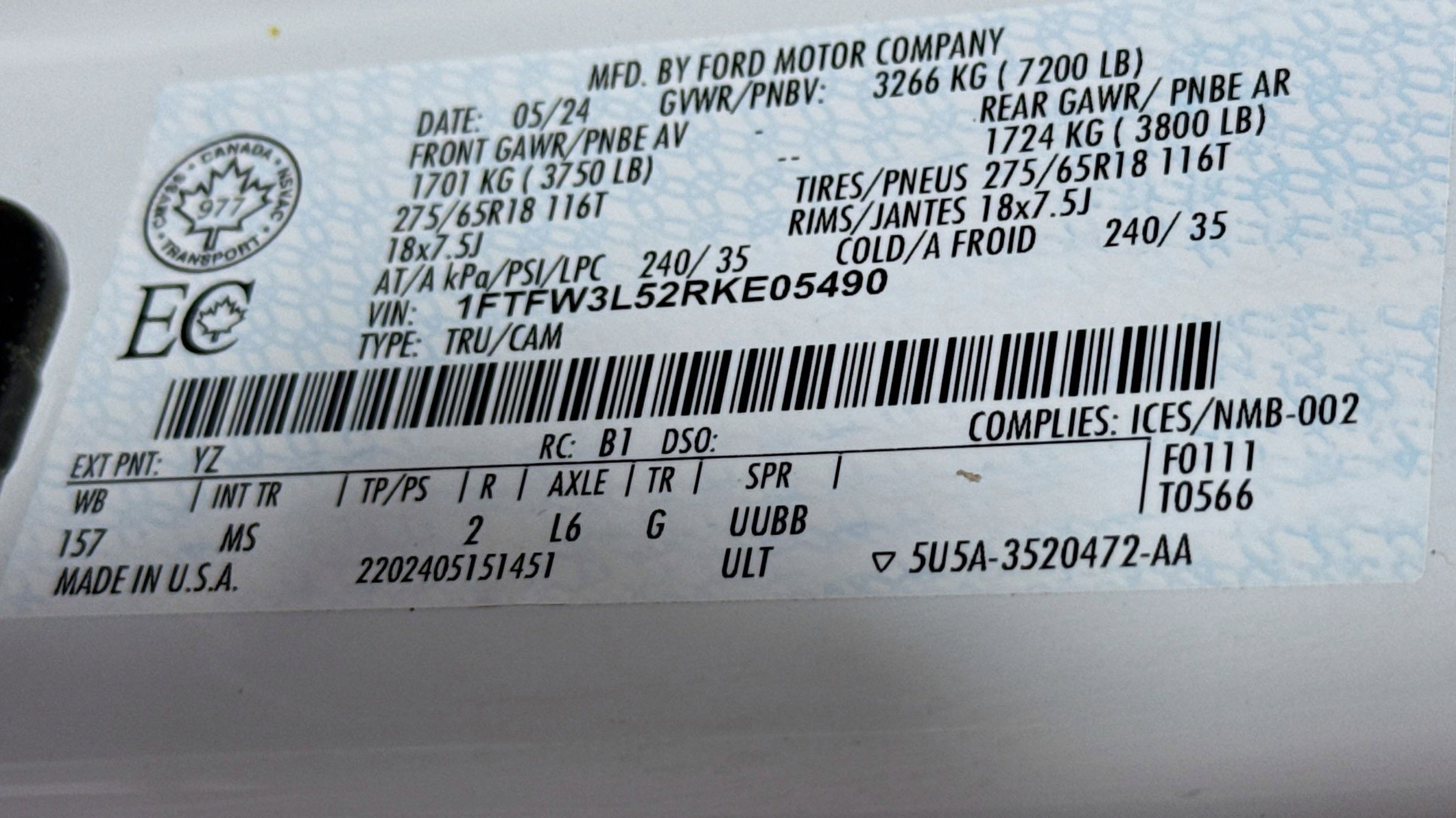 • ENGINE: 5.0L V8 -inc: auto start-stop technology 3.31 Axle Ratio GVWR: 7 100 lbs Payload Package