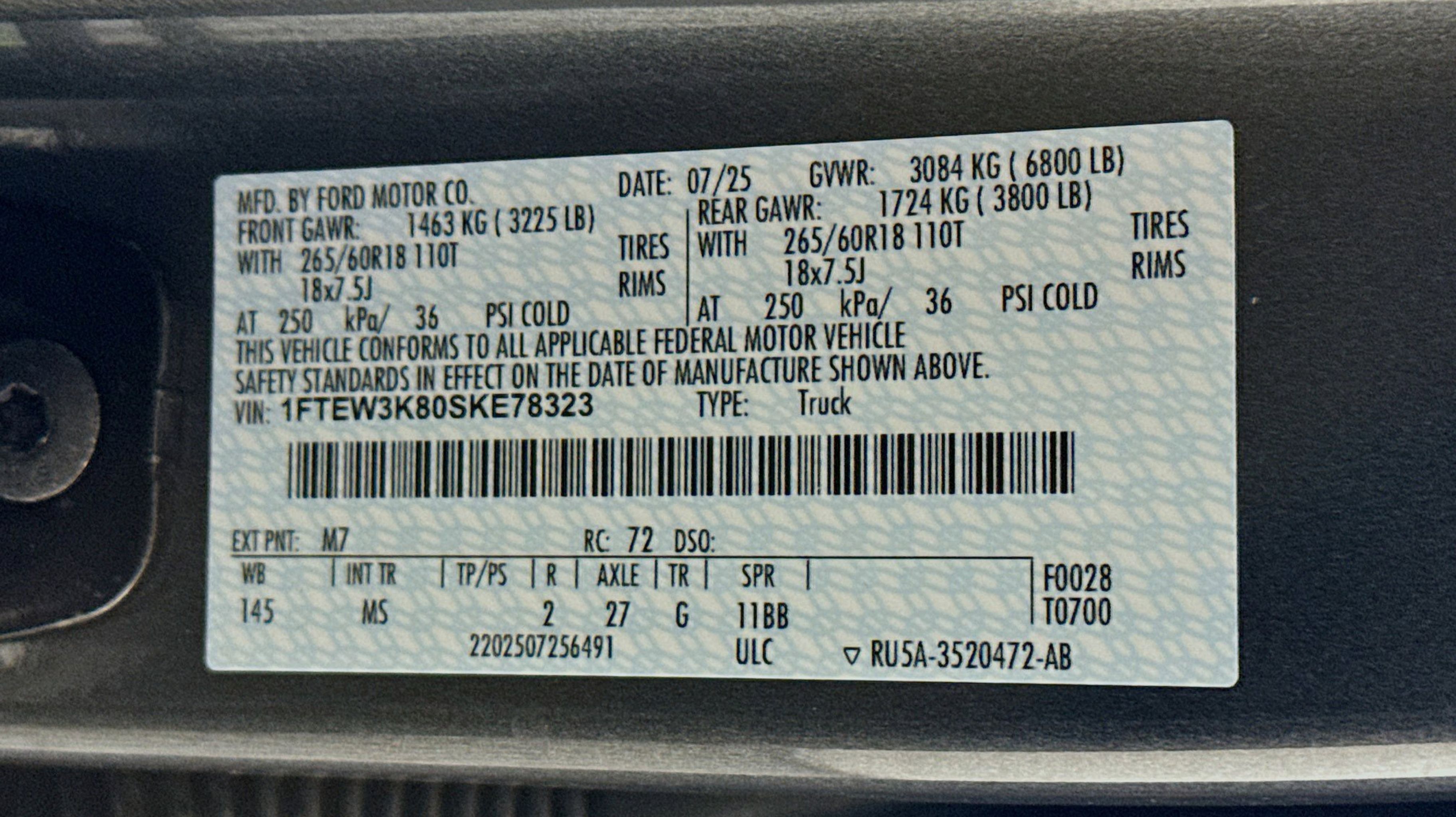 - ENGINE: 3.5L V6 ECOBOOST -inc: auto start-stop technology 3.31 Axle Ratio GVWR: 6 800 lbs Payload Package