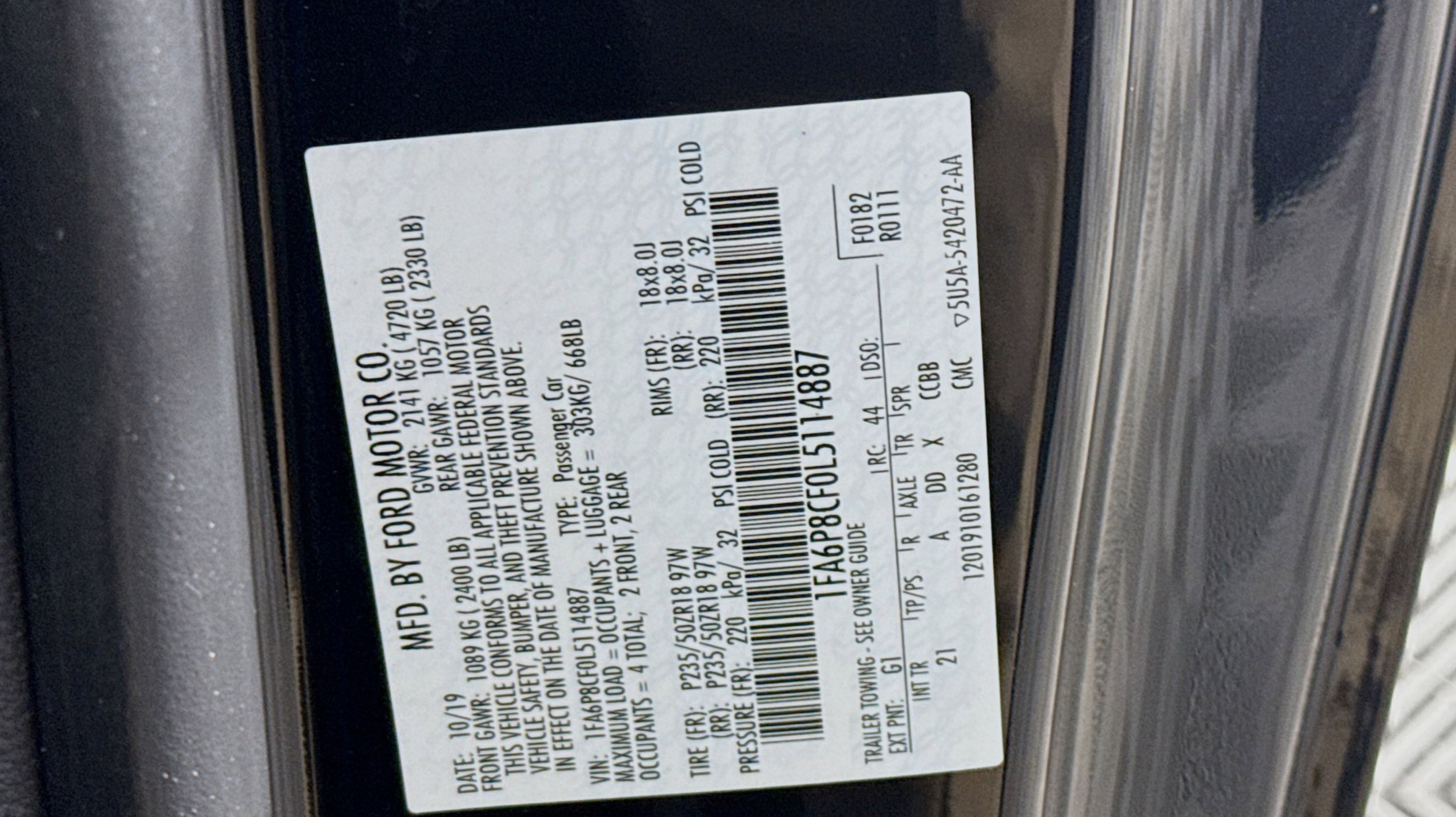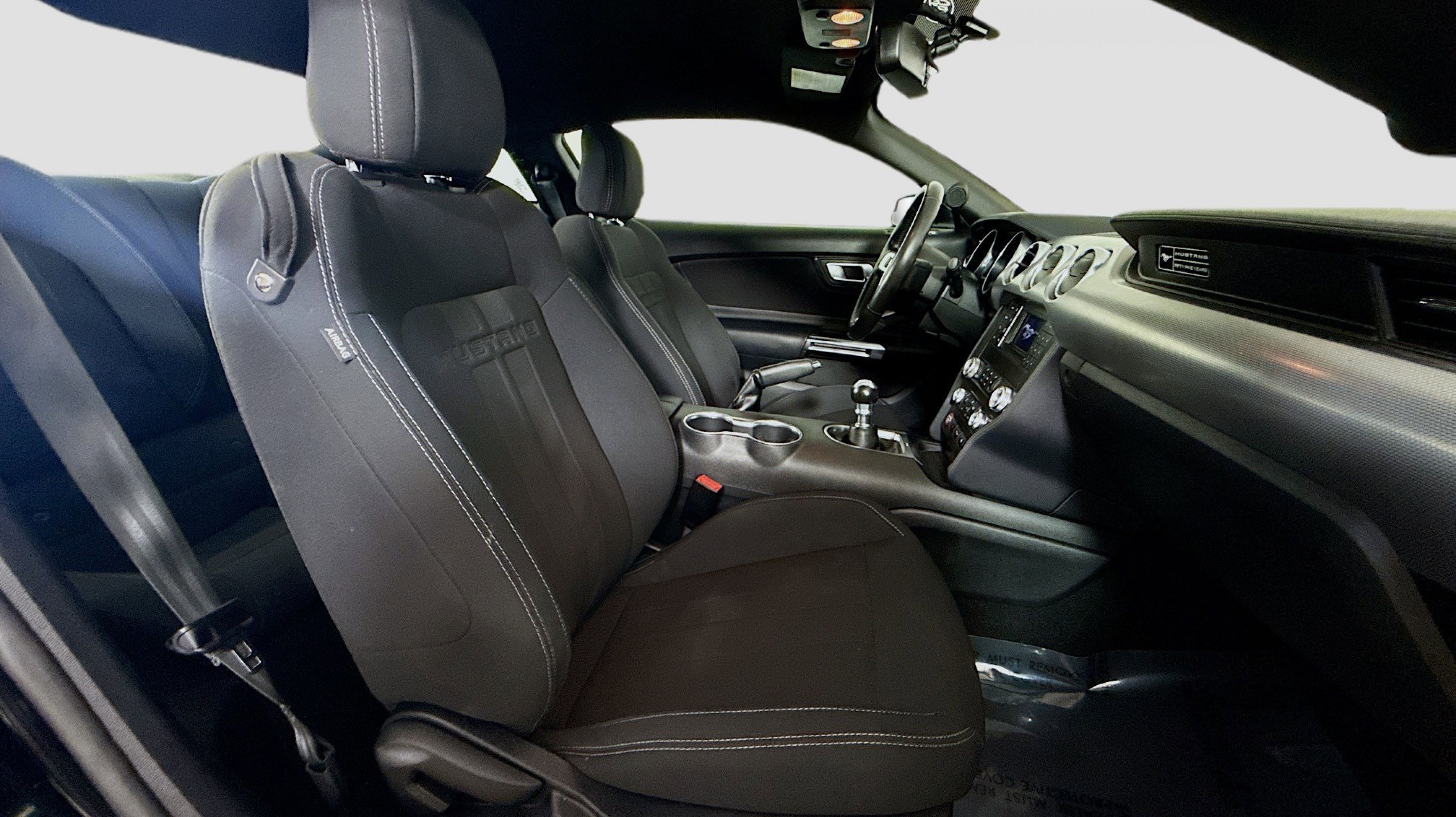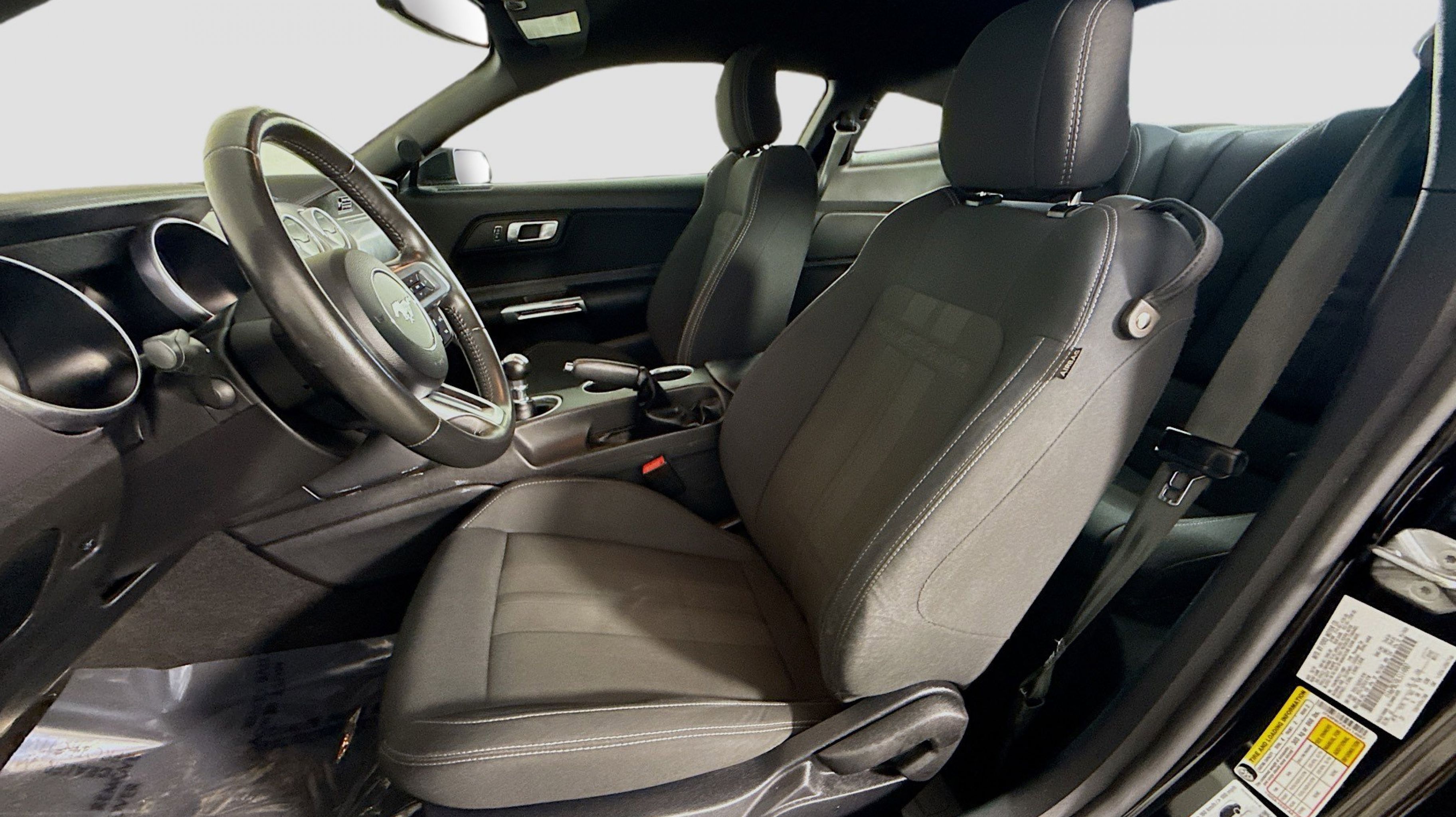 Shadow Black 2020 Ford Mustang GT RWD 6-Speed Manual 5.0L V8 Ti-VCT Equipment Group 300A, 3.55 Limited Slip Rear Axle, 4-Wheel Disc Brakes, 6 Speakers, ABS brakes, Air Conditioning, Alloy wheels, AM/FM radio, AM/FM Stereo, Auto-dimming Rear-View mirror, Brake assist, Bumpers: body-color, Cloth Bucket Seats, Compass, Delay-off headlights, Driver door bin, Driver vanity mirror, Dual front impact airbags, Dual front side impact airbags, Electronic Stability Control, Emergency communication system: 911 Assist, Exterior Parking Camera Rear, Four wheel independent suspension, Front anti-roll bar, Front Bucket Seats, Front Center Armrest, Front fog lights, Front reading lights, Fully automatic headlights, Illuminated entry, Knee airbag, Low tire pressure warning, Occupant sensing airbag, Outside temperature display, Overhead airbag, Overhead console, Panic alarm, Passenger door bin, Passenger vanity mirror, Power door mirrors, Power driver seat, Power passenger seat, Power steering, Power windows, Radio data system, Rear anti-roll bar, Rear window defroster, Remote keyless entry, Security system, Speed control, Speed-sensing steering, Speed-Sensitive Wipers, Split folding rear seat, Spoiler, Steering wheel mounted audio controls, SYNC Communications & Entertainment System, Tachometer, Telescoping steering wheel, Tilt steering wheel, Traction control, Trip computer, Variably intermittent wipers, Voltmeter, Wheels: 18 x 8 Machined-Face Aluminum, Equipment Group 300A.
