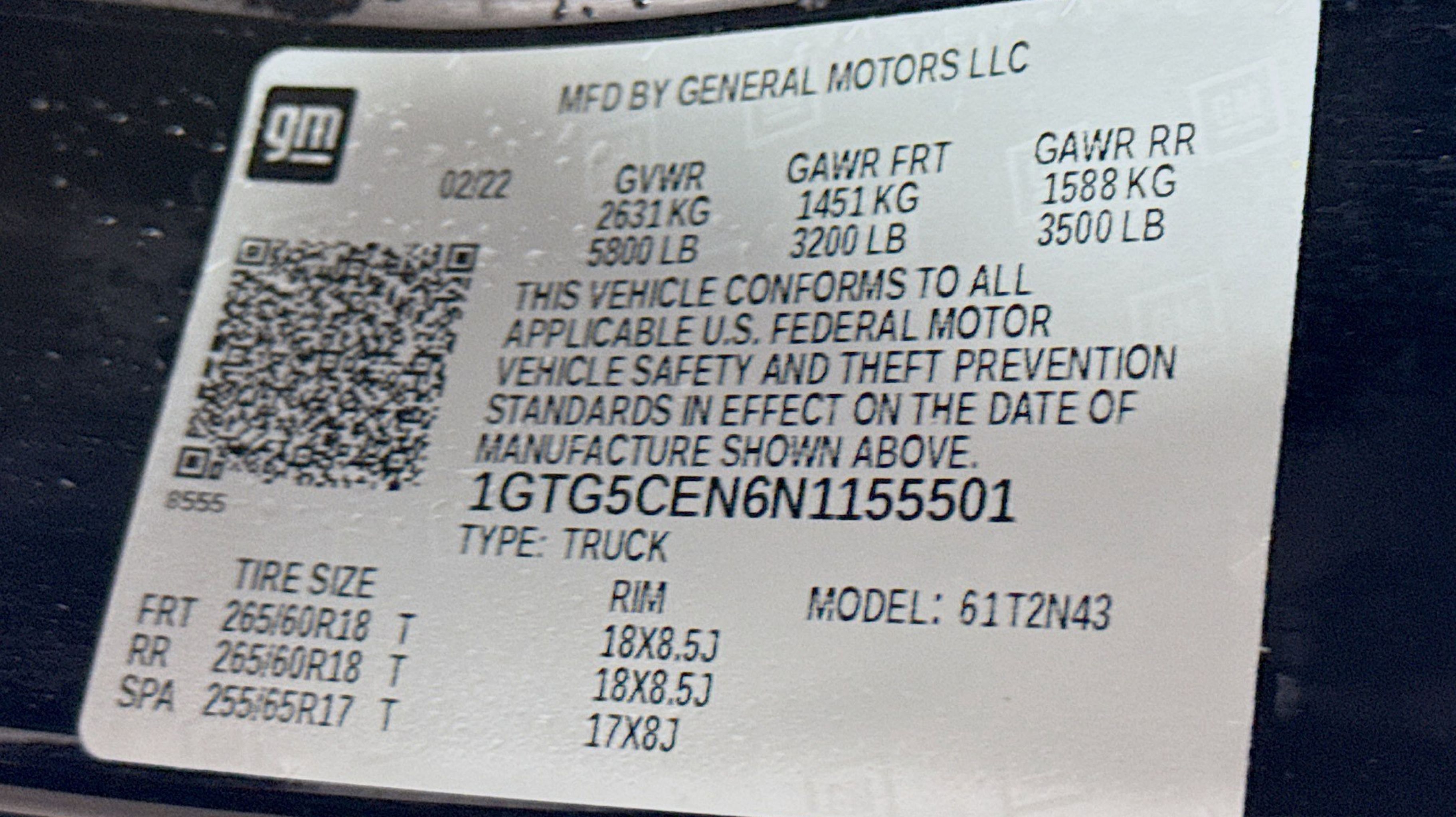 - GVWR 5800 LBS. (2631 KG)