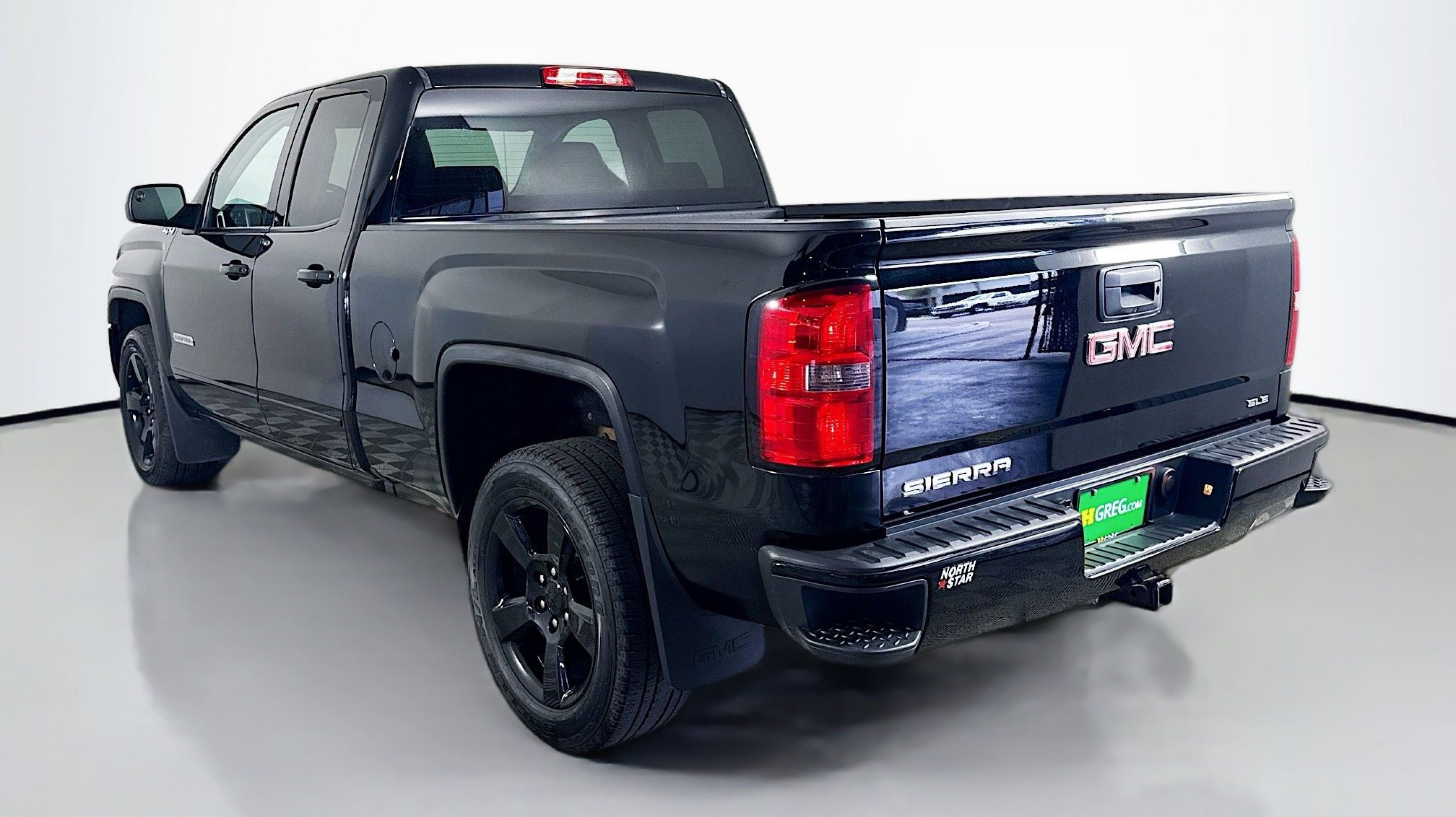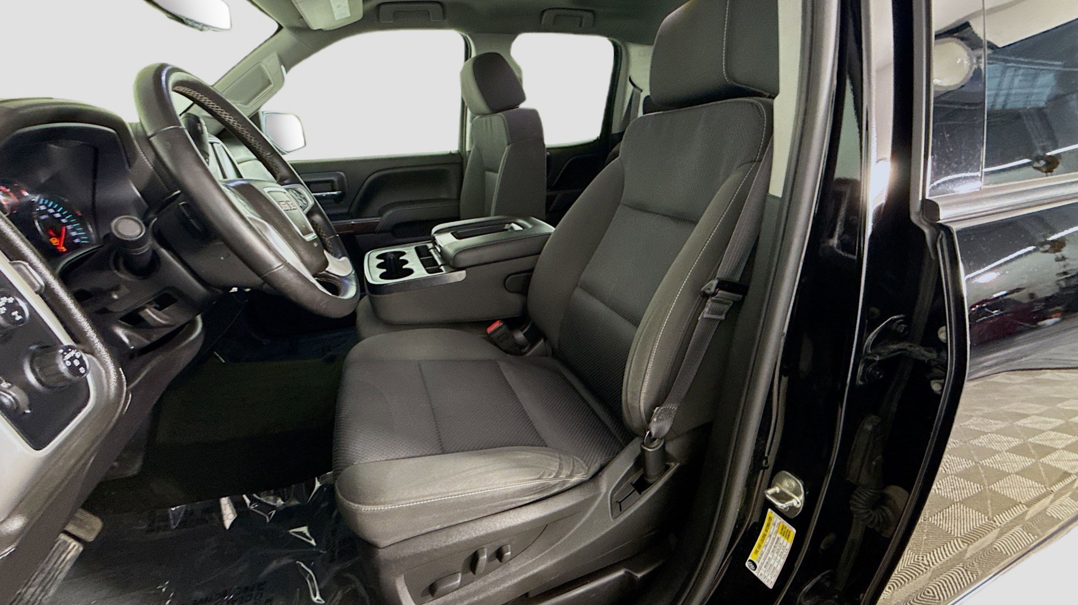 Onyx Black 2017 GMC Sierra 1500 SLE 4WD 6-Speed Automatic Electronic with Overdrive EcoTec3 5.3L V8 6-Speed Automatic Electronic with Overdrive, 4WD, Jet Black w/Cloth Seat Trim, 10-Way Power Driver's Seat Adjuster, 110-Volt AC Power Outlet, 150 Amp Alternator, 2-Speed Active Electronic AutoTrac Transfer Case, 4.2 Diagonal Color Display Driver Info Center, Body Color Bodyside Moldings, Body Color Door Handles, Body Color Grille Surround, Body Color Lower Front Bumper, Body Color Power Adjustable Heated Outside Mirrors, Body Color Rear Bumper w/Cornersteps, Body-Color Mirror Caps, Color-Keyed Carpeting, Deep-Tinted Glass, Driver & Front Passenger Illuminated Vanity Mirrors, Dual-Zone Automatic Climate Control, Electric Rear-Window Defogger, Elevation Edition, EZ Lift & Lower Tailgate, Front Frame-Mounted Black Recovery Hooks, Heavy-Duty Rear Locking Differential, Leather Wrapped Steering Wheel w/Cruise Controls, LED Cargo Box Lighting, OnStar 3 Month Guidance Plan, OnStar w/4G LTE, Power Windows w/Driver Express Up & Down, Preferred Equipment Group 3SA, Rear 60/40 Folding Bench Seat (Folds Up), Rear Vision Camera, Rear Wheelhouse Liners, Remote Keyless Entry, Remote Locking Tailgate, Remote Vehicle Starter System, Rubberized-Vinyl Front Floor Mats, Rubberized-Vinyl Rear Floor Mats, Single Slot CD/MP3 Player, Single-Zone Air Conditioning, SLE Value Package, Steering Wheel Audio Controls, Theft Deterrent System (Unauthorized Entry), Thin Profile LED Fog Lamps, Trailering Equipment, Universal Home Remote, Wheels: 20 x 9 Black-Painted Aluminum, 3.42 Rear Axle Ratio, 4-Wheel Disc Brakes, 40/20/40 Front Split Bench Seat, 6 Speakers, 6-Speaker Audio System, ABS brakes, Air Conditioning, Alloy wheels, AM/FM radio, Auxiliary External Transmission Oil Cooler, Bodyside moldings, Brake assist, Bumpers: chrome, CD player, Cloth Seat Trim, Compass, Delay-off headlights, Driver door bin, Driver vanity mirror, Dual front impact airbags, Dual front side impact airbags, Electronic Stability Control, Emergency communication system: OnStar Guidance, Exterior Parking Camera Rear, Front anti-roll bar, Front Center Armrest w/Storage, Front reading lights, Front wheel independent suspension, Fully automatic headlights, HD Radio, Heated door mirrors, Heated Driver & Front Passenger Seats, Heavy Duty Suspension, High-Intensity Discharge Headlights, Illuminated entry, Integrated Trailer Brake Controller, Low tire pressure warning, Manual Tilt/Telescoping Steering Column, Occupant sensing airbag, Outside temperature display, Overhead airbag, Overhead console, Panic alarm, Passenger door bin, Passenger vanity mirror, Power door mirrors, Power steering, Power windows, Radio data system, Radio: AM/FM Stereo w/8 Diagonal Color Touch Screen, Rear reading lights, Rear step bumper, Remote keyless entry, SiriusXM Satellite Radio, Speed control, Speed-sensing steering, Split folding rear seat, Steering wheel mounted audio controls, Tachometer, Tilt steering wheel, Traction control, Trip computer, Variably intermittent wipers, Voltmeter, Wheels: 17 x 8 Bright Machined Aluminum, 6-Speed Automatic Electronic with Overdrive, 4WD, Jet Black w/Cloth Seat Trim, 10-Way Power Driver's Seat Adjuster, 110-Volt AC Power Outlet, 150 Amp Alternator, 2-Speed Active Electronic AutoTrac Transfer Case, 4.2 Diagonal Color Display Driver Info Center, Body Color Bodyside Moldings, Body Color Door Handles, Body Color Grille Surround, Body Color Lower Front Bumper, Body Colo