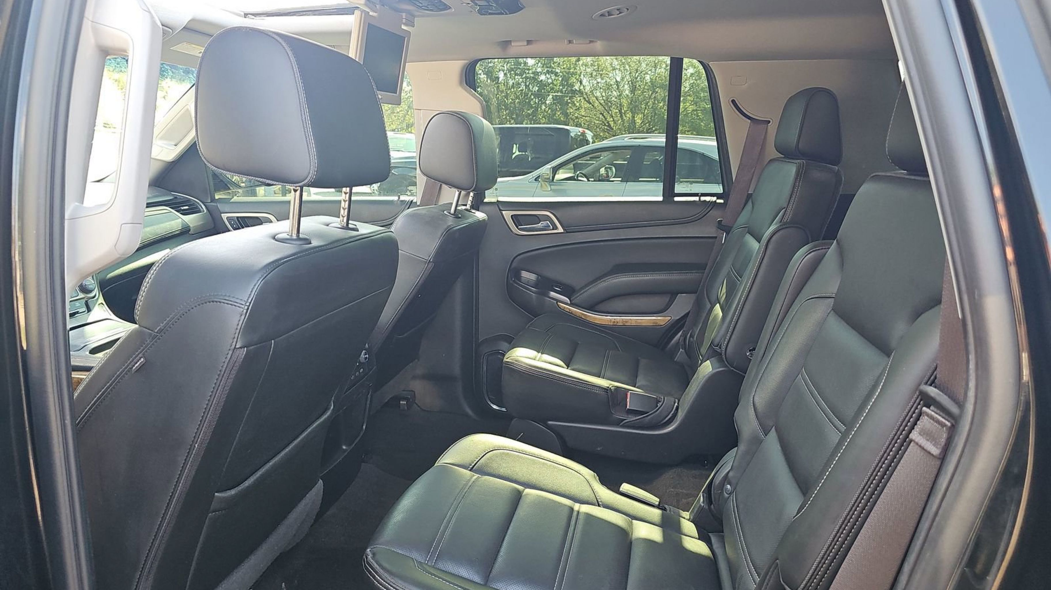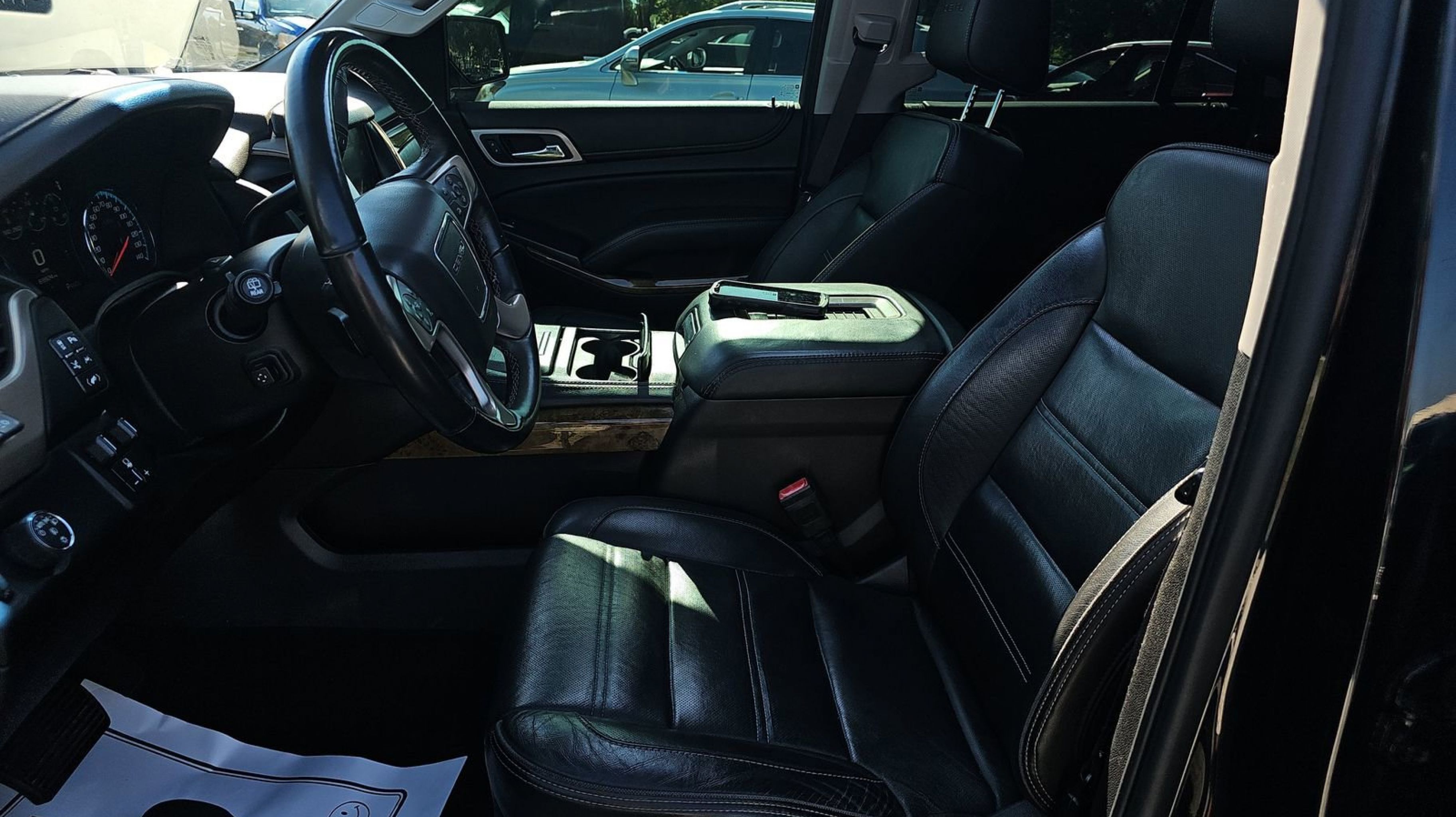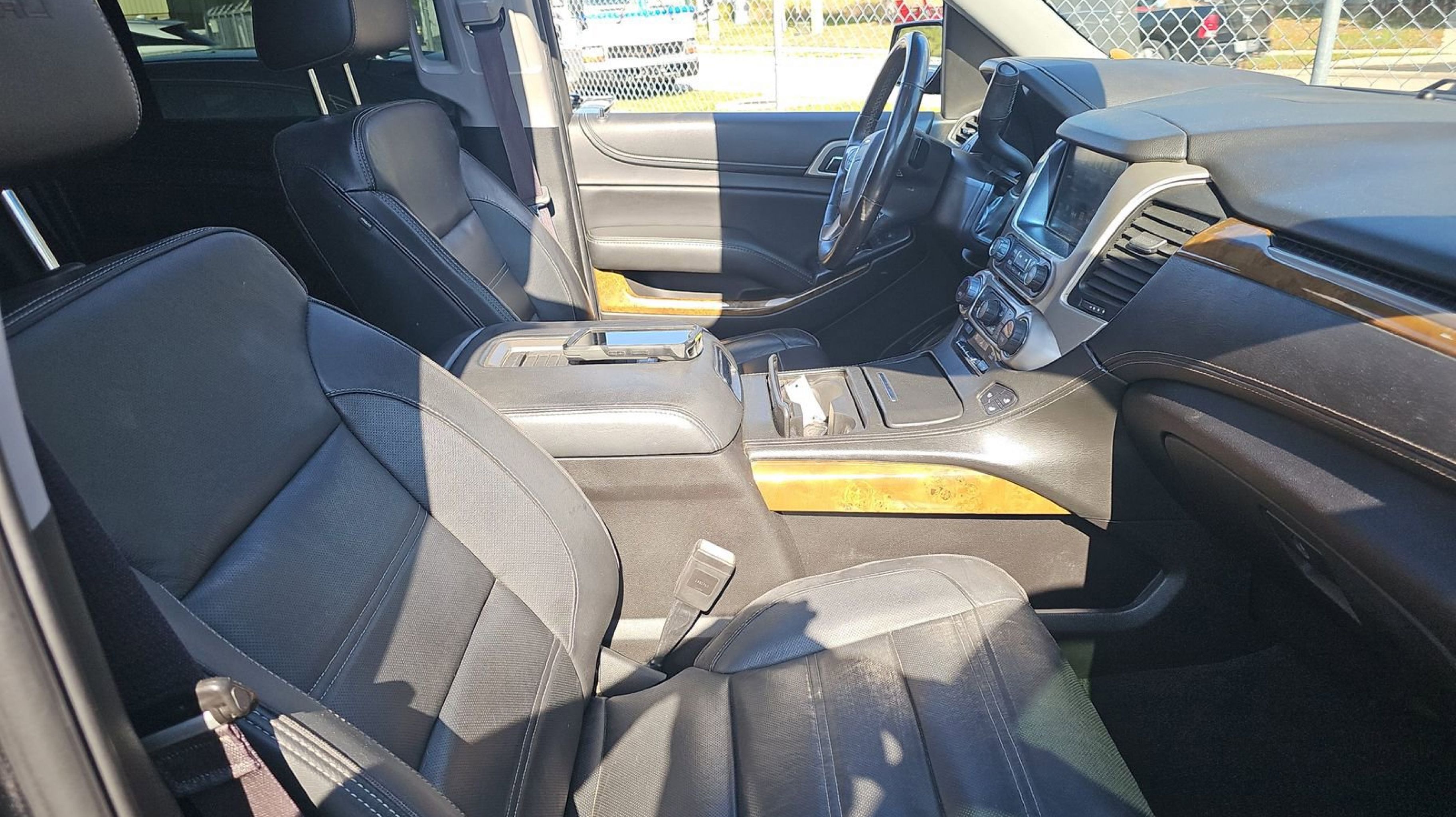 Onyx Black 2017 GMC Yukon Denali RWD 8-Speed Automatic with Overdrive EcoTec3 6.2L V8 17 Disc/Disc VAC Power Brakes, 5 Auxiliary 12-volt Power Outlets, Black Assist Steps w/Chrome Strip, Enhanced Driver Alert Package, Forward Collision Alert Sensor Indicator, Hands Free Power Liftgate, Heated Leather-Wrapped Steering Wheel, Inside Rear-View Auto-Dimming Mirror, Integrated Trailer Brake Controller, Intellibeam Automatic High Beam On/Off Headlamps, Lane Keep Assist, Low Speed Forward Automatic Braking, Magnetic Ride Control Suspension Package, Memory Package, OnStar Basic Plan For 5 Years, OnStar w/4G LTE, Open Road Package, Passive Entry System, Power Release Second Row Bucket Seats, Power Tilt & Telescopic Steering Column, Power Tilt-Sliding Sunroof w/Express-Open/Close, Power-Adjustable Pedals For Accelerator & Brake, Preferred Equipment Group 5SA, Push Button Keyless Start, Rear Cross-Traffic Alert, Rear Seat Blu-Ray/DVD Entertainment System, Remote Keyless Entry, Side Blind Zone Alert w/Lane Change Alert, Universal Home Remote, Wireless Charging, 10 Speakers, 3.23 Axle Ratio, 3rd row seats: split-bench, 4-Wheel Disc Brakes, ABS brakes, Adaptive suspension, Adjustable pedals, Air Conditioning, All-Weather Floor Mats, Alloy wheels, AM/FM radio: SiriusXM, Apple CarPlay/Android Auto, Auto High-beam Headlights, Auto-dimming door mirrors, Auto-dimming Rear-View mirror, Automatic temperature control, Bodyside moldings, Bose Centerpoint Premium 10-Speaker Surround Sound, Brake assist, Bumpers: body-color, CD Player, CD player, Compass, Delay-off headlights, Driver door bin, Driver vanity mirror, Dual front impact airbags, Dual front side impact airbags, Electronic Stability Control, Emergency communication system: OnStar Guidance, Exterior Parking Camera Rear, Front anti-roll bar, Front Bucket Seats, Front Center Armrest, Front dual zone A/C, Front fog lights, Front reading lights, Front wheel independent suspension, Full-Feature Reclining Bucket Seats, Fully automatic headlights, Garage door transmitter, Genuine wood console insert, Genuine wood dashboard insert, Genuine wood door panel insert, Heads-Up Display, Heated & Ventilated Driver & Front Passenger Seats, Heated door mirrors, Heated front seats, Heated rear seats, Heated steering wheel, High-Intensity Discharge Headlights, Illuminated entry, Leather Shift Knob, Low tire pressure warning, Memory seat, Navigation System, NavTraffic, Occupant sensing airbag, Outside temperature display, Overhead airbag, Overhead console, Panic alarm, Passenger door bin, Passenger vanity mirror, Pedal memory, Perforated Leather-Appointed Seat Trim, Power door mirrors, Power driver seat, Power Liftgate, Power passenger seat, Power steering, Power windows, Premium audio system: IntelliLink, Pwr Retractable Assist Steps w/Perimeter Lighting, Radio: AM/FM/SiriusXM w/Navigation, Rain sensing wipers, Rear air conditioning, Rear anti-roll bar, Rear reading lights, Rear window defroster, Rear window wiper, Remote keyless entry, Roof rack: rails only, Security system, SiriusXM Satellite Radio, Speed control, Speed-sensing steering, Split folding rear seat, Spoiler, Steering wheel memory, Steering wheel mounted audio controls, Tachometer, Telescoping steering wheel, Tilt steering wheel, Traction control, Trip computer, Turn signal indicator mirrors, Variably intermittent wipers, Ventilated front seats, Voltmeter, Wheels: 20 x 9 Ultra Bright Machined Aluminum, Wheels: 22 x 8.5 Ultra-Bright Alum