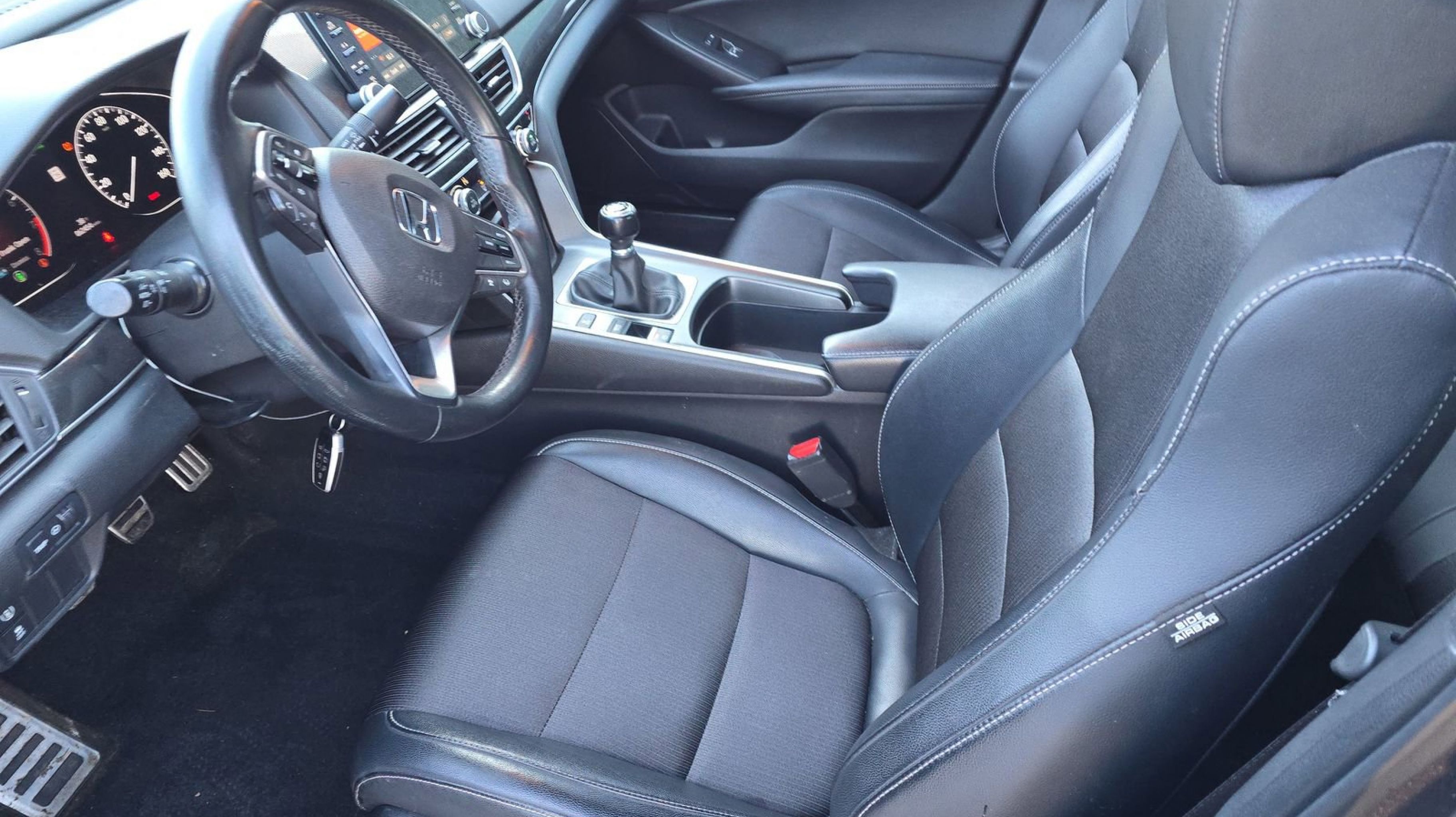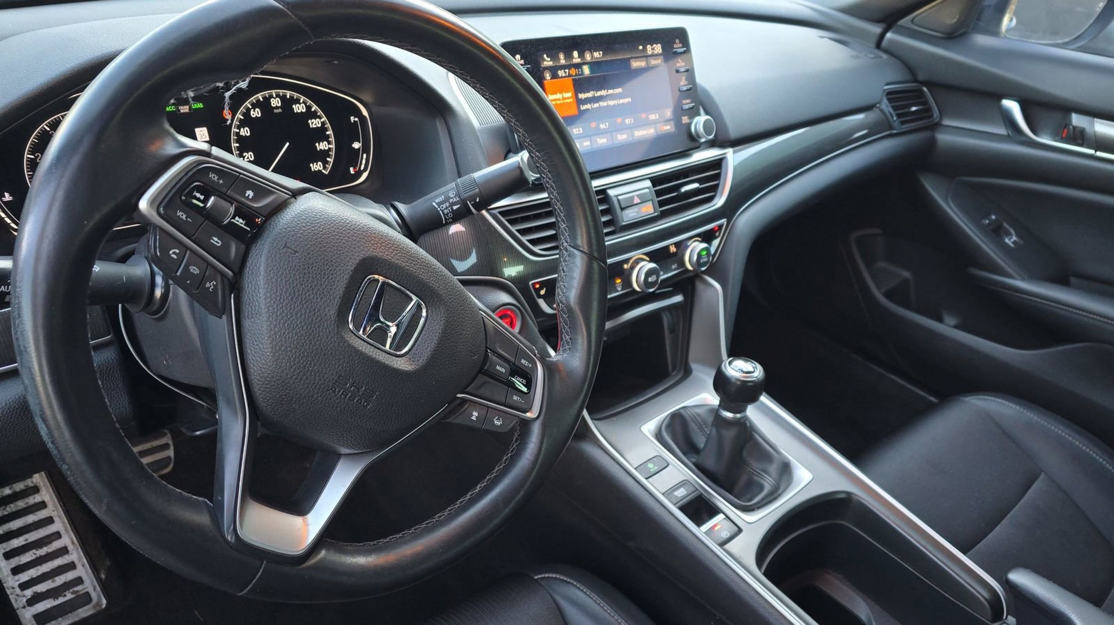 Black w/Cloth Seat Trim, 4-Wheel Disc Brakes, 8 Speakers, ABS brakes, Air Conditioning, Alloy wheels, AM/FM radio: SiriusXM, Apple CarPlay/Android Auto, Auto High-beam Headlights, Automatic temperature control, Blind Spot Information (BSI) System warning, Brake assist, Bumpers: body-color, Cloth Seat Trim, Delay-off headlights, Driver door bin, Driver vanity mirror, Dual front impact airbags, Dual front side impact airbags, Electronic Stability Control, Emergency communication system: HondaLink, Exterior Parking Camera Rear, Four wheel independent suspension, Front anti-roll bar, Front Bucket Seats, Front Center Armrest, Front dual zone A/C, Front fog lights, Front reading lights, Fully automatic headlights, Heated door mirrors, Heated Front Bucket Seats, Heated front seats, Illuminated entry, Knee airbag, Leather Shift Knob, Leather steering wheel, Low tire pressure warning, Occupant sensing airbag, Outside temperature display, Overhead airbag, Overhead console, Panic alarm, Passenger door bin, Passenger vanity mirror, Power door mirrors, Power driver seat, Power moonroof, Power steering, Power windows, Radio data system, Radio: 180-Watt AM/FM/HD/SiriusXM Audio System, Rear anti-roll bar, Rear seat center armrest, Rear window defroster, Remote keyless entry, Security system, Speed control, Speed-sensing steering, Speed-Sensitive Wipers, Split folding rear seat, Spoiler, Steering wheel mounted audio controls, Tachometer, Telescoping steering wheel, Tilt steering wheel, Traction control, Trip computer, Variably intermittent wipers, Wheels: 19 Machine-Finished Alloy w/Black Inserts, Black w/Cloth Seat Trim. Odometer is 38061 miles below market average!