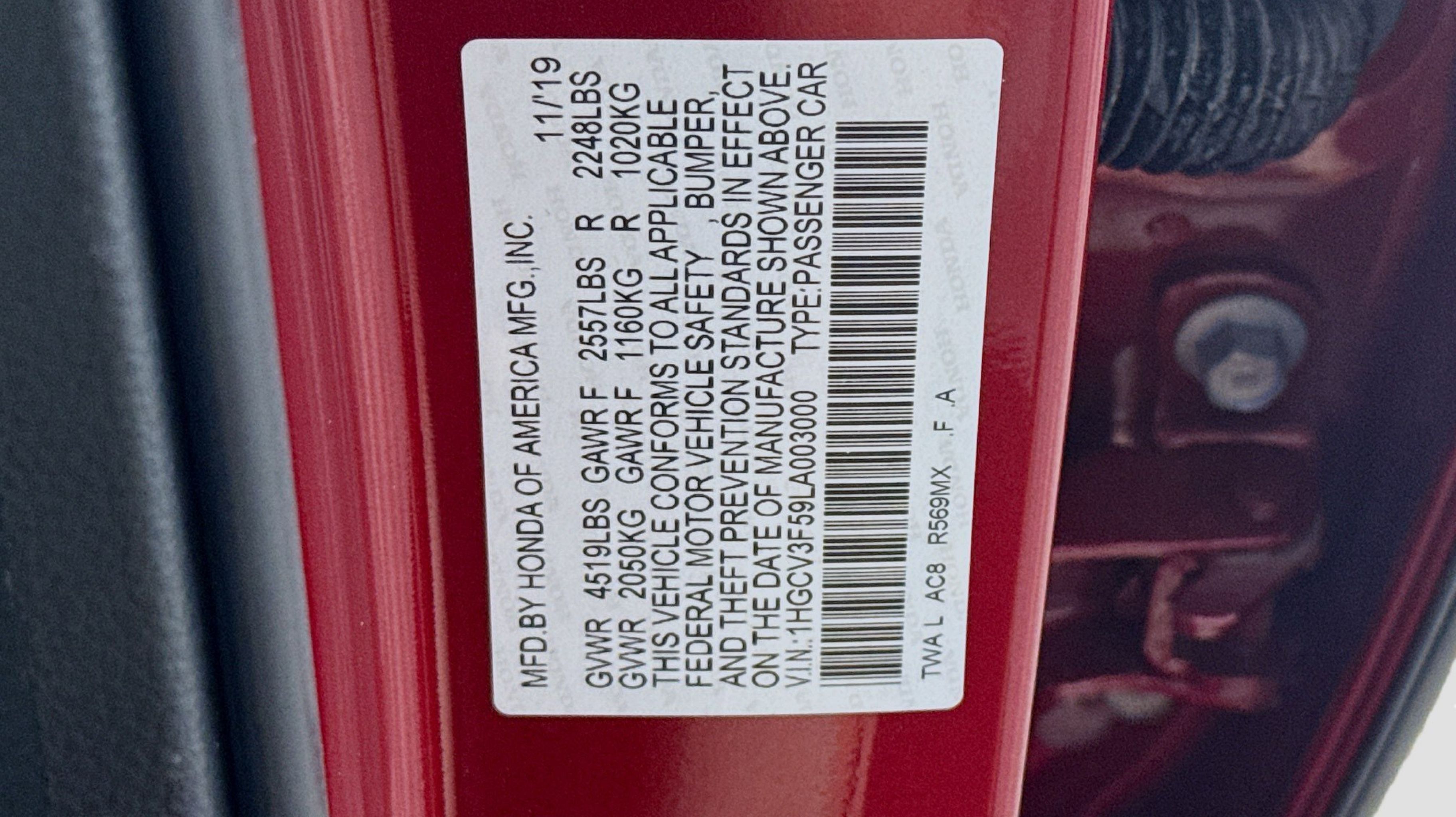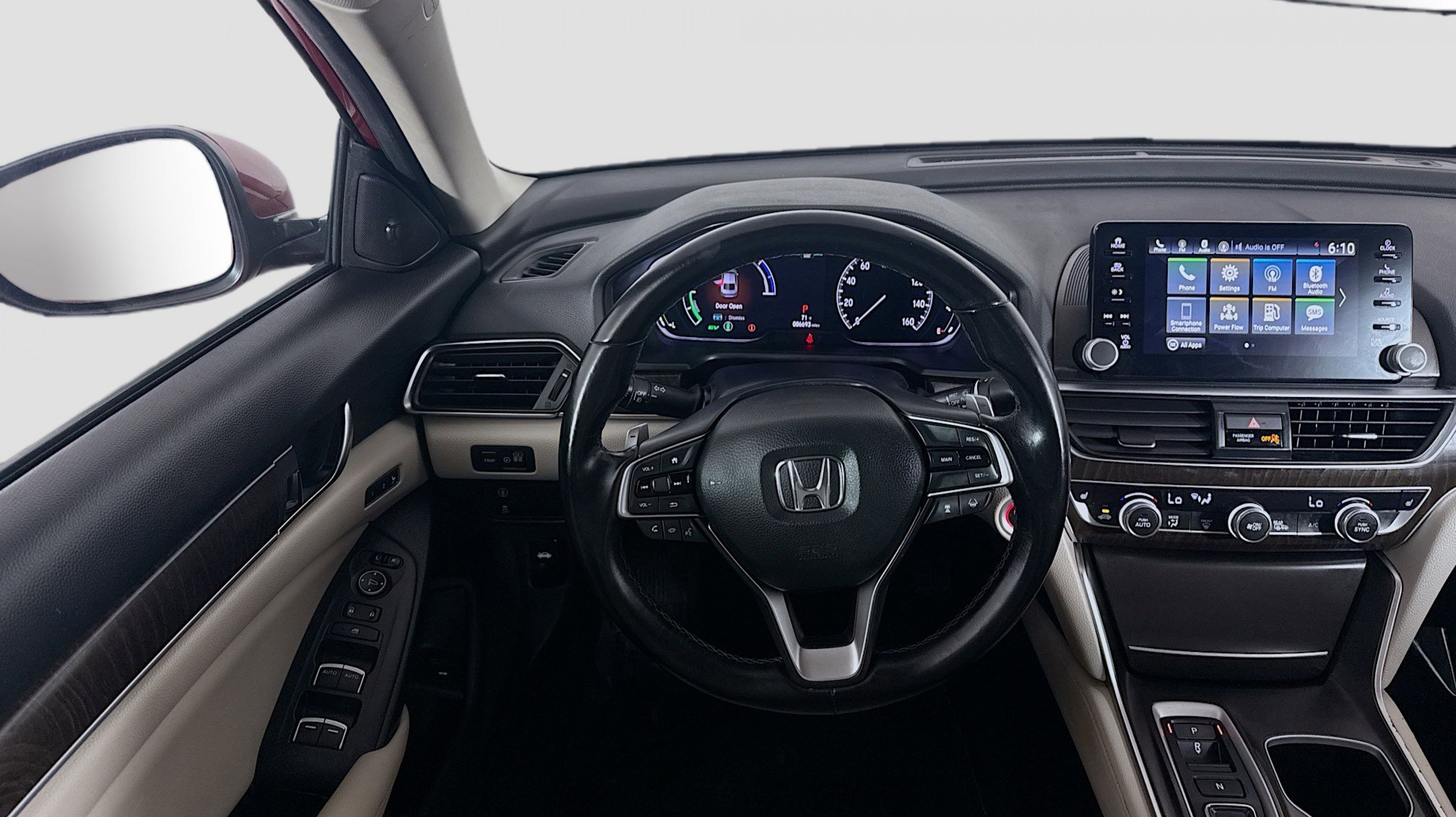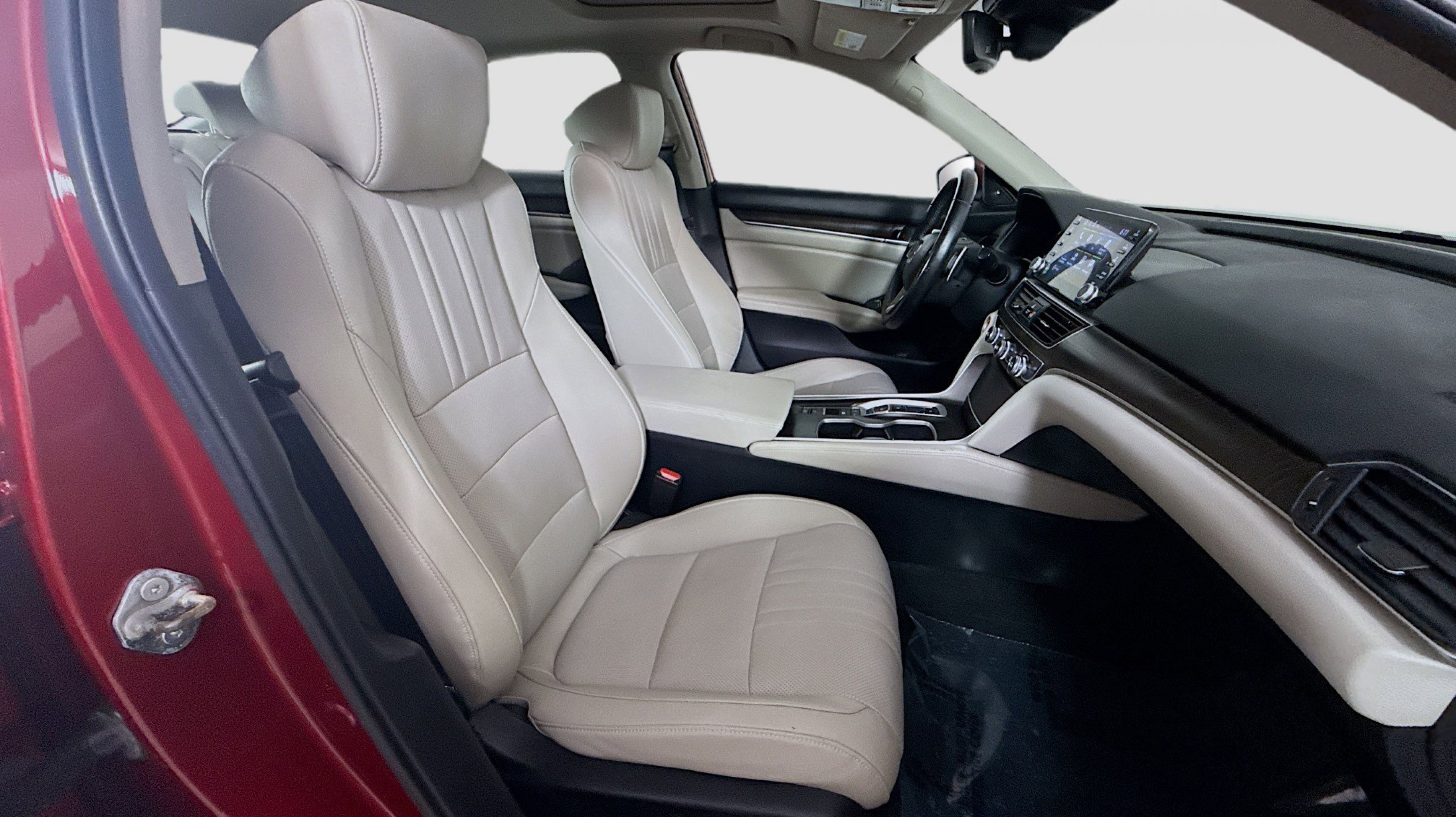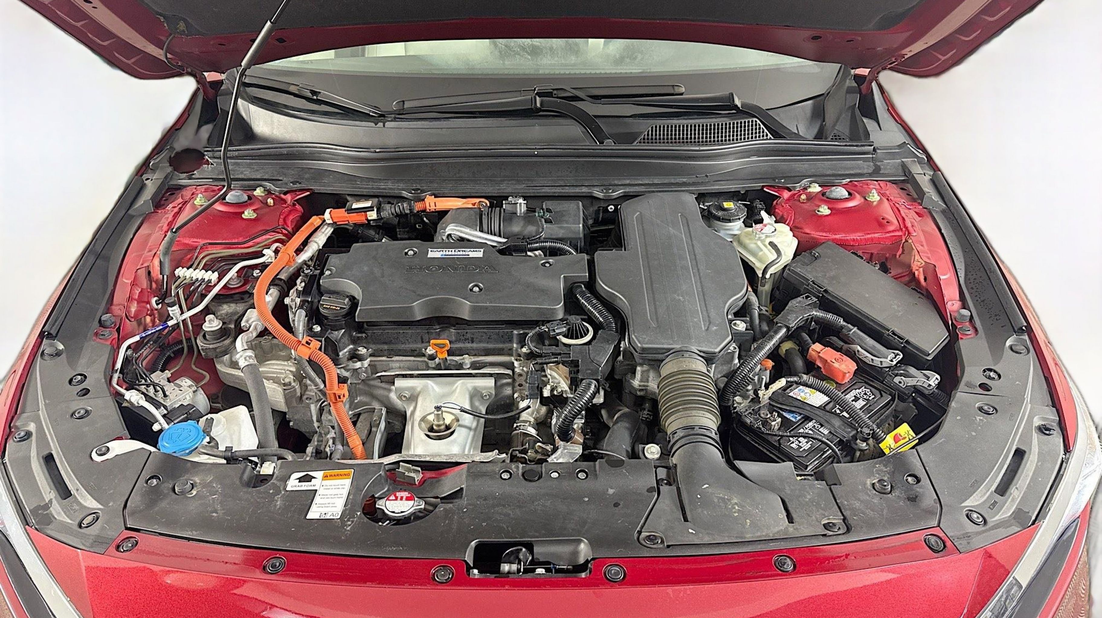 Radiant Red Metallic 2020 Honda Accord Hybrid EX-L FWD eCVT 2.0L 4-Cylinder DOHC 16V i-VTEC 2.0L 4-Cylinder DOHC 16V i-VTEC, 10 Speakers, 17 Machine-Finished Alloy Wheels, 4-Wheel Disc Brakes, ABS brakes, Adaptive Cruise Control: Adaptive Cruise Control (ACC) with Low-Speed Follow, Air Conditioning, Alloy wheels, AM/FM radio: SiriusXM, Apple CarPlay/Android Auto, Auto High-beam Headlights, Auto-dimming Rear-View mirror, Automatic temperature control, Blind Spot Information (BSI) System warning, Brake assist, Bumpers: body-color, Delay-off headlights, Driver door bin, Driver vanity mirror, Dual front impact airbags, Dual front side impact airbags, Electronic Stability Control, Emergency communication system: HondaLink, Exterior Parking Camera Rear, Forward collision: Collision Mitigation Braking System (CMBS) + FCW mitigation, Four wheel independent suspension, Front anti-roll bar, Front Bucket Seats, Front Center Armrest, Front dual zone A/C, Front fog lights, Front reading lights, Fully automatic headlights, Garage door transmitter: HomeLink, Heated door mirrors, Heated Front Bucket Seats, Heated front seats, Illuminated entry, Knee airbag, Leather steering wheel, Leather-Trimmed Seats, Low tire pressure warning, Memory seat, Occupant sensing airbag, Outside temperature display, Overhead airbag, Overhead console, Panic alarm, PANORAMA SUNROOF, Passenger door bin, Passenger vanity mirror, Power door mirrors, Power driver seat, Power passenger seat, Power steering, Power windows, Radio data system, Radio: 450-Watt AM/FM/HD Premium Audio System, Rear anti-roll bar, Rear seat center armrest, Rear window defroster, Remote keyless entry, Security system, Speed control, Speed-sensing steering, Speed-Sensitive Wipers, Split folding rear seat, Steering wheel mounted audio controls, Telescoping steering wheel, Tilt steering wheel, Traction control, Trip computer, Turn signal indicator mirrors, Variably intermittent wipers, 2.0L 4-Cylinder DOHC 16V i-VTEC.