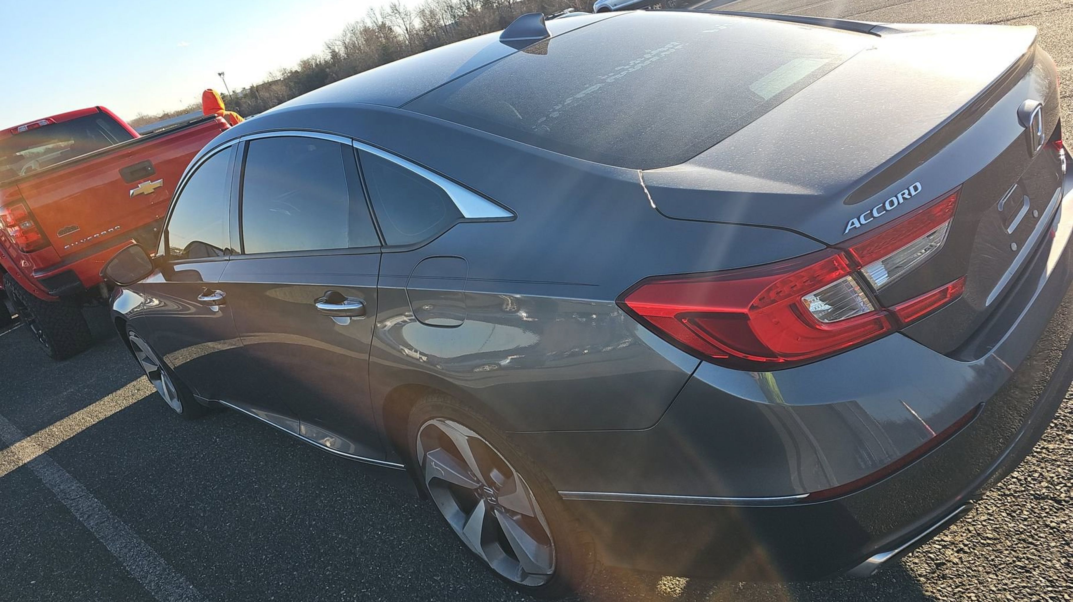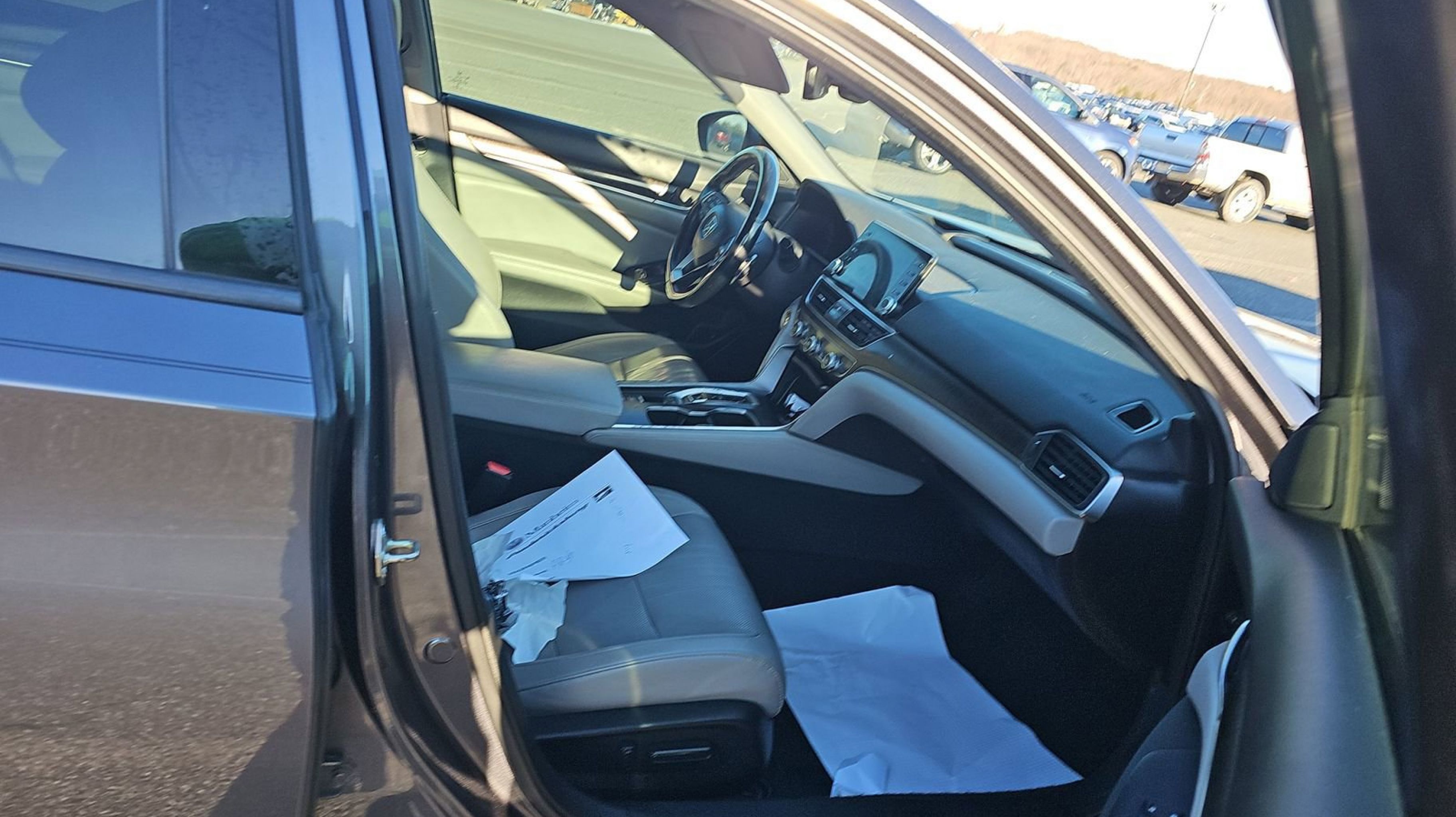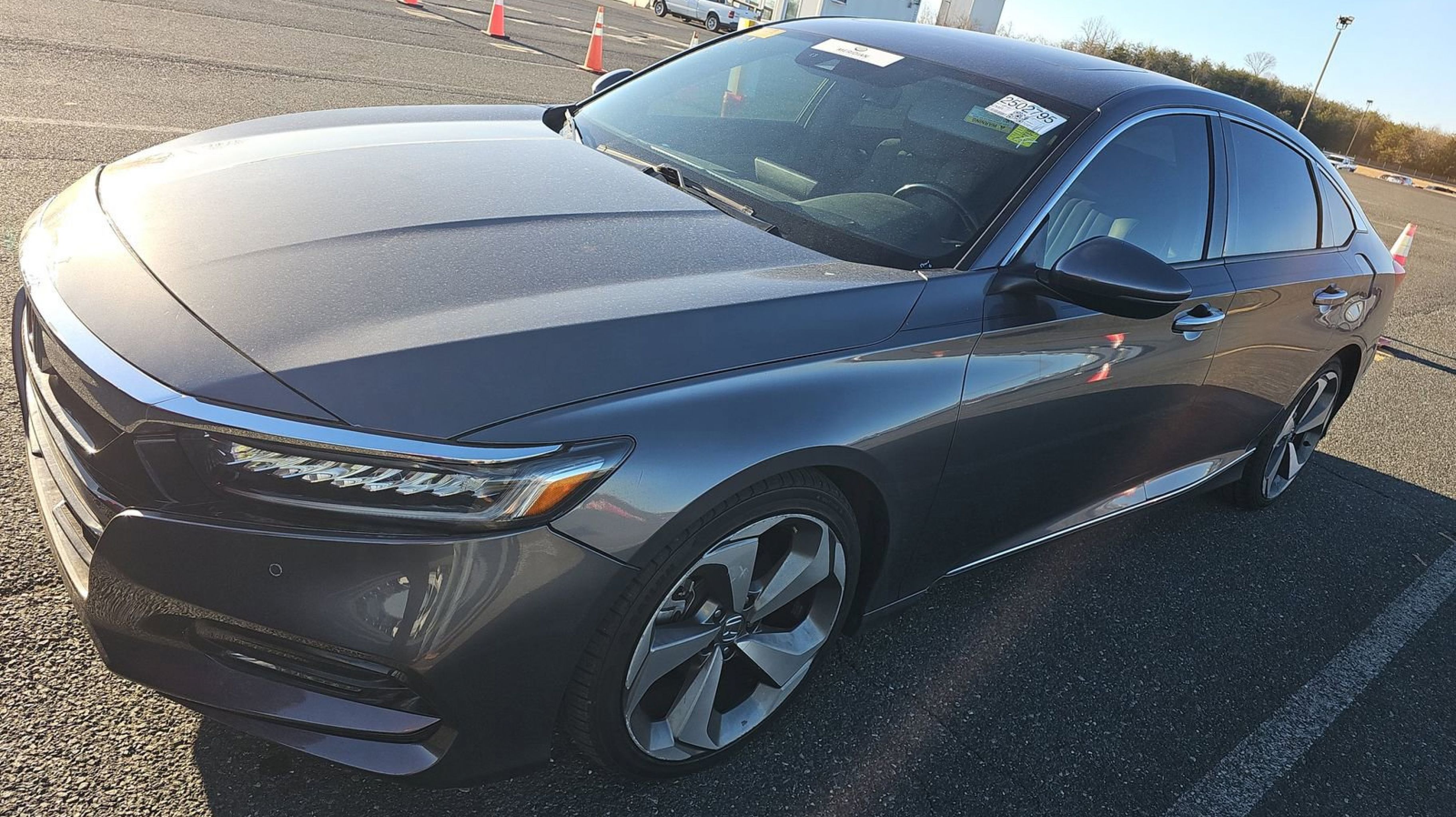 Modern Steel Metallic 2020 Honda Accord Touring 2.0T FWD 10-Speed Automatic I4 DOHC 16V Turbocharged Black w/Leather-Trimmed Seats, 10 Speakers, 4-Wheel Disc Brakes, ABS brakes, Adaptive Cruise Control: Adaptive Cruise Control (ACC) with Low-Speed Follow, Adaptive suspension, Air Conditioning, Alloy wheels, AM/FM radio: SiriusXM, Apple CarPlay/Android Auto, Auto High-beam Headlights, Auto-dimming Rear-View mirror, Automatic temperature control, Blind Spot Information (BSI) System warning, Brake assist, Bumpers: body-color, Compass, Delay-off headlights, Driver door bin, Driver vanity mirror, Dual front impact airbags, Dual front side impact airbags, Electronic Stability Control, Emergency communication system: HondaLink, Exterior Parking Camera Rear, Forward collision: Collision Mitigation Braking System (CMBS) + FCW mitigation, Four wheel independent suspension, Front anti-roll bar, Front Bucket Seats, Front Center Armrest, Front dual zone A/C, Front fog lights, Front reading lights, Fully automatic headlights, Garage door transmitter: HomeLink, Heads-Up Display, Heated & Ventilated Front Bucket Seats, Heated door mirrors, Heated front seats, Heated rear seats, Illuminated entry, Knee airbag, Lane Departure Warning System, Leather Shift Knob, Leather steering wheel, Leather-Trimmed Seats, Low tire pressure warning, Memory seat, Navigation System, Occupant sensing airbag, Outside temperature display, Overhead airbag, Overhead console, Panic alarm, PANORAMA SUNROOF, Passenger door bin, Passenger vanity mirror, Power door mirrors, Power driver seat, Power passenger seat, Power steering, Power windows, Radio data system, Radio: 450-Watt AM/FM/HD Premium Audio System, Rain sensing wipers, Rear anti-roll bar, Rear seat center armrest, Rear window defroster, Remote keyless entry, Security system, Speed control, Speed-sensing steering, Speed-Sensitive Wipers, Split folding rear seat, Steering wheel mounted audio controls, Tachometer, Telescoping steering wheel, Tilt steering wheel, Traction control, Trip computer, Turn signal indicator mirrors, Variably intermittent wipers, Ventilated front seats, Wheels: 19 Machine-Finished Alloy w/Gray Inserts, Black w/Leather-Trimmed Seats.