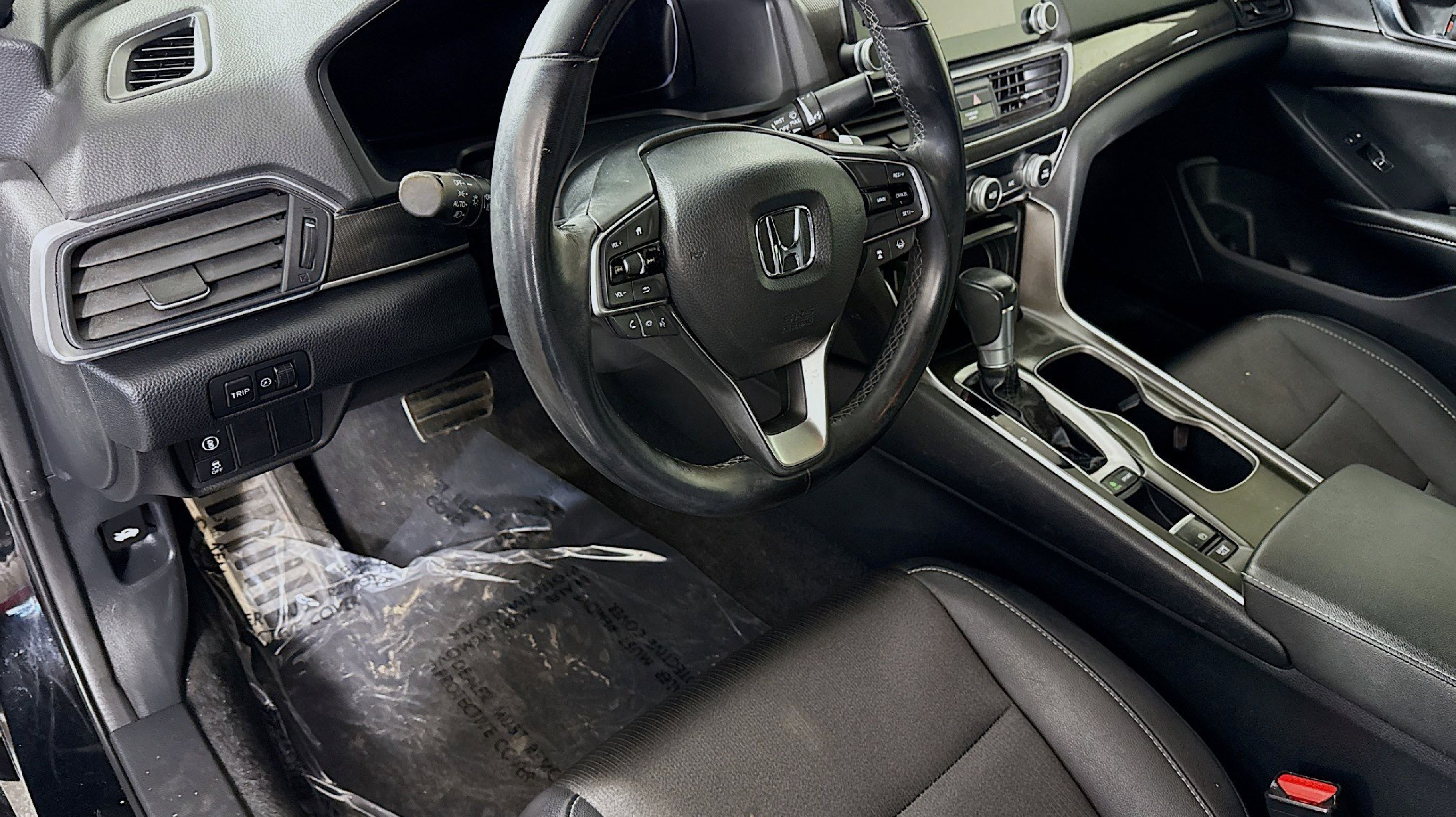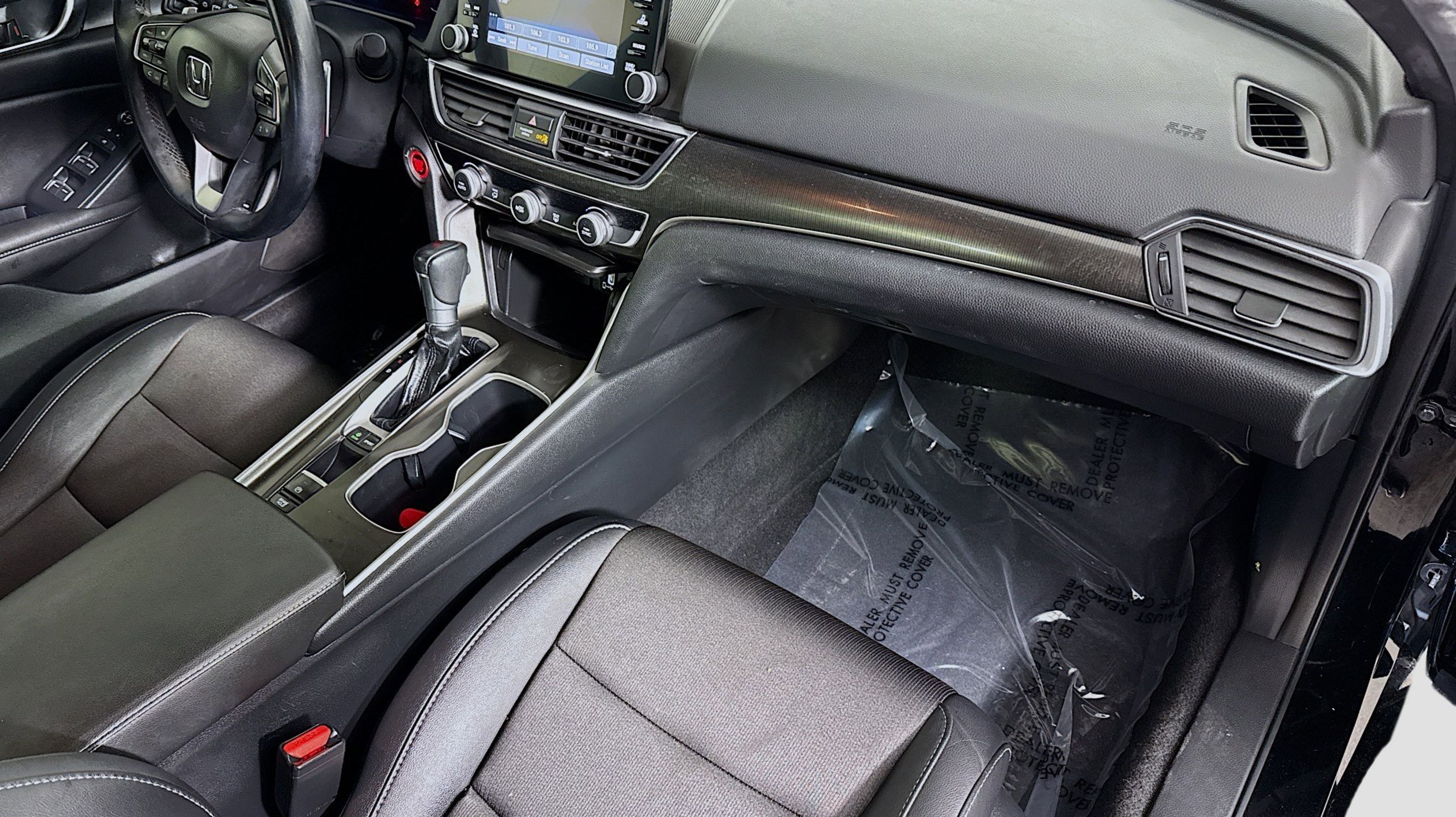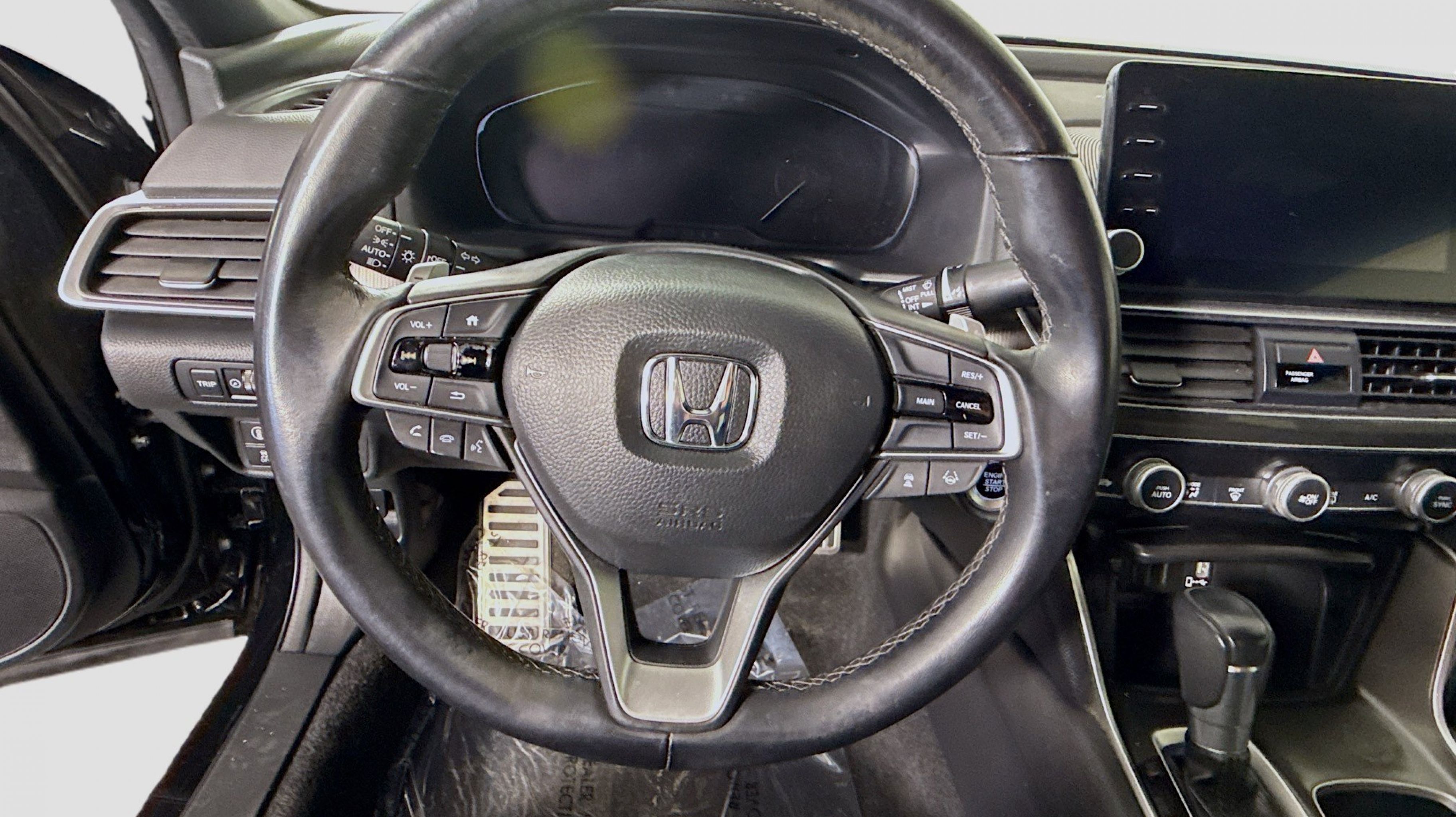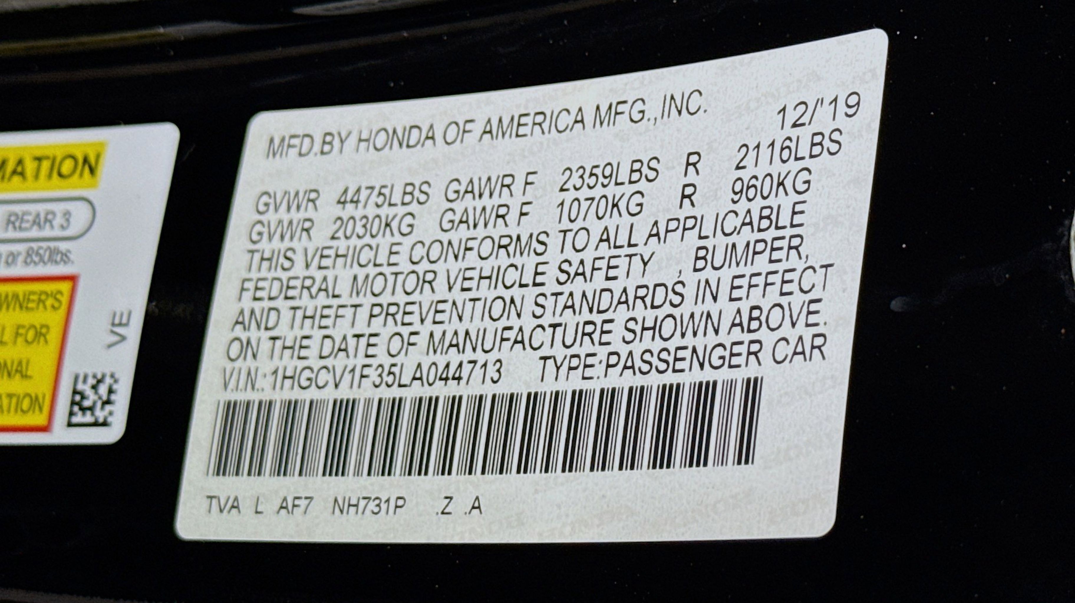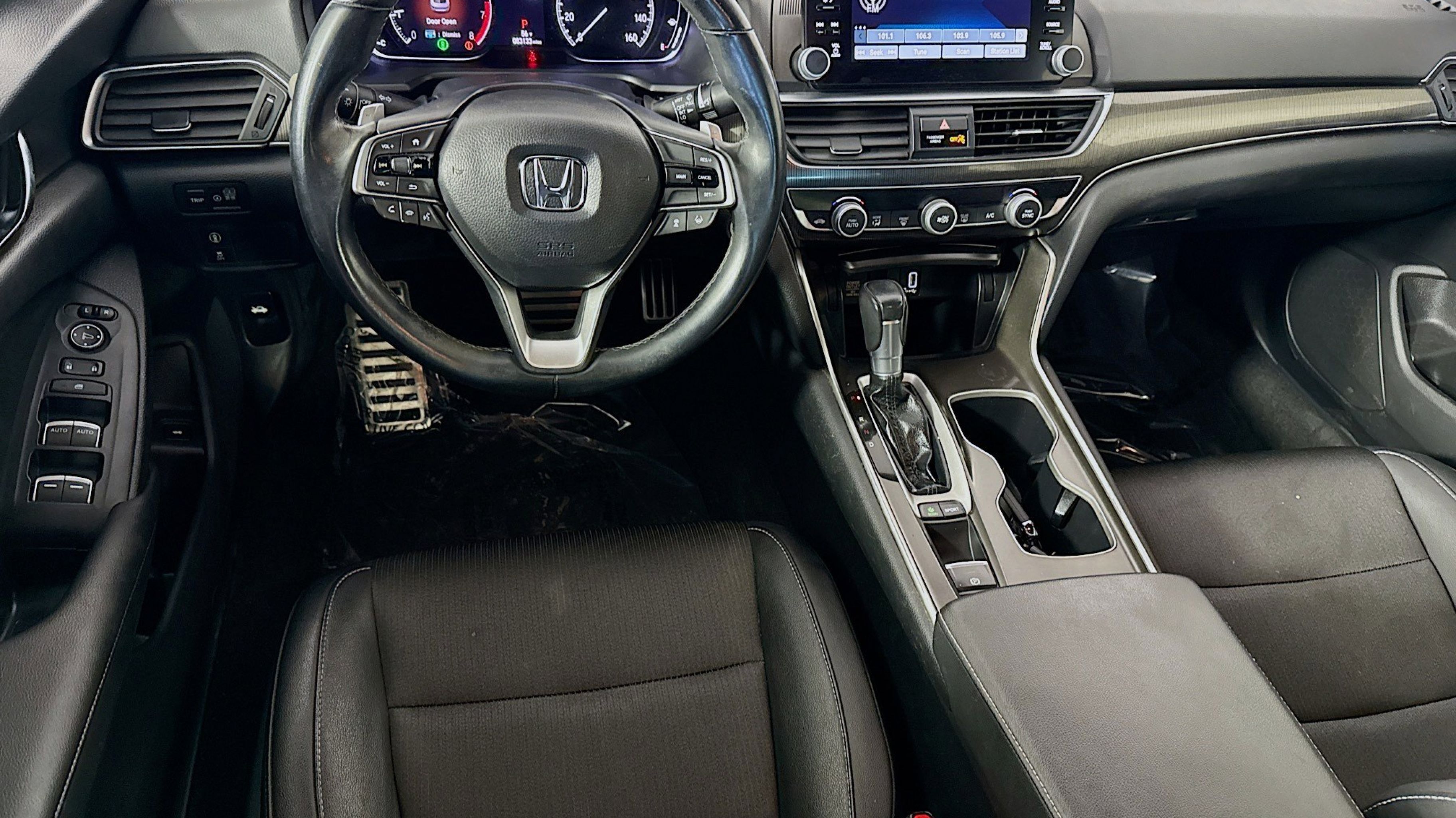 Black w/Cloth Seat Trim, 4-Wheel Disc Brakes, 8 Speakers, ABS brakes, Adaptive Cruise Control: Adaptive Cruise Control (ACC) with Low-Speed Follow, Air Conditioning, Alloy wheels, AM/FM radio, Apple CarPlay/Android Auto, Auto High-beam Headlights, Automatic temperature control, Brake assist, Bumpers: body-color, Cloth Seat Trim, Delay-off headlights, Driver door bin, Driver vanity mirror, Dual front impact airbags, Dual front side impact airbags, Electronic Stability Control, Emergency communication system: HondaLink, Exterior Parking Camera Rear, Forward collision: Collision Mitigation Braking System (CMBS) + FCW mitigation, Four wheel independent suspension, Front anti-roll bar, Front Bucket Seats, Front Center Armrest, Front dual zone A/C, Front fog lights, Front reading lights, Fully automatic headlights, Illuminated entry, Knee airbag, Lane Departure Warning System, Leather Shift Knob, Leather steering wheel, Low tire pressure warning, Occupant sensing airbag, Outside temperature display, Overhead airbag, Overhead console, Panic alarm, Passenger door bin, Passenger vanity mirror, Power door mirrors, Power driver seat, Power steering, Power windows, Radio data system, Radio: 180-Watt AM/FM Audio System, Rear anti-roll bar, Rear seat center armrest, Rear window defroster, Remote keyless entry, Security system, Speed control, Speed-sensing steering, Speed-Sensitive Wipers, Split folding rear seat, Spoiler, Steering wheel mounted audio controls, Tachometer, Telescoping steering wheel, Tilt steering wheel, Traction control, Trip computer, Variably intermittent wipers, Wheels: 19 Machine-Finished Alloy w/Black Inserts, Black w/Cloth Seat Trim.