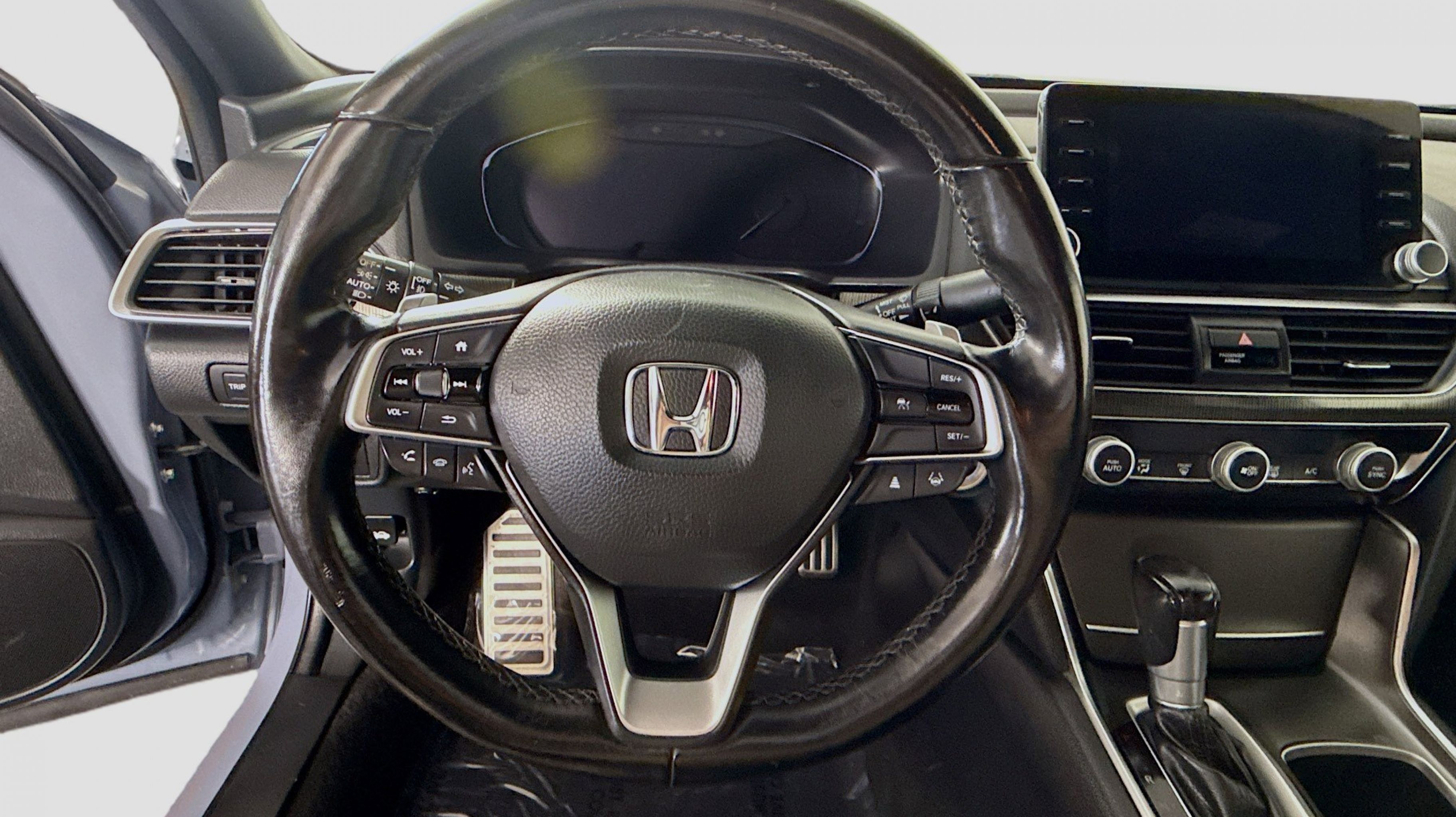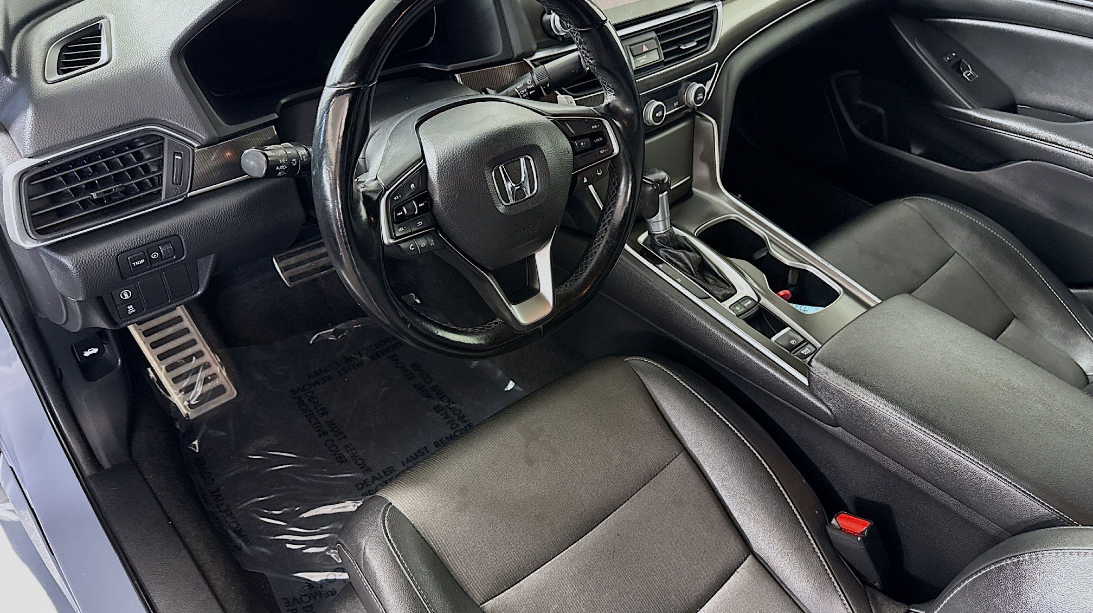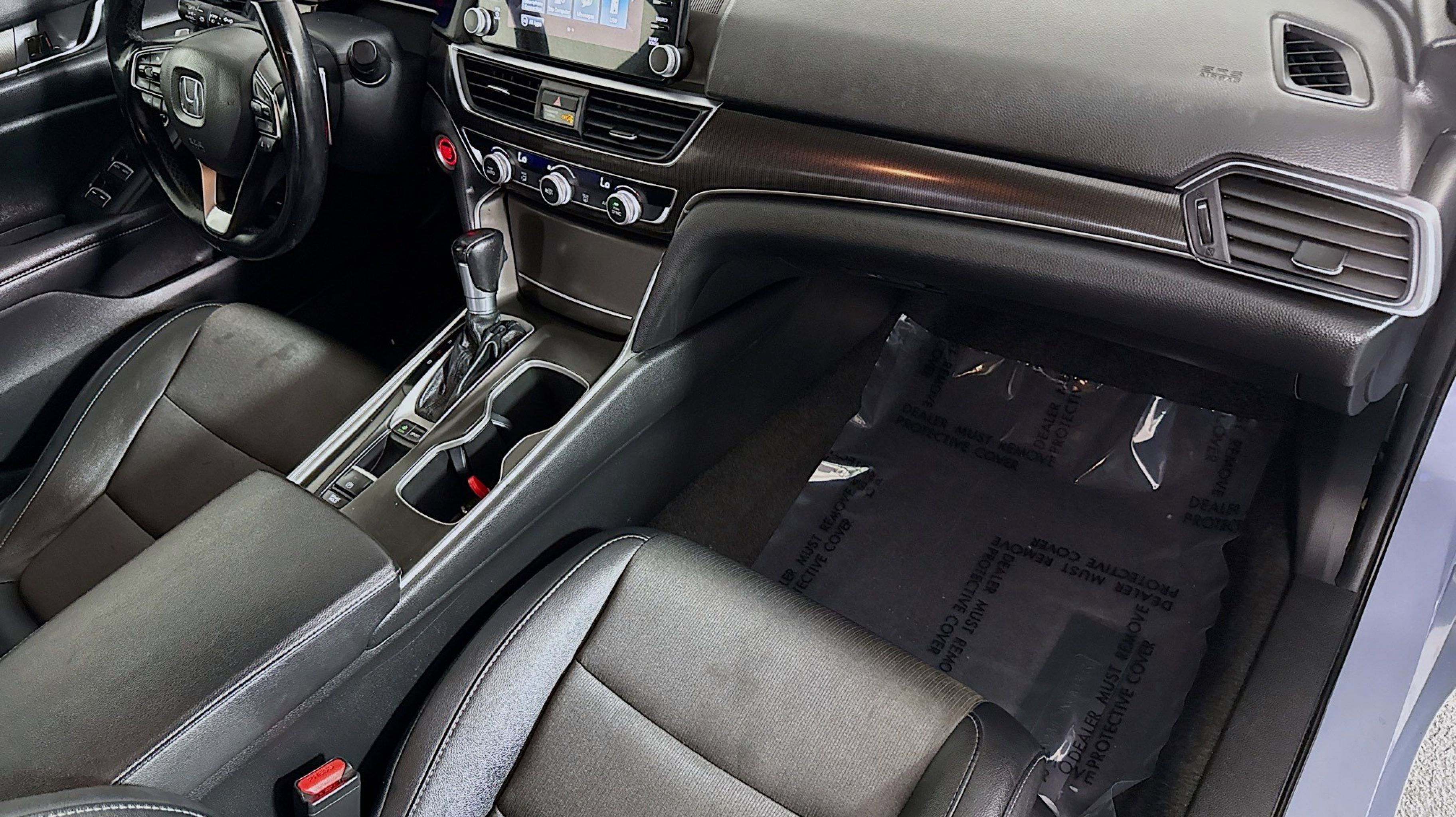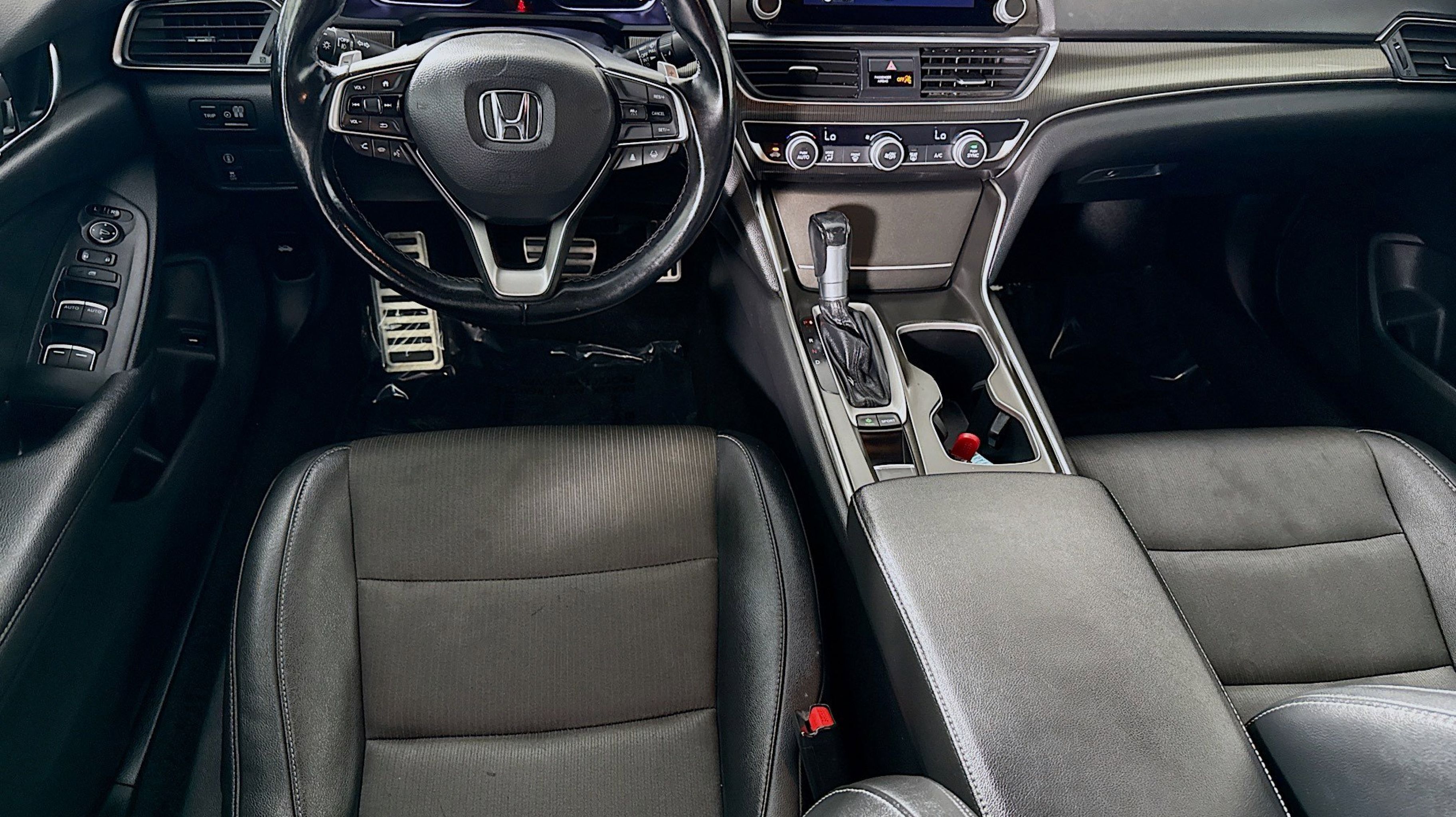 Black w/Cloth Seat Trim, 4-Wheel Disc Brakes, 8 Speakers, ABS brakes, Adaptive Cruise Control: Adaptive Cruise Control (ACC) with Low-Speed Follow, Air Conditioning, Alloy wheels, AM/FM radio, Apple CarPlay/Android Auto, Auto High-beam Headlights, Automatic temperature control, Brake assist, Bumpers: body-color, Cloth Seat Trim, Delay-off headlights, Driver door bin, Driver vanity mirror, Dual front impact airbags, Dual front side impact airbags, Electronic Stability Control, Emergency communication system: HondaLink, Exterior Parking Camera Rear, Forward collision: Collision Mitigation Braking System (CMBS) + FCW mitigation, Four wheel independent suspension, Front anti-roll bar, Front Bucket Seats, Front Center Armrest, Front dual zone A/C, Front fog lights, Front reading lights, Fully automatic headlights, Illuminated entry, Knee airbag, Lane Departure Warning System, Leather Shift Knob, Leather steering wheel, Low tire pressure warning, Occupant sensing airbag, Outside temperature display, Overhead airbag, Overhead console, Panic alarm, Passenger door bin, Passenger vanity mirror, Power door mirrors, Power driver seat, Power steering, Power windows, Radio data system, Radio: 180-Watt AM/FM Audio System, Rear anti-roll bar, Rear seat center armrest, Rear window defroster, Remote keyless entry, Security system, Speed control, Speed-sensing steering, Speed-Sensitive Wipers, Split folding rear seat, Spoiler, Steering wheel mounted audio controls, Tachometer, Telescoping steering wheel, Tilt steering wheel, Traction control, Trip computer, Variably intermittent wipers, Wheels: 19 Machine-Finished Alloy w/Black Inserts, Black w/Cloth Seat Trim. Odometer is 20965 miles below market average!