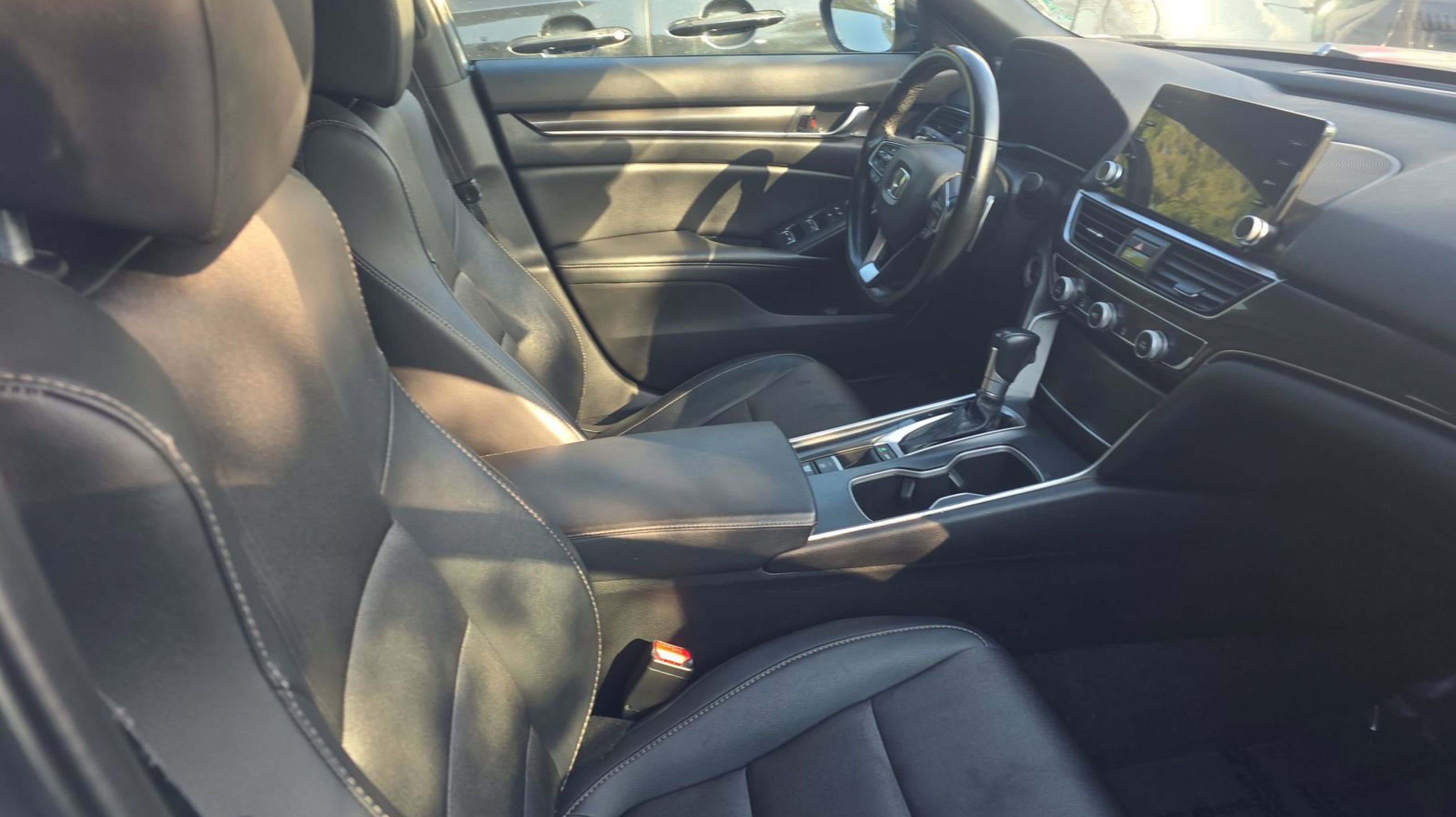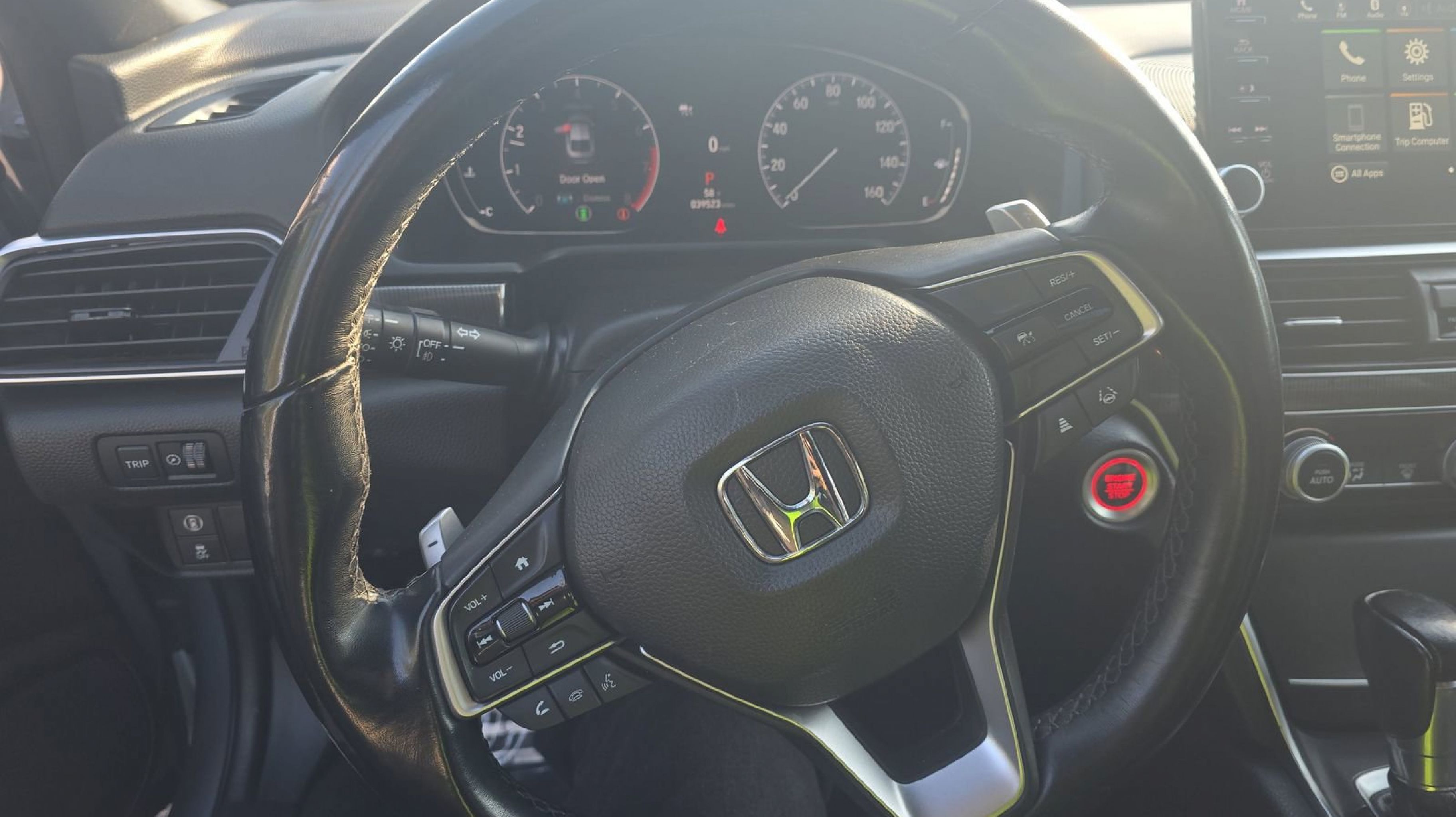 Black w/Cloth Seat Trim, 4-Wheel Disc Brakes, 8 Speakers, ABS brakes, Adaptive Cruise Control: Adaptive Cruise Control (ACC) with Low-Speed Follow, Air Conditioning, Alloy wheels, AM/FM radio, Apple CarPlay/Android Auto, Auto High-beam Headlights, Automatic temperature control, Brake assist, Bumpers: body-color, Cloth Seat Trim, Delay-off headlights, Driver door bin, Driver vanity mirror, Dual front impact airbags, Dual front side impact airbags, Electronic Stability Control, Emergency communication system: HondaLink, Exterior Parking Camera Rear, Forward collision: Collision Mitigation Braking System (CMBS) + FCW mitigation, Four wheel independent suspension, Front anti-roll bar, Front Bucket Seats, Front Center Armrest, Front dual zone A/C, Front fog lights, Front reading lights, Fully automatic headlights, Illuminated entry, Knee airbag, Lane Departure Warning System, Leather Shift Knob, Leather steering wheel, Low tire pressure warning, Occupant sensing airbag, Outside temperature display, Overhead airbag, Overhead console, Panic alarm, Passenger door bin, Passenger vanity mirror, Power door mirrors, Power driver seat, Power steering, Power windows, Radio data system, Radio: 180-Watt AM/FM Audio System, Rear anti-roll bar, Rear seat center armrest, Rear window defroster, Remote keyless entry, Security system, Speed control, Speed-sensing steering, Speed-Sensitive Wipers, Split folding rear seat, Spoiler, Steering wheel mounted audio controls, Tachometer, Telescoping steering wheel, Tilt steering wheel, Traction control, Trip computer, Variably intermittent wipers, Wheels: 19 Machine-Finished Alloy w/Black Inserts, Black w/Cloth Seat Trim. Odometer is 33270 miles below market average!