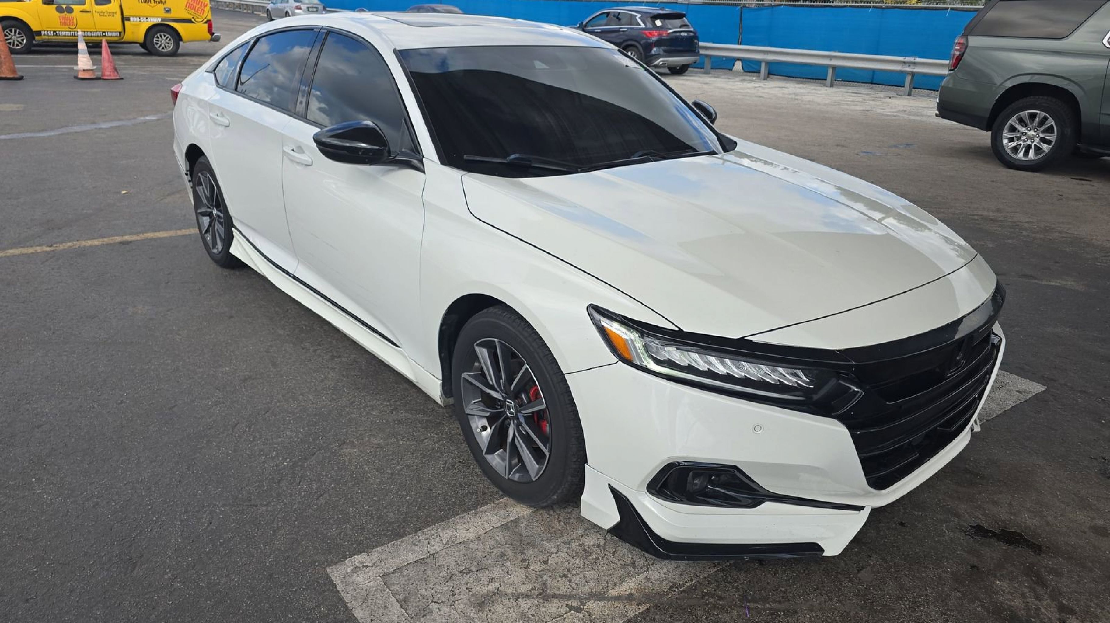 Platinum White Pearl 2021 Honda Accord EX-L FWD CVT 1.5T I4 DOHC 16V Turbocharged VTEC Black w/Leather-Trimmed Seats, 10 Speakers, 17 Machine-Finished Alloy Wheels, 4-Wheel Disc Brakes, ABS brakes, Adaptive Cruise Control: Adaptive Cruise Control (ACC) with Low-Speed Follow, Air Conditioning, Alloy wheels, AM/FM radio: SiriusXM, Apple CarPlay/Android Auto, Auto High-beam Headlights, Auto-dimming Rear-View mirror, Automatic temperature control, Blind Spot Information (BSI) System warning, Brake assist, Bumpers: body-color, Delay-off headlights, Driver door bin, Driver vanity mirror, Dual front impact airbags, Dual front side impact airbags, Electronic Stability Control, Emergency communication system: HondaLink, Exterior Parking Camera Rear, Forward collision: Collision Mitigation Braking System (CMBS) + FCW mitigation, Four wheel independent suspension, Front anti-roll bar, Front Bucket Seats, Front Center Armrest, Front dual zone A/C, Front fog lights, Front reading lights, Fully automatic headlights, Garage door transmitter: HomeLink, Heated door mirrors, Heated Front Bucket Seats, Heated front seats, Illuminated entry, Knee airbag, Lane Departure Warning System, Leather Shift Knob, Leather steering wheel, Leather-Trimmed Seats, Low tire pressure warning, Memory seat, Occupant sensing airbag, Outside temperature display, Overhead airbag, Overhead console, Panic alarm, PANORAMA SUNROOF, Passenger door bin, Passenger vanity mirror, Power door mirrors, Power driver seat, Power passenger seat, Power steering, Power windows, Radio data system, Radio: 450-Watt AM/FM/HD Premium Audio System, Rear anti-roll bar, Rear seat center armrest, Rear window defroster, Remote keyless entry, Security system, Speed control, Speed-sensing steering, Speed-Sensitive Wipers, Split folding rear seat, Steering wheel mounted audio controls, Tachometer, Telescoping steering wheel, Tilt steering wheel, Traction control, Trip computer, Turn signal indicator mirrors, Variably intermittent wipers, Black w/Leather-Trimmed Seats.