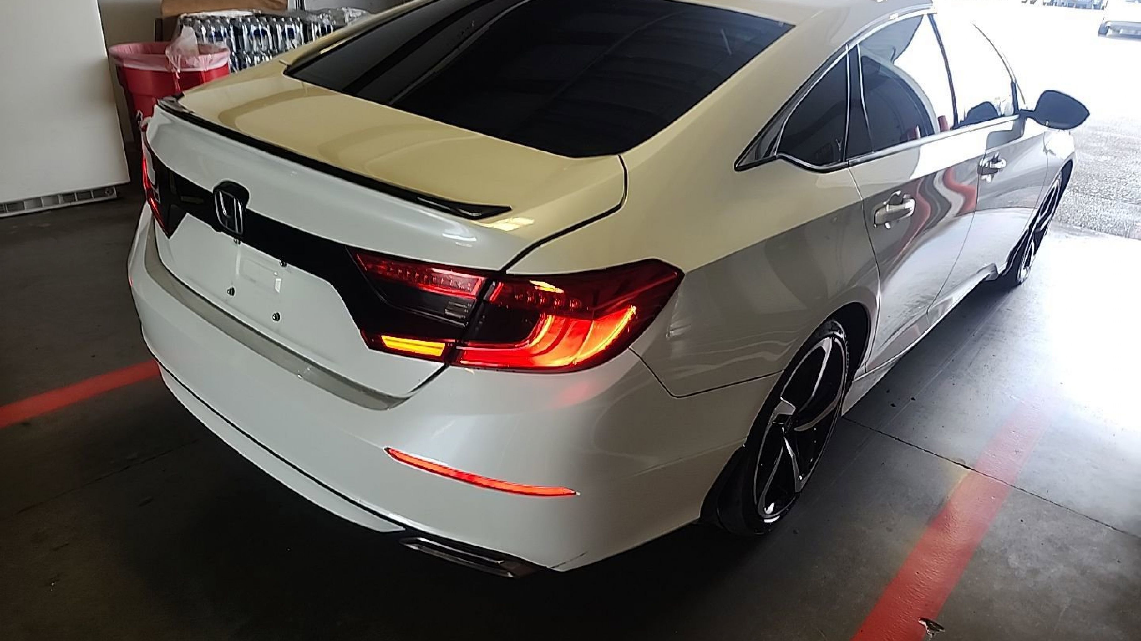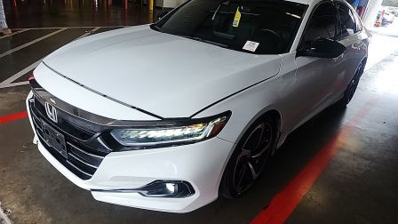 Platinum White Pearl 2022 Honda Accord Sport FWD CVT 1.5T I4 DOHC 16V Turbocharged VTEC Black w/Perforated Leather Seat Trim, 4-Wheel Disc Brakes, 8 Speakers, ABS brakes, Adaptive Cruise Control: Adaptive Cruise Control (ACC) with Low-Speed Follow, Air Conditioning, Alloy wheels, AM/FM radio, Apple CarPlay/Android Auto, Auto High-beam Headlights, Automatic temperature control, Brake assist, Bumpers: body-color, Delay-off headlights, Driver door bin, Driver vanity mirror, Dual front impact airbags, Dual front side impact airbags, Electronic Stability Control, Emergency communication system: HondaLink, Exterior Parking Camera Rear, Fabric w/Synthetic Leather Seat Trim, Forward collision: Collision Mitigation Braking System (CMBS) + FCW mitigation, Four wheel independent suspension, Front anti-roll bar, Front Bucket Seats, Front Center Armrest, Front dual zone A/C, Front fog lights, Front reading lights, Fully automatic headlights, Illuminated entry, Knee airbag, Lane Departure Warning System, Leather Shift Knob, Leather steering wheel, Low tire pressure warning, Occupant sensing airbag, Outside temperature display, Overhead airbag, Overhead console, Panic alarm, Passenger door bin, Passenger vanity mirror, Power door mirrors, Power driver seat, Power steering, Power windows, Radio data system, Radio: 180-Watt AM/FM Audio System, Rear anti-roll bar, Rear seat center armrest, Rear window defroster, Remote keyless entry, Security system, Speed control, Speed-sensing steering, Speed-Sensitive Wipers, Split folding rear seat, Spoiler, Steering wheel mounted audio controls, Tachometer, Telescoping steering wheel, Tilt steering wheel, Traction control, Trip computer, Variably intermittent wipers, Wheels: 19 Machine-Finished Alloy w/Black Inserts, Black w/Perforated Leather Seat Trim.