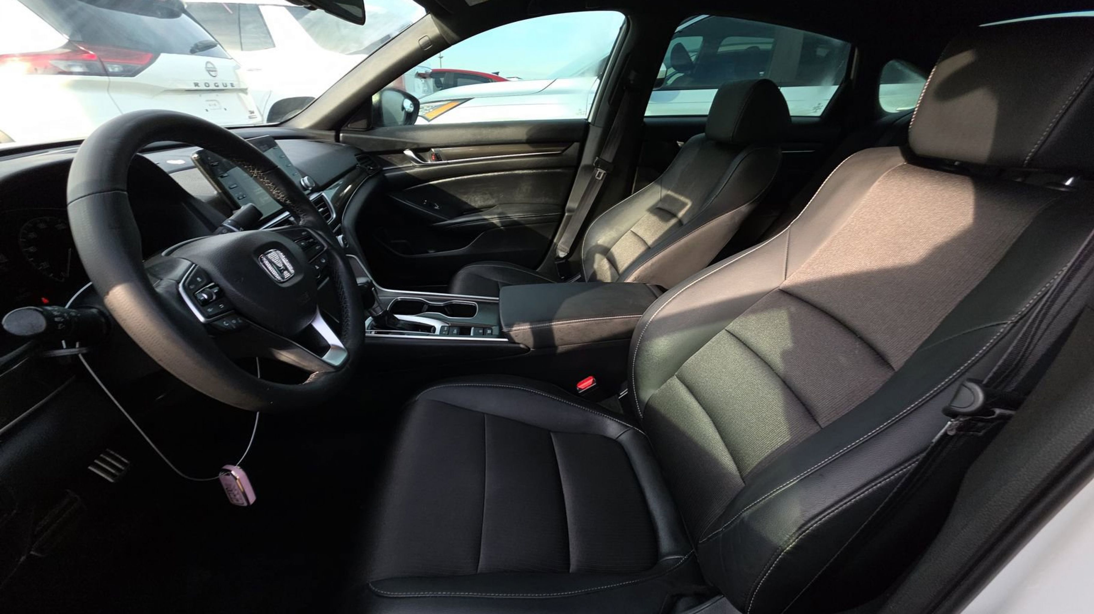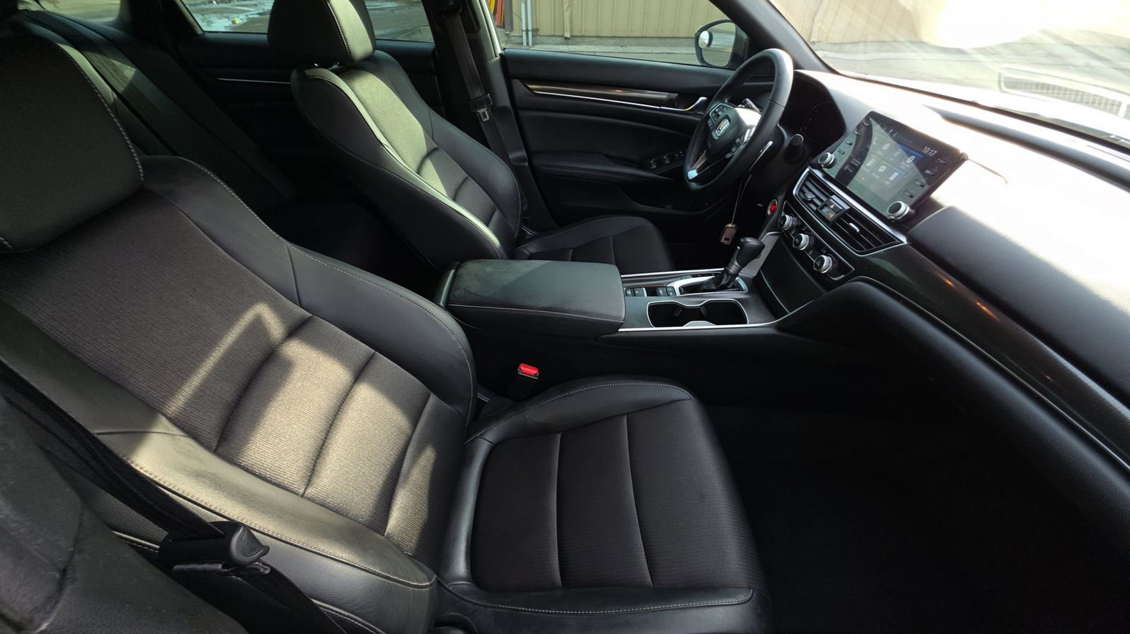 Platinum White Pearl 2022 Honda Accord Sport FWD CVT 1.5T I4 DOHC 16V Turbocharged VTEC Black w/Perforated Leather Seat Trim, 4-Wheel Disc Brakes, 8 Speakers, ABS brakes, Adaptive Cruise Control: Adaptive Cruise Control (ACC) with Low-Speed Follow, Air Conditioning, Alloy wheels, AM/FM radio, Apple CarPlay/Android Auto, Auto High-beam Headlights, Automatic temperature control, Brake assist, Bumpers: body-color, Delay-off headlights, Driver door bin, Driver vanity mirror, Dual front impact airbags, Dual front side impact airbags, Electronic Stability Control, Emergency communication system: HondaLink, Exterior Parking Camera Rear, Fabric w/Synthetic Leather Seat Trim, Forward collision: Collision Mitigation Braking System (CMBS) + FCW mitigation, Four wheel independent suspension, Front anti-roll bar, Front Bucket Seats, Front Center Armrest, Front dual zone A/C, Front fog lights, Front reading lights, Fully automatic headlights, Illuminated entry, Knee airbag, Lane Departure Warning System, Leather Shift Knob, Leather steering wheel, Low tire pressure warning, Occupant sensing airbag, Outside temperature display, Overhead airbag, Overhead console, Panic alarm, Passenger door bin, Passenger vanity mirror, Power door mirrors, Power driver seat, Power steering, Power windows, Radio data system, Radio: 180-Watt AM/FM Audio System, Rear anti-roll bar, Rear seat center armrest, Rear window defroster, Remote keyless entry, Security system, Speed control, Speed-sensing steering, Speed-Sensitive Wipers, Split folding rear seat, Spoiler, Steering wheel mounted audio controls, Tachometer, Telescoping steering wheel, Tilt steering wheel, Traction control, Trip computer, Variably intermittent wipers, Wheels: 19 Machine-Finished Alloy w/Black Inserts, Black w/Perforated Leather Seat Trim.