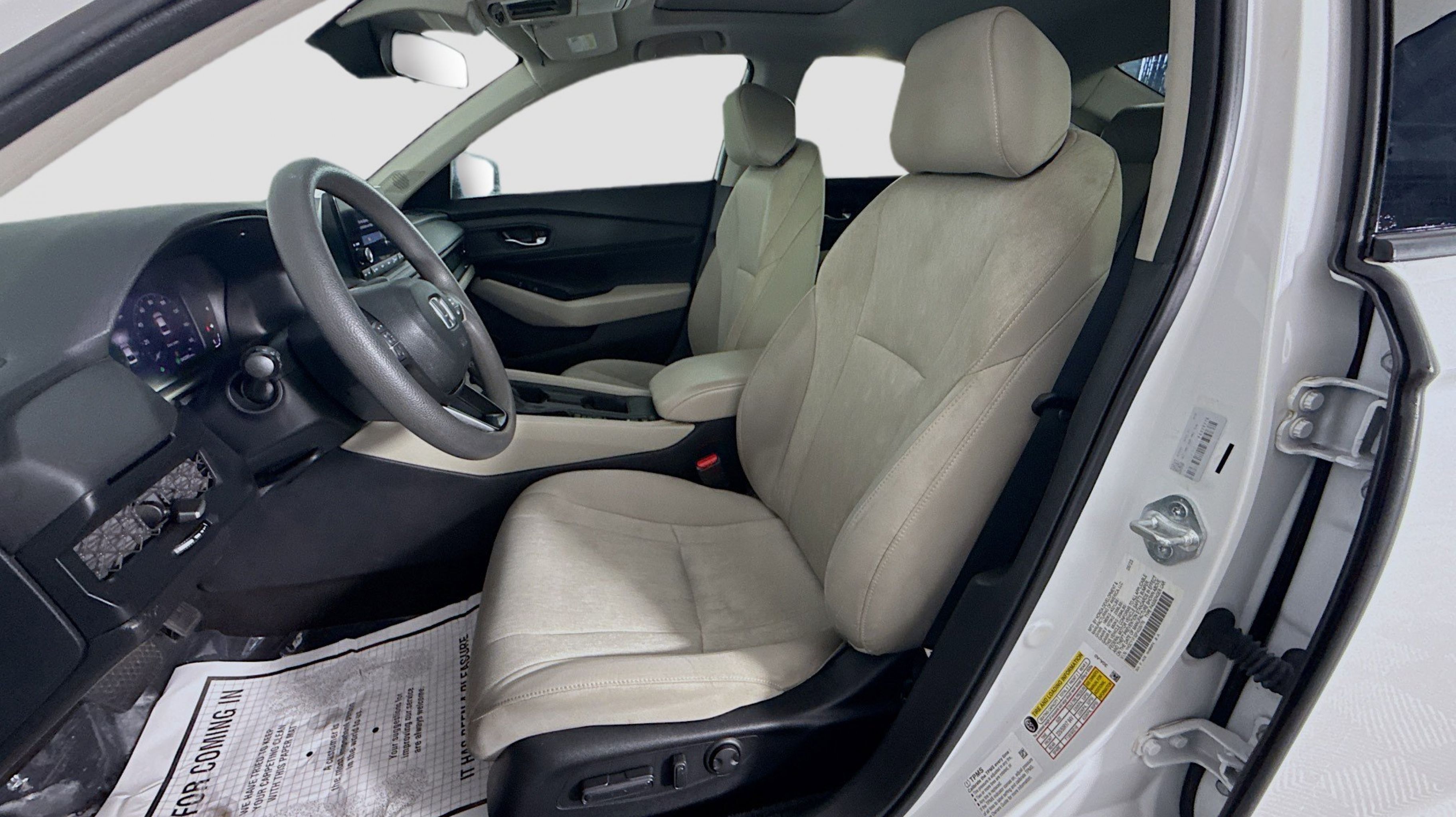 Platinum White Pearl 2023 Honda Accord EX FWD CVT 1.5T I4 DOHC 16V Turbocharged VTEC Gray w/Fabric Seat Trim, 4-Wheel Disc Brakes, 8 Speakers, ABS brakes, Adaptive Cruise Control: Adaptive Cruise Control (ACC) with Low-Speed Follow, Air Conditioning, Alloy wheels, AM/FM radio, Apple CarPlay/Android Auto, Auto High-beam Headlights, Auto-dimming Rear-View mirror, Automatic temperature control, Brake assist, Bumpers: body-color, Compass, Delay-off headlights, Driver door bin, Driver vanity mirror, Dual front impact airbags, Dual front side impact airbags, Electronic Stability Control, Emergency communication system: HondaLink Assist, Exterior Parking Camera Rear, Fabric Seat Trim, Four wheel independent suspension, Front anti-roll bar, Front Bucket Seats, Front Center Armrest, Front dual zone A/C, Front reading lights, Fully automatic headlights, Heated door mirrors, Heated Front Bucket Seats, Heated front seats, Illuminated entry, Knee airbag, Lane departure: Lane Keeping Assist System (LKAS) active, Low tire pressure warning, Occupant sensing airbag, Outside temperature display, Overhead airbag, Overhead console, Panic alarm, PANORAMA SUNROOF, Passenger door bin, Passenger vanity mirror, Power door mirrors, Power driver seat, Power steering, Power windows, Radio data system, Radio: 180-Watt AM/FM Audio System, Rear anti-roll bar, Rear reading lights, Rear seat center armrest, Rear side impact airbag, Rear window defroster, Remote keyless entry, Security system, Speed control, Speed-sensing steering, Speed-Sensitive Wipers, Split folding rear seat, Steering wheel mounted audio controls, Tachometer, Telescoping steering wheel, Tilt steering wheel, Traction control, Trip computer, Variably intermittent wipers, Wheels: 17 x 7.5 Pewter Gray, Gray w/Fabric Seat Trim.