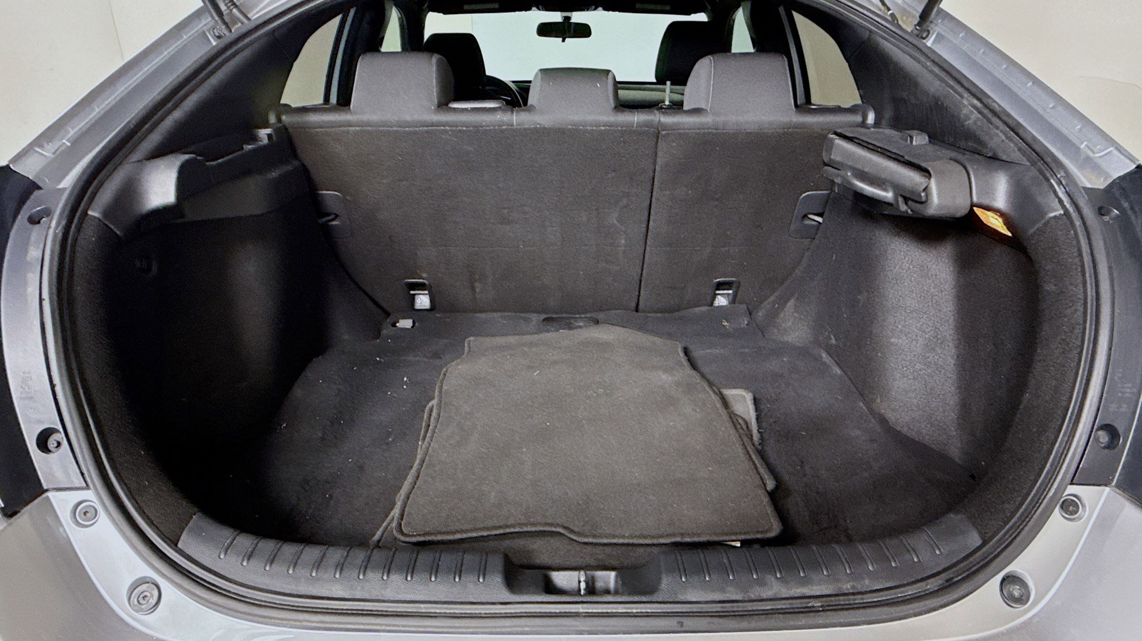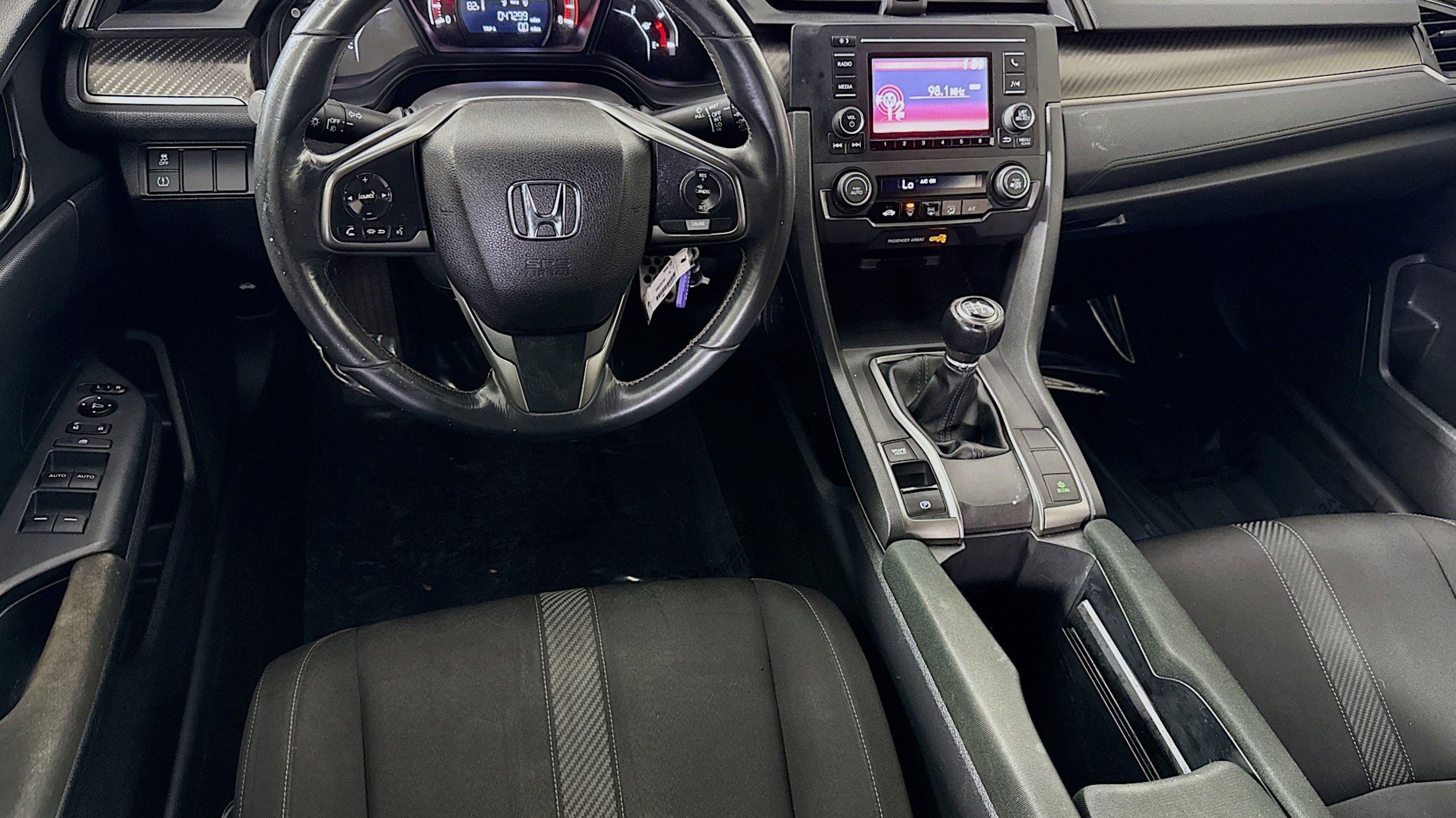 Black w/Cloth Seat Trim, 4 Speakers, 4-Wheel Disc Brakes, ABS brakes, Air Conditioning, Alloy wheels, AM/FM radio, Automatic temperature control, Brake assist, Bumpers: body-color, Compass, Delay-off headlights, Driver door bin, Driver vanity mirror, Dual front impact airbags, Dual front side impact airbags, Electronic Stability Control, Exterior Parking Camera Rear, Fabric Seating Surfaces, Four wheel independent suspension, Front anti-roll bar, Front Bucket Seats, Front Center Armrest, Front fog lights, Front reading lights, Fully automatic headlights, Illuminated entry, Leather Shift Knob, Low tire pressure warning, Occupant sensing airbag, Outside temperature display, Overhead airbag, Panic alarm, Passenger door bin, Passenger vanity mirror, Power door mirrors, Power steering, Power windows, Radio data system, Radio: 160-Watt AM/FM Audio System, Rear anti-roll bar, Rear seat center armrest, Rear window defroster, Rear window wiper, Reclining Front Bucket Seats, Remote keyless entry, Security system, Speed control, Speed-sensing steering, Split folding rear seat, Spoiler, Steering wheel mounted audio controls, Tachometer, Telescoping steering wheel, Tilt steering wheel, Traction control, Trip computer, Black w/Cloth Seat Trim. Odometer is 33814 miles below market average!