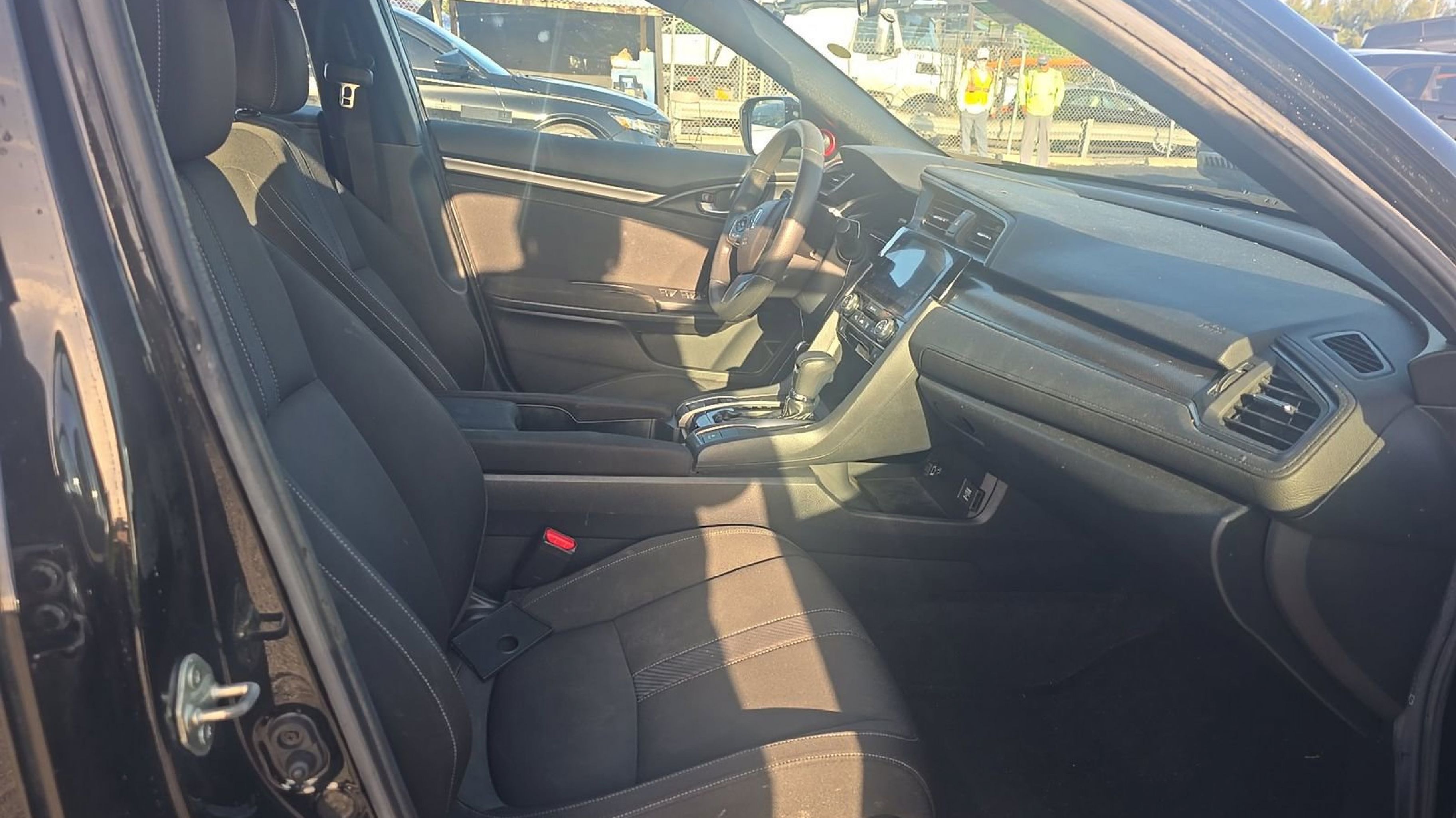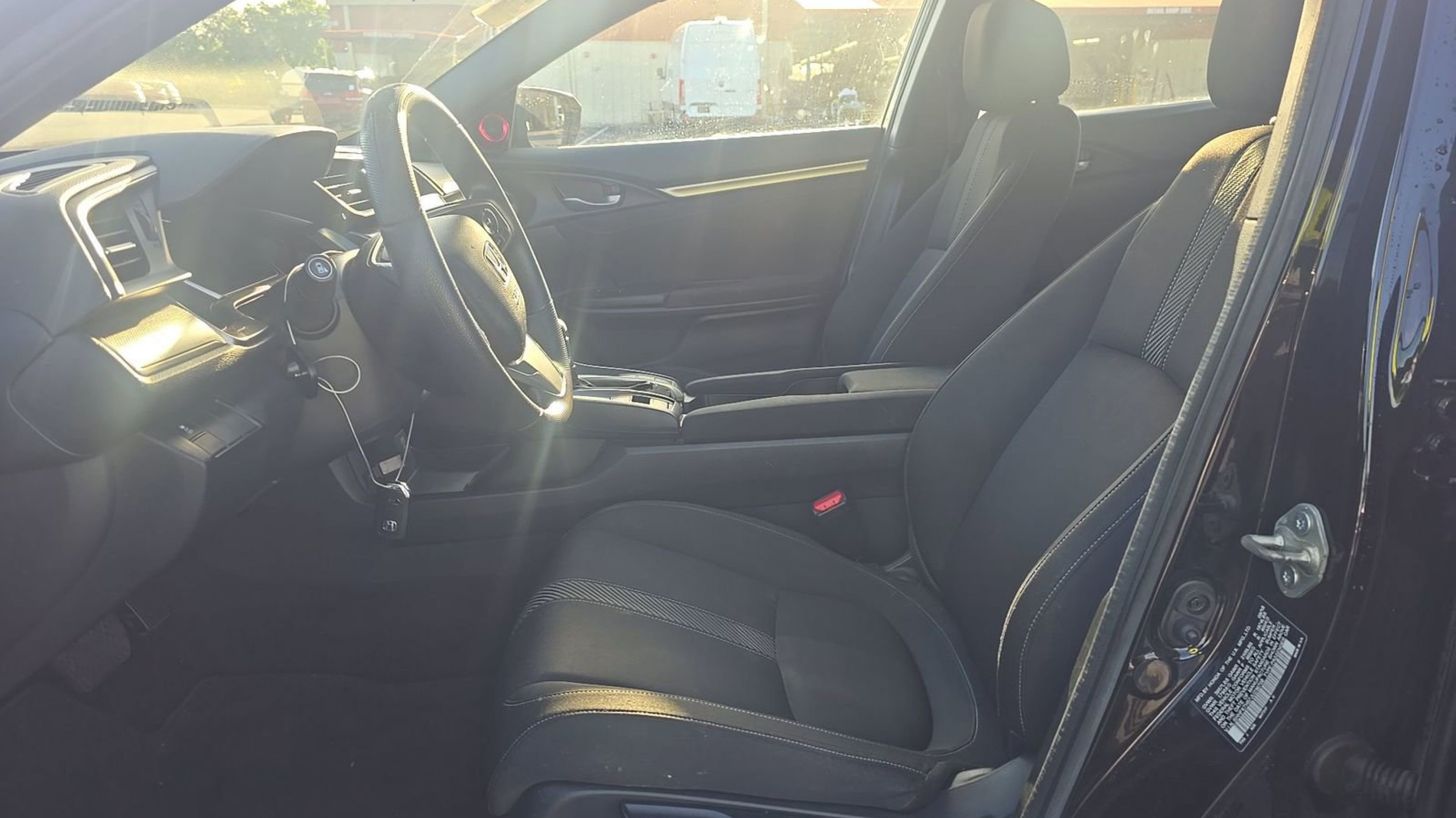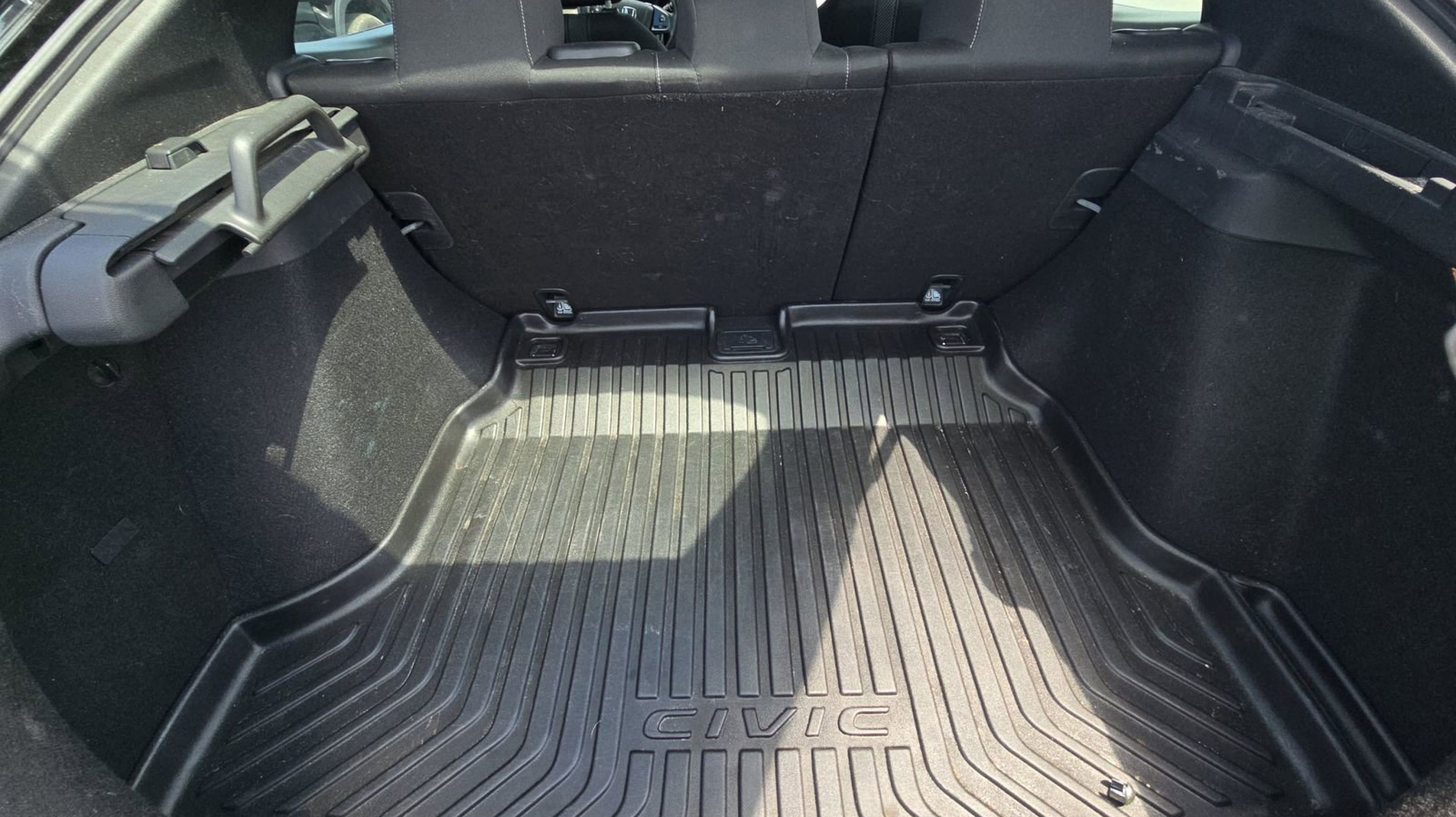 Black w/Cloth Seat Trim, 4-Wheel Disc Brakes, 8 Speakers, ABS brakes, Air Conditioning, Alloy wheels, AM/FM radio: SiriusXM, Apple CarPlay/Android Auto, Automatic temperature control, Brake assist, Bumpers: body-color, Compass, Delay-off headlights, Driver door bin, Driver vanity mirror, Dual front impact airbags, Dual front side impact airbags, Electronic Stability Control, Emergency communication system: HondaLink, Exterior Parking Camera Rear, Fabric Seating Surfaces, Four wheel independent suspension, Front anti-roll bar, Front Bucket Seats, Front Center Armrest, Front dual zone A/C, Front fog lights, Front reading lights, Fully automatic headlights, Heated door mirrors, Illuminated entry, Low tire pressure warning, Occupant sensing airbag, Outside temperature display, Overhead airbag, Panic alarm, Passenger door bin, Passenger vanity mirror, Power door mirrors, Power moonroof, Power steering, Power windows, Radio data system, Radio: 180-Watt AM/FM/HD/SiriusXM Audio System, Rear anti-roll bar, Rear seat center armrest, Rear window defroster, Rear window wiper, Reclining Front Bucket Seats, Remote keyless entry, Security system, Speed control, Speed-sensing steering, Split folding rear seat, Spoiler, Steering wheel mounted audio controls, Tachometer, Telescoping steering wheel, Tilt steering wheel, Traction control, Trip computer, Variably intermittent wipers, Black w/Cloth Seat Trim.