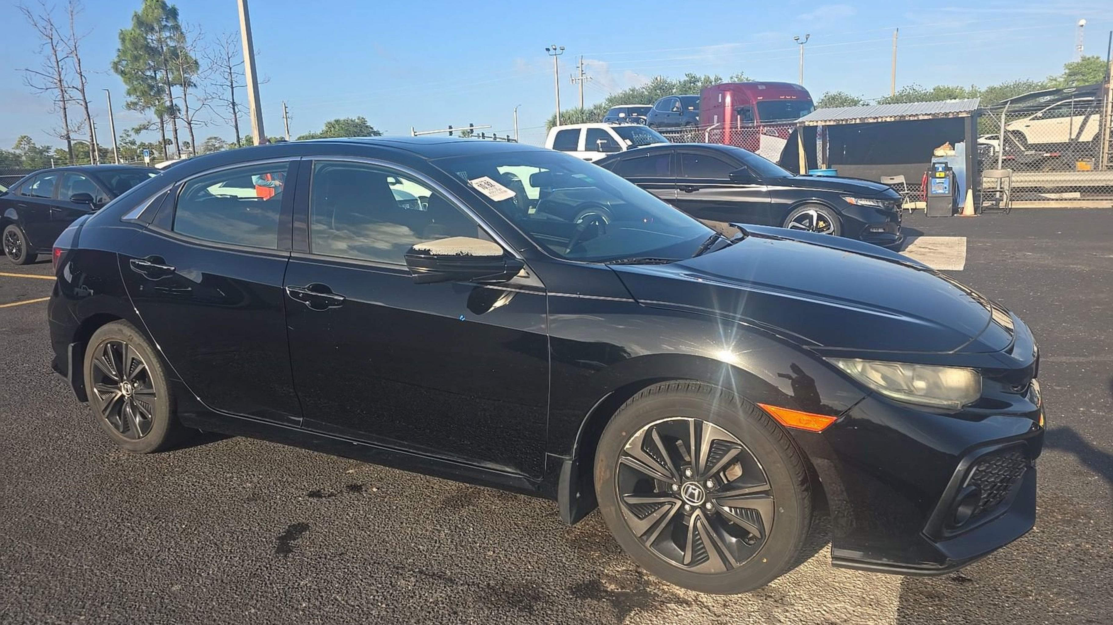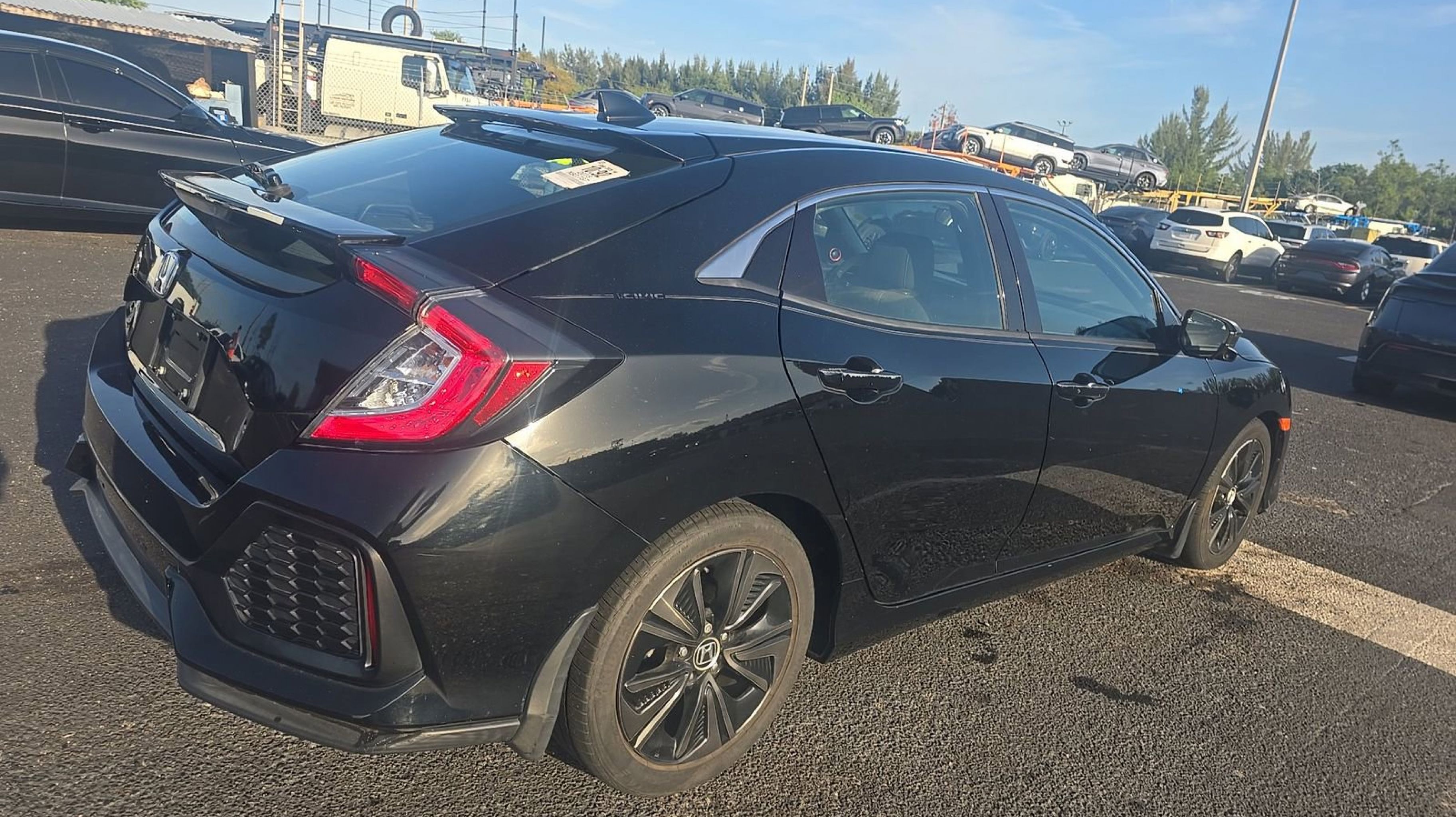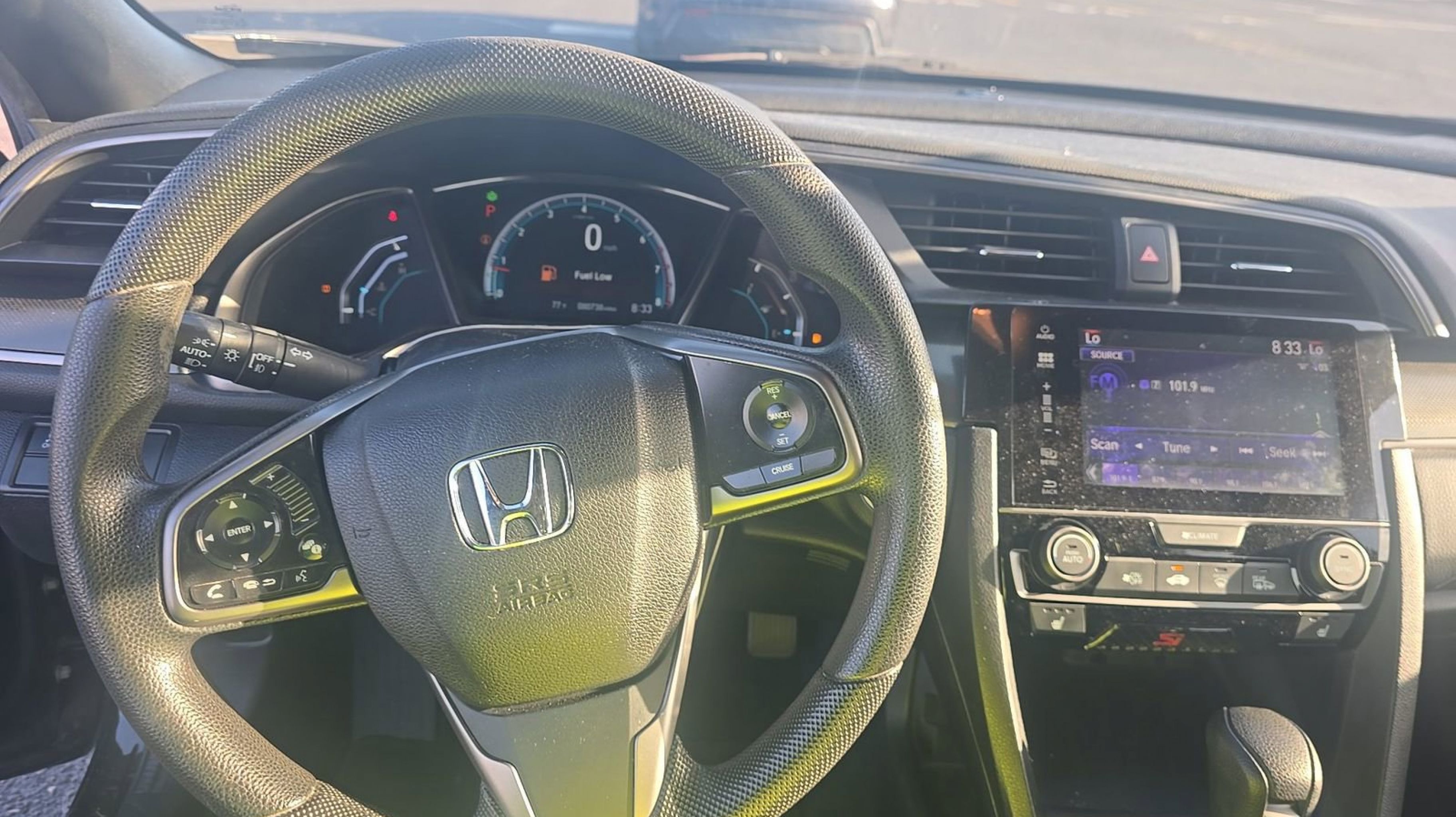Black w/Cloth Seat Trim, 4-Wheel Disc Brakes, 8 Speakers, ABS brakes, Air Conditioning, Alloy wheels, AM/FM radio: SiriusXM, Apple CarPlay/Android Auto, Automatic temperature control, Brake assist, Bumpers: body-color, Compass, Delay-off headlights, Driver door bin, Driver vanity mirror, Dual front impact airbags, Dual front side impact airbags, Electronic Stability Control, Emergency communication system: HondaLink, Exterior Parking Camera Rear, Fabric Seating Surfaces, Four wheel independent suspension, Front anti-roll bar, Front Bucket Seats, Front Center Armrest, Front dual zone A/C, Front fog lights, Front reading lights, Fully automatic headlights, Heated door mirrors, Illuminated entry, Low tire pressure warning, Occupant sensing airbag, Outside temperature display, Overhead airbag, Panic alarm, Passenger door bin, Passenger vanity mirror, Power door mirrors, Power moonroof, Power steering, Power windows, Radio data system, Radio: 180-Watt AM/FM/HD/SiriusXM Audio System, Rear anti-roll bar, Rear seat center armrest, Rear window defroster, Rear window wiper, Reclining Front Bucket Seats, Remote keyless entry, Security system, Speed control, Speed-sensing steering, Split folding rear seat, Spoiler, Steering wheel mounted audio controls, Tachometer, Telescoping steering wheel, Tilt steering wheel, Traction control, Trip computer, Variably intermittent wipers, Black w/Cloth Seat Trim.