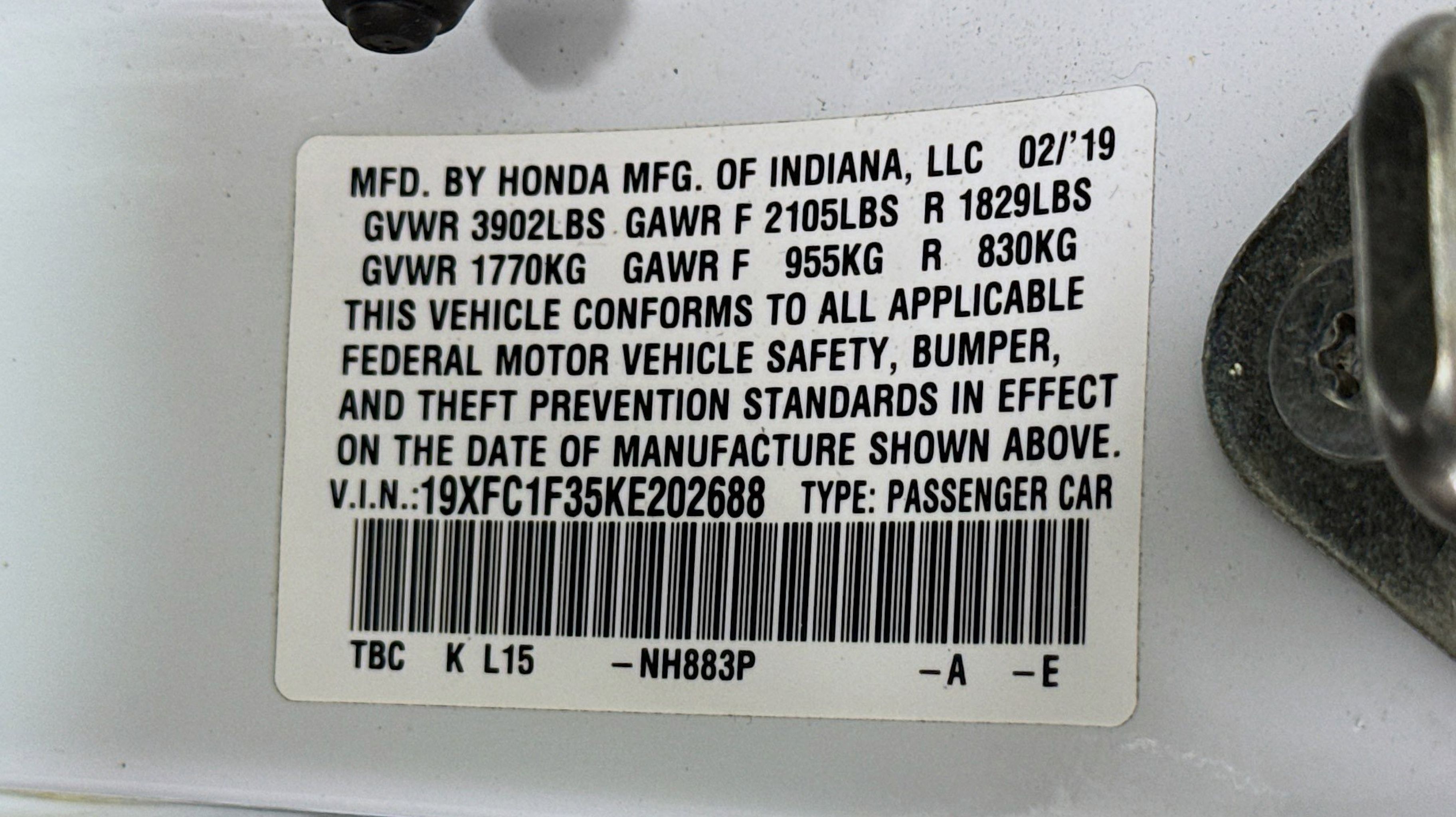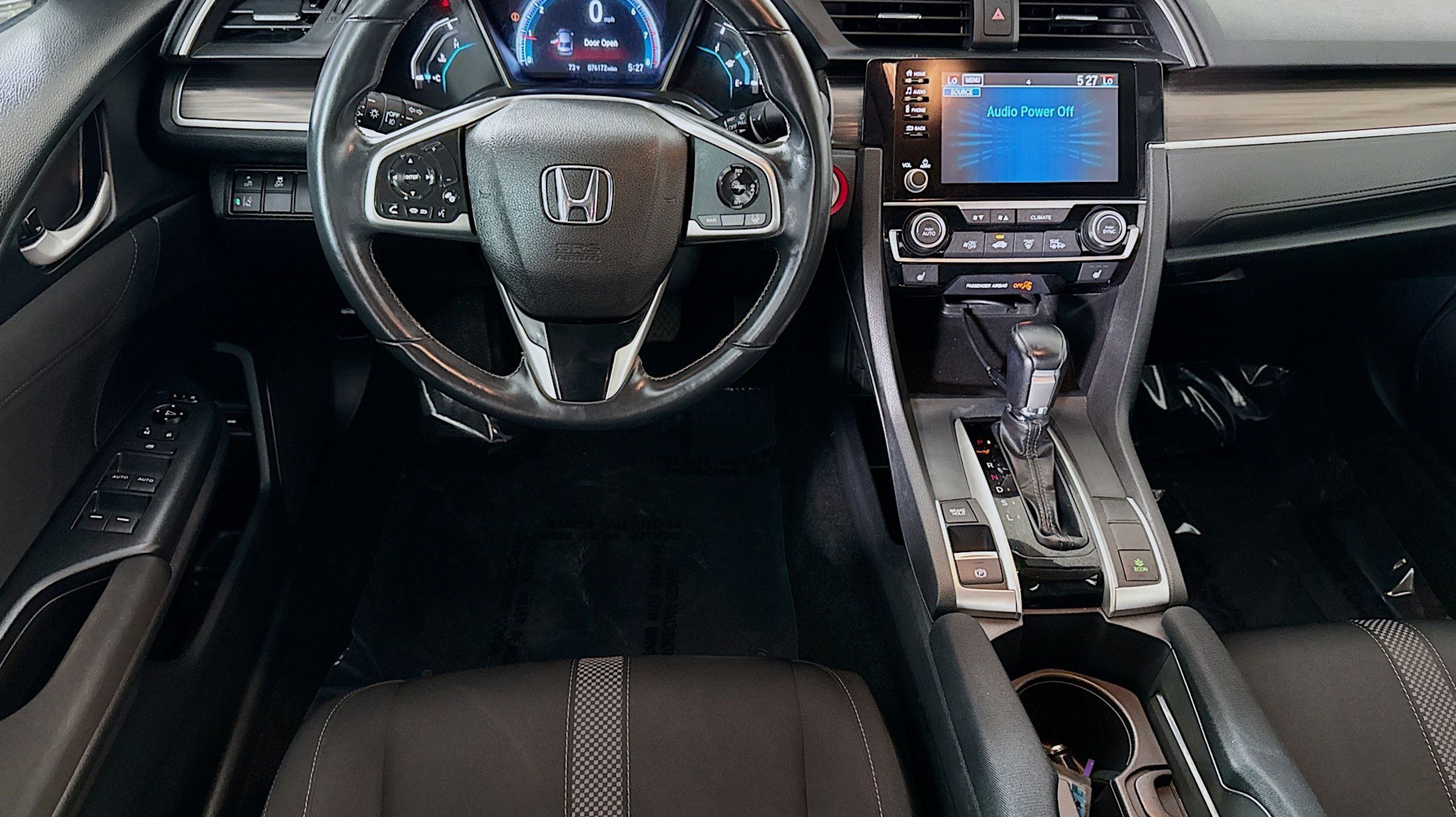 CARFAX One-Owner. Clean CARFAX. Black w/Cloth Seat Trim, 17 Alloy Wheels, 4-Wheel Disc Brakes, 8 Speakers, ABS brakes, Air Conditioning, Alloy wheels, AM/FM radio: XM, Apple CarPlay/Android Auto, Auto High-beam Headlights, Automatic temperature control, Brake assist, Bumpers: body-color, Cloth Seat Trim, Delay-off headlights, Driver door bin, Driver vanity mirror, Dual front impact airbags, Dual front side impact airbags, Electronic Stability Control, Emergency communication system: HondaLink, Exterior Parking Camera Rear, Forward collision: Collision Mitigation Braking System (CMBS) + FCW mitigation, Four wheel independent suspension, Front anti-roll bar, Front Bucket Seats, Front Center Armrest, Front dual zone A/C, Front fog lights, Front reading lights, Fully automatic headlights, Heated door mirrors, Heated Front Bucket Seats, Heated front seats, Illuminated entry, Lane departure: Lane Keeping Assist System (LKAS) active, Leather Shift Knob, Low tire pressure warning, Occupant sensing airbag, Outside temperature display, Overhead airbag, Overhead console, Panic alarm, Passenger door bin, Passenger vanity mirror, Power door mirrors, Power driver seat, Power moonroof, Power steering, Power windows, Radio data system, Radio: 180-Watt AM/FM/HD/SiriusXM Audio System, Rear anti-roll bar, Rear seat center armrest, Rear window defroster, Remote keyless entry, Security system, Speed control, Speed-sensing steering, Speed-Sensitive Wipers, Split folding rear seat, Spoiler, Steering wheel mounted audio controls, Tachometer, Telescoping steering wheel, Tilt steering wheel, Traction control, Trip computer, Variably intermittent wipers, Black w/Cloth Seat Trim.