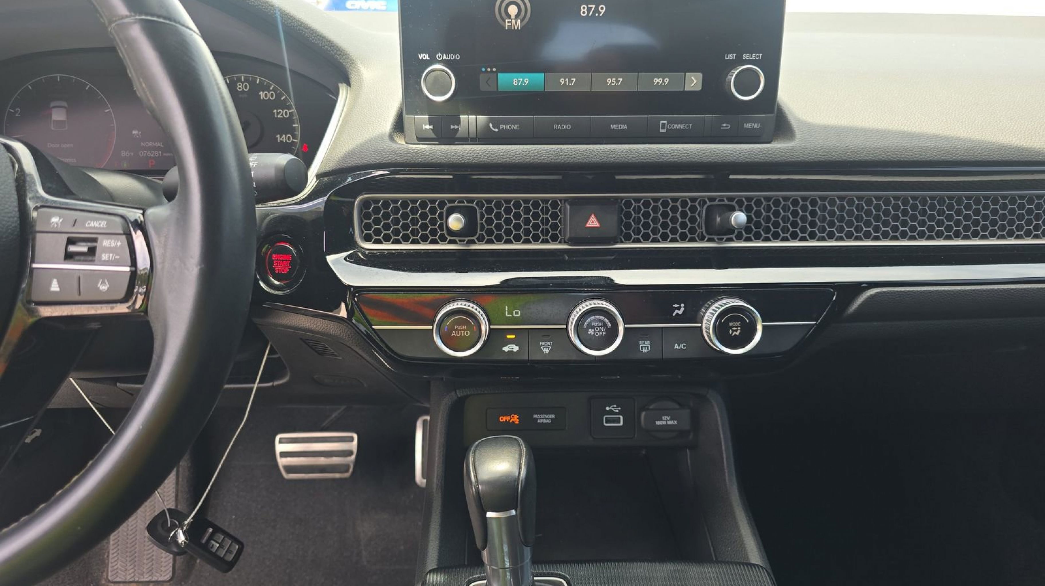 Clean CARFAX. Black w/Fabric Seating Surfaces, 18 Alloy Wheels, 4-Wheel Disc Brakes, 8 Speakers, ABS brakes, Adaptive Cruise Control: Adaptive Cruise Control (ACC) with Low-Speed Follow, Air Conditioning, Alloy wheels, AM/FM radio, Apple CarPlay/Android Auto, Auto High-beam Headlights, Automatic temperature control, Brake assist, Bumpers: body-color, Delay-off headlights, Driver door bin, Driver vanity mirror, Dual front impact airbags, Dual front side impact airbags, Electronic Stability Control, Emergency communication system: HondaLink, Exterior Parking Camera Rear, Fabric Seating Surfaces, Forward collision: Collision Mitigation Braking System (CMBS) + FCW mitigation, Four wheel independent suspension, Front anti-roll bar, Front Bucket Seats, Front Center Armrest, Front reading lights, Fully automatic headlights, Illuminated entry, Knee airbag, Lane departure: Lane Keeping Assist System (LKAS) active, Leather Shift Knob, Leather steering wheel, Low tire pressure warning, Occupant sensing airbag, Outside temperature display, Overhead airbag, Panic alarm, Passenger door bin, Passenger vanity mirror, Power door mirrors, Power steering, Power windows, Radio data system, Radio: 180-Watt Audio System, Rear anti-roll bar, Rear side impact airbag, Rear window defroster, Rear window wiper, Remote keyless entry, Security system, Speed control, Speed-sensing steering, Split folding rear seat, Steering wheel mounted audio controls, Tachometer, Telescoping steering wheel, Tilt steering wheel, Traction control, Trip computer, Voltmeter, Black w/Fabric Seating Surfaces.