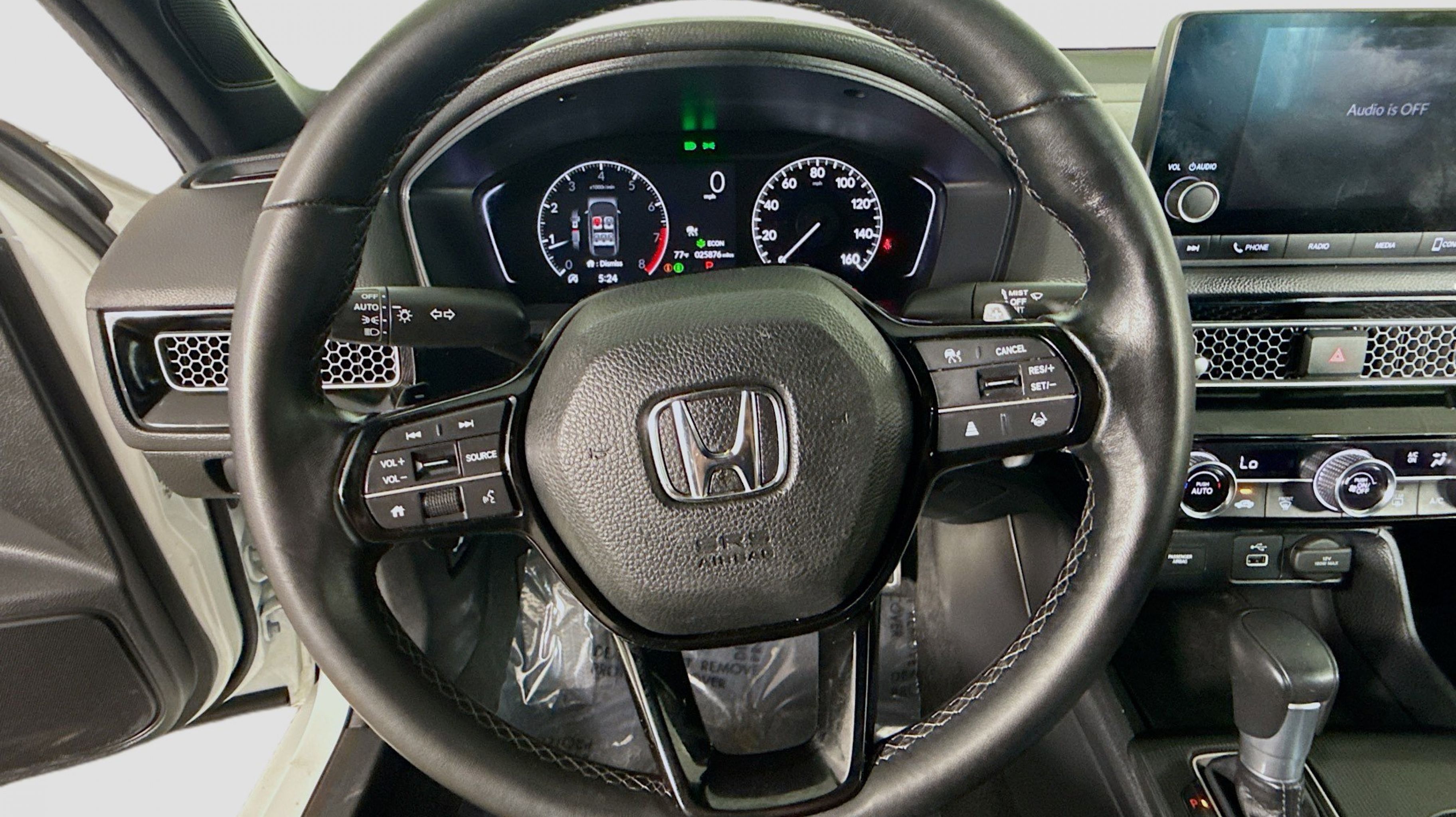 Platinum White Pearl 2024 Honda Civic Sport FWD CVT 2.0L I4 DOHC 16V i-VTEC Black w/Cloth Seating Surfaces, 4-Wheel Disc Brakes, 8 Speakers, ABS brakes, Adaptive Cruise Control: Adaptive Cruise Control (ACC) with Low-Speed Follow, Air Conditioning, Alloy wheels, AM/FM radio, Apple CarPlay/Android Auto, Auto High-beam Headlights, Automatic temperature control, Brake assist, Bumpers: body-color, Cloth/Leatherette Seating Surfaces, Delay-off headlights, Driver door bin, Driver vanity mirror, Dual front impact airbags, Dual front side impact airbags, Electronic Stability Control, Emergency communication system: HondaLink, Exterior Parking Camera Rear, Four wheel independent suspension, Front anti-roll bar, Front Bucket Seats, Front Center Armrest, Front reading lights, Fully automatic headlights, Illuminated entry, Knee airbag, Leather Shift Knob, Leather steering wheel, Low tire pressure warning, Occupant sensing airbag, Outside temperature display, Overhead airbag, Panic alarm, Passenger door bin, Passenger vanity mirror, Power door mirrors, Power steering, Power windows, Radio data system, Radio: 180-Watt Audio System, Rear anti-roll bar, Rear side impact airbag, Rear window defroster, Remote keyless entry, Security system, Speed control, Speed-sensing steering, Steering wheel mounted audio controls, Tachometer, Telescoping steering wheel, Tilt steering wheel, Traction control, Trip computer, Wheels: 18 Gloss Black Alloy, Black w/Cloth Seating Surfaces.