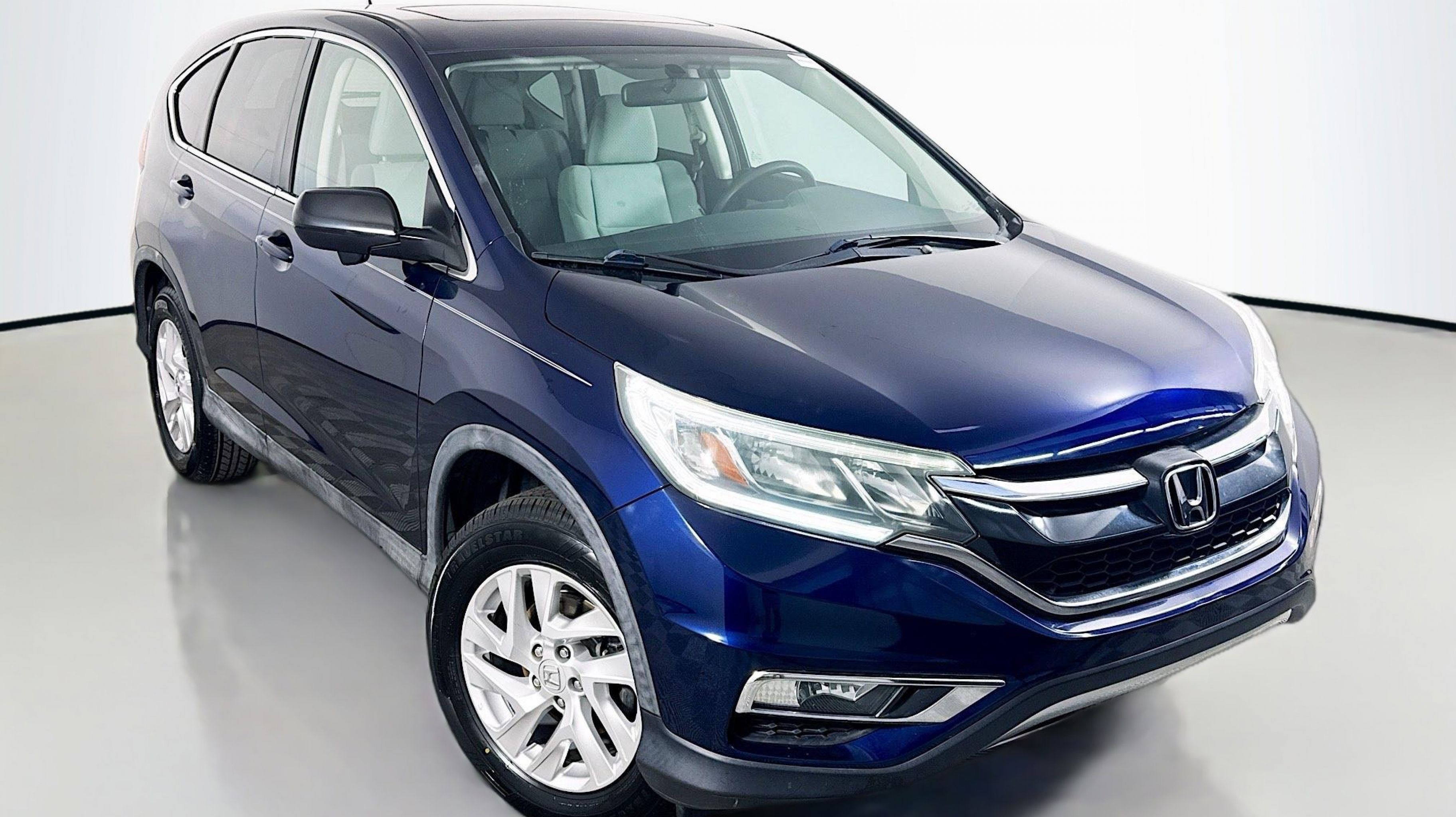 Obsidian Blue Pearl 2016 Honda CR-V EX FWD CVT 2.4L I4 DOHC 16V i-VTEC 17 Alloy Wheels, 4-Wheel Disc Brakes, 5.048 Axle Ratio, 6 Speakers, ABS brakes, Air Conditioning, Alloy wheels, AM/FM radio, AM/FM/CD Audio System w/6 Speakers, Brake assist, Bumpers: body-color, CD player, Cloth Seat Trim, Compass, Delay-off headlights, Driver door bin, Driver vanity mirror, Dual front impact airbags, Dual front side impact airbags, Electronic Stability Control, Exterior Parking Camera Rear, Four wheel independent suspension, Front anti-roll bar, Front Bucket Seats, Front Center Armrest, Front fog lights, Front reading lights, Heated Front Bucket Seats, Heated front seats, Illuminated entry, Low tire pressure warning, Occupant sensing airbag, Outside temperature display, Overhead airbag, Overhead console, Panic alarm, PANORAMA SUNROOF, Passenger door bin, Passenger vanity mirror, Power door mirrors, Power driver seat, Power steering, Power windows, Radio data system, Rear anti-roll bar, Rear seat center armrest, Rear window defroster, Rear window wiper, Remote keyless entry, Security system, Speed control, Speed-sensing steering, Speed-Sensitive Wipers, Split folding rear seat, Steering wheel mounted audio controls, Tachometer, Telescoping steering wheel, Tilt steering wheel, Traction control, Trip computer, Variably intermittent wipers.