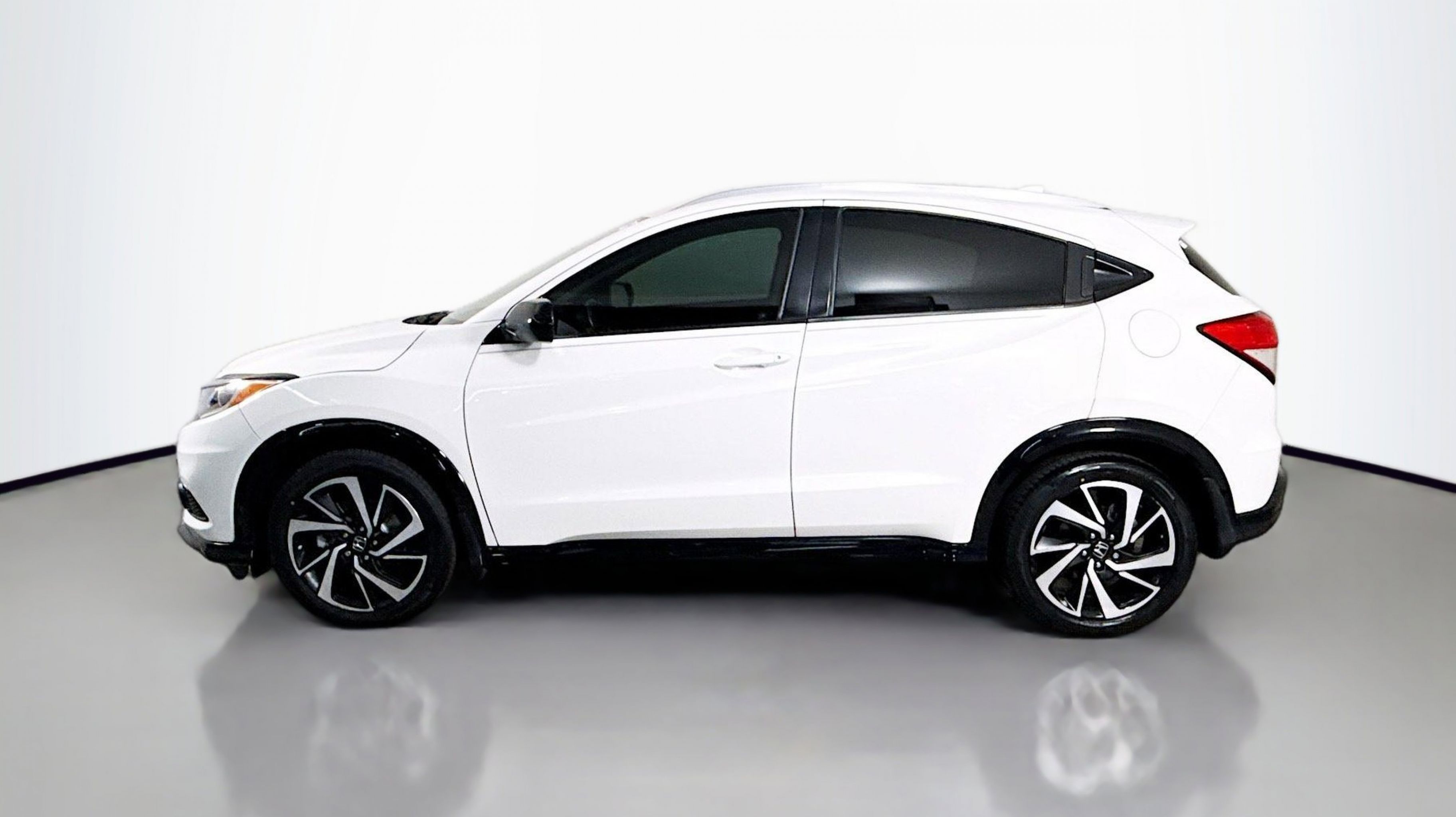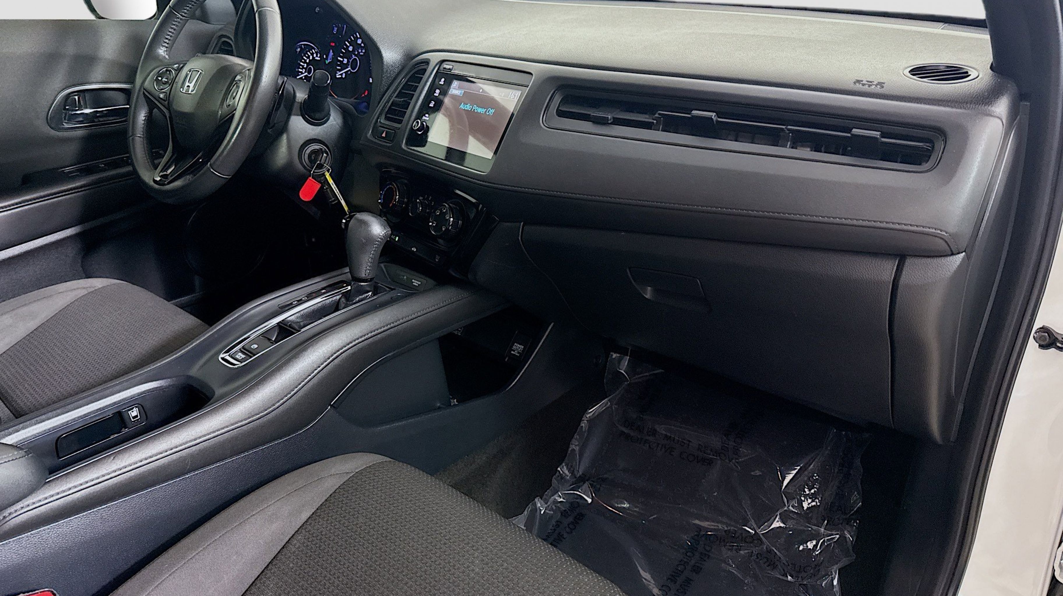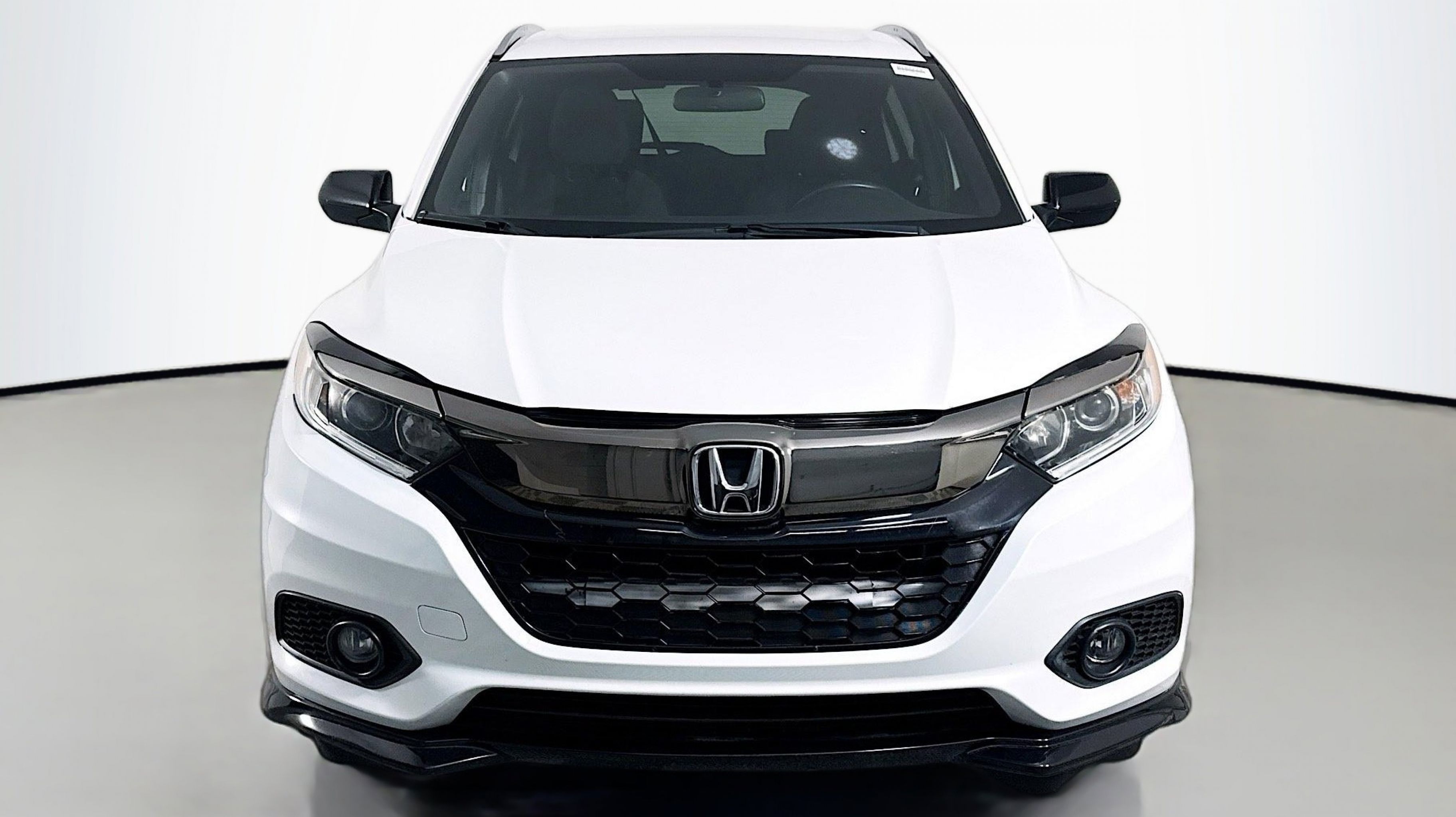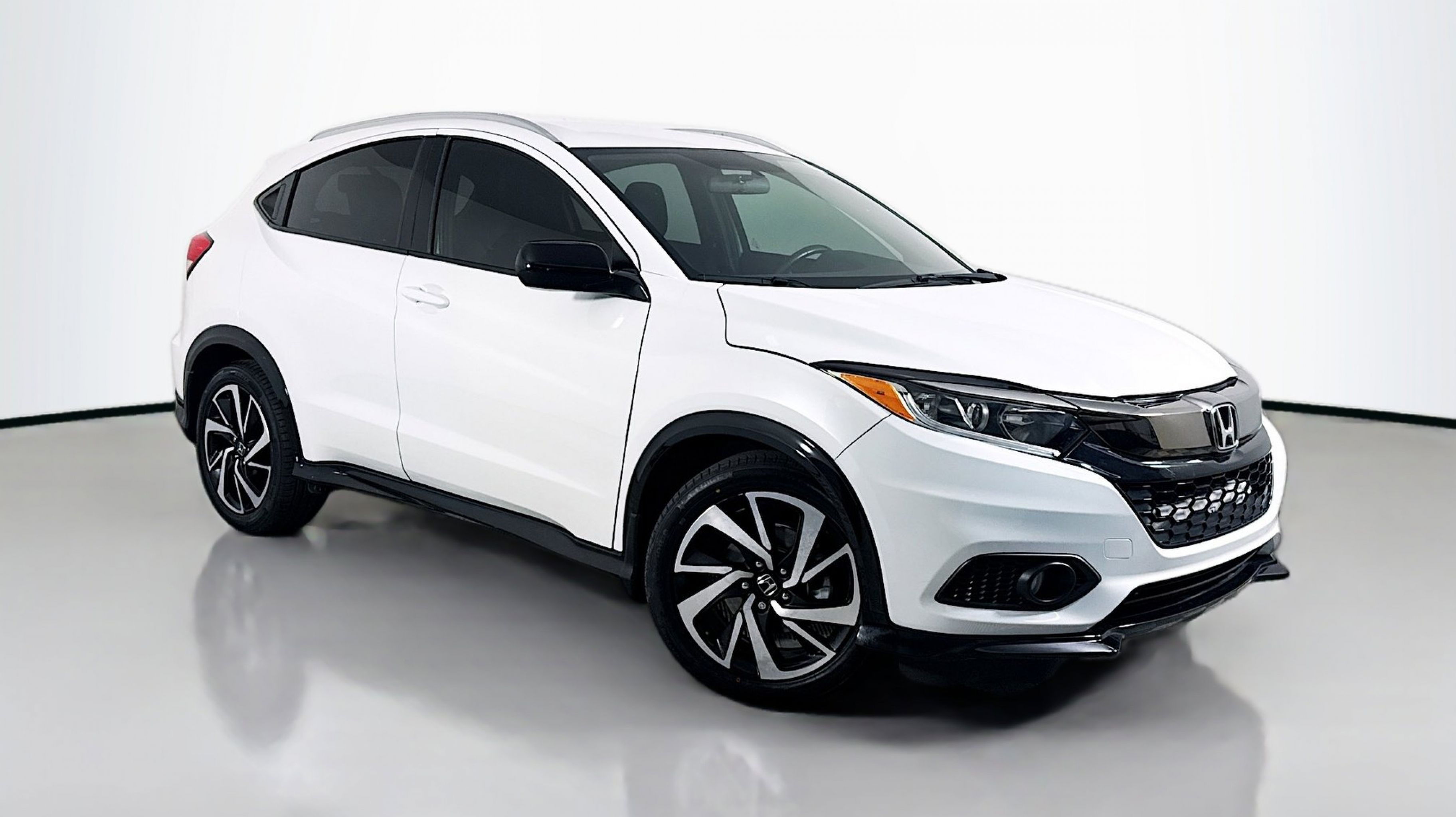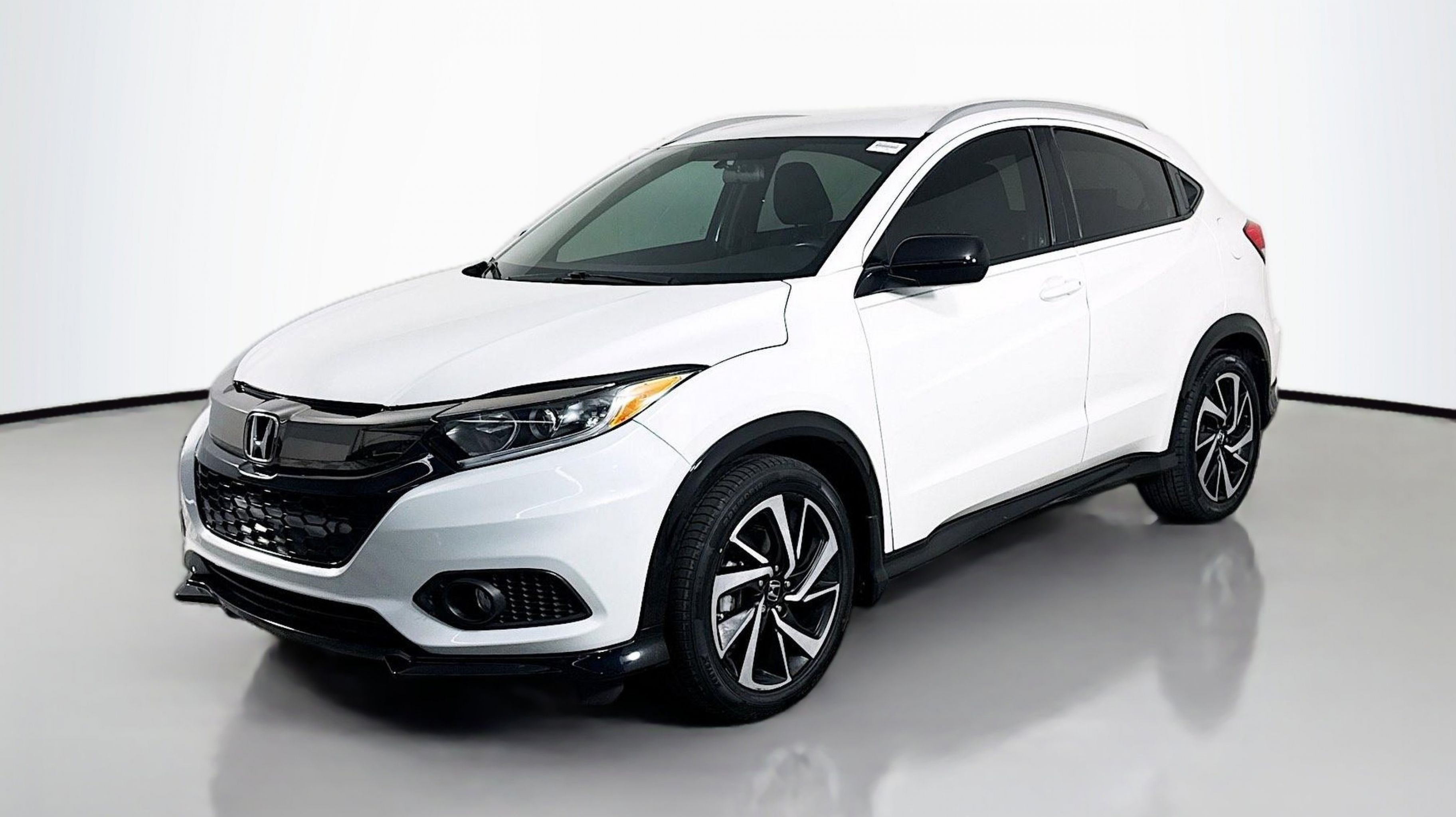 Platinum White Pearl 2019 Honda HR-V Sport FWD CVT 1.8L I4 SOHC 16V i-VTEC 18 Machine-Finished Alloy Wheels, 4-Wheel Disc Brakes, 5.436 Axle Ratio, 6 Speakers, ABS brakes, Air Conditioning, Alloy wheels, AM/FM radio, Apple CarPlay/Android Auto, Brake assist, Bumpers: body-color, Cloth Seat Trim, Driver door bin, Driver vanity mirror, Dual front impact airbags, Dual front side impact airbags, Electronic Stability Control, Emergency communication system, Exterior Parking Camera Rear, Front anti-roll bar, Front Bucket Seats, Front Center Armrest, Front fog lights, Front reading lights, Front wheel independent suspension, Fully automatic headlights, Illuminated entry, Low tire pressure warning, Occupant sensing airbag, Outside temperature display, Overhead airbag, Panic alarm, Passenger door bin, Passenger vanity mirror, Power door mirrors, Power steering, Power windows, Radio data system, Radio: AM/FM Stereo Audio System (180-Watt), Rear window defroster, Rear window wiper, Remote keyless entry, Roof rack: rails only, Security system, Speed control, Speed-sensing steering, Split folding rear seat, Spoiler, Steering wheel mounted audio controls, Tachometer, Telescoping steering wheel, Tilt steering wheel, Traction control, Trip computer.