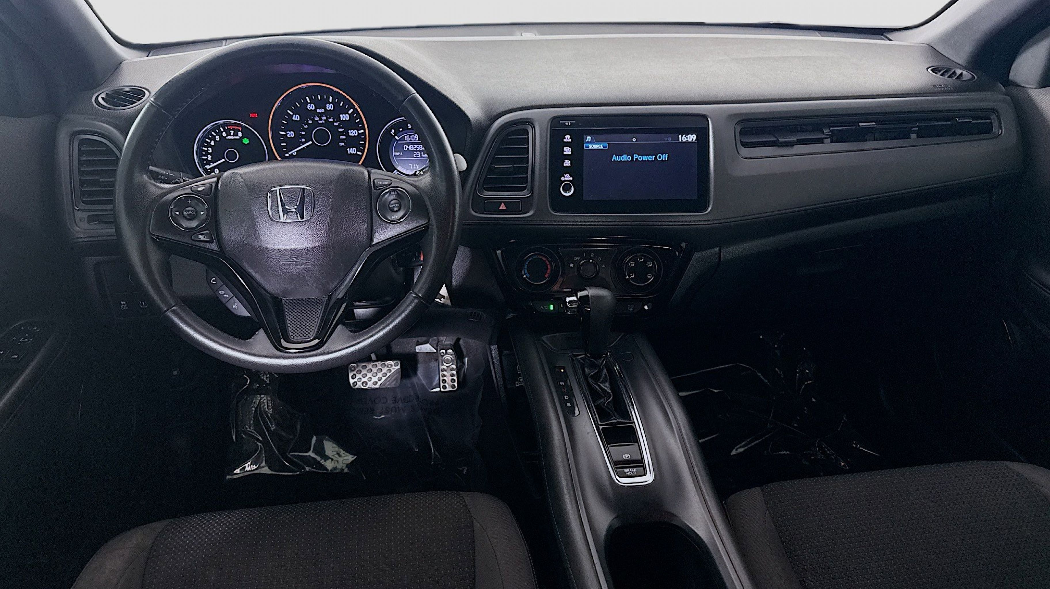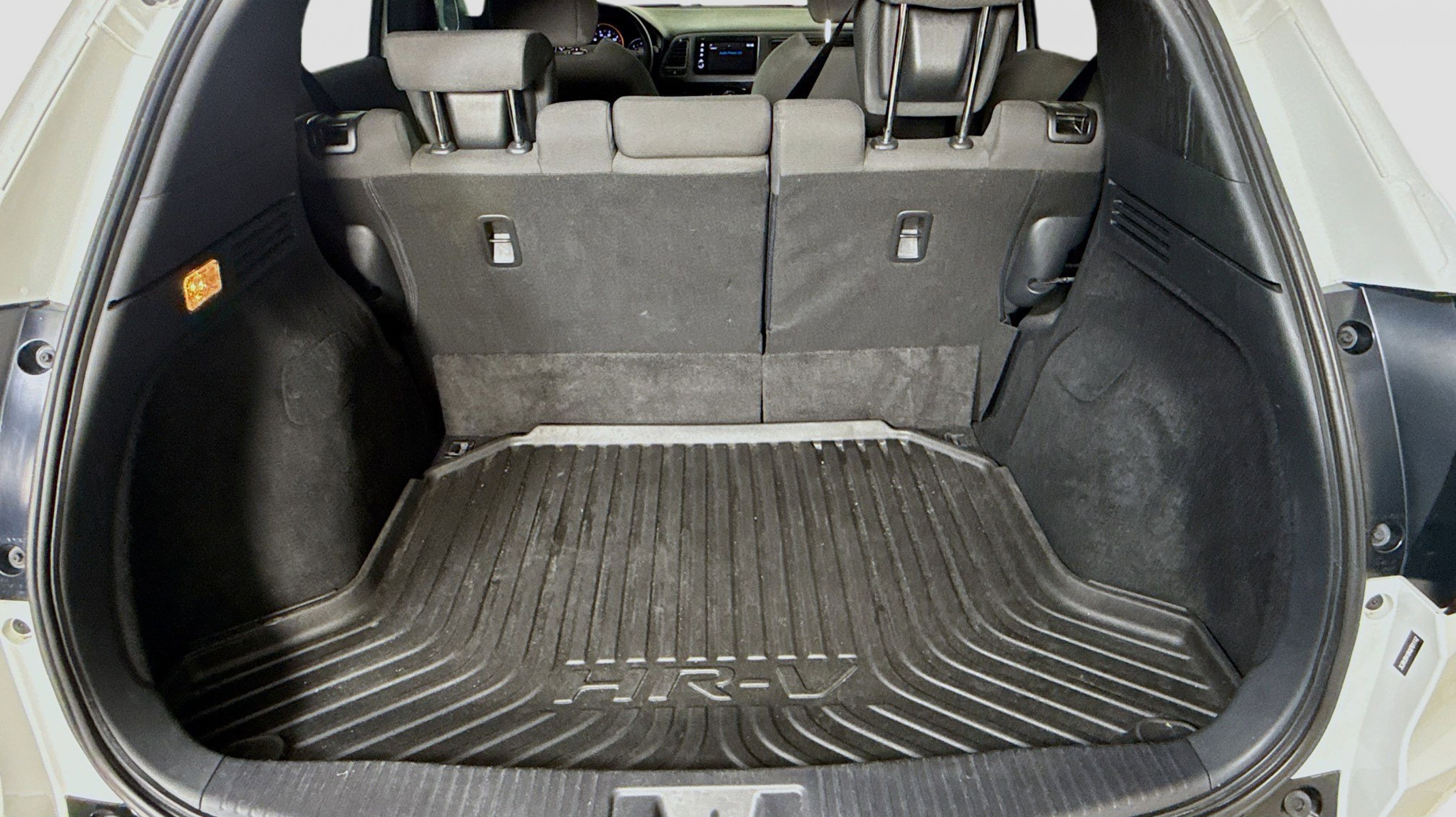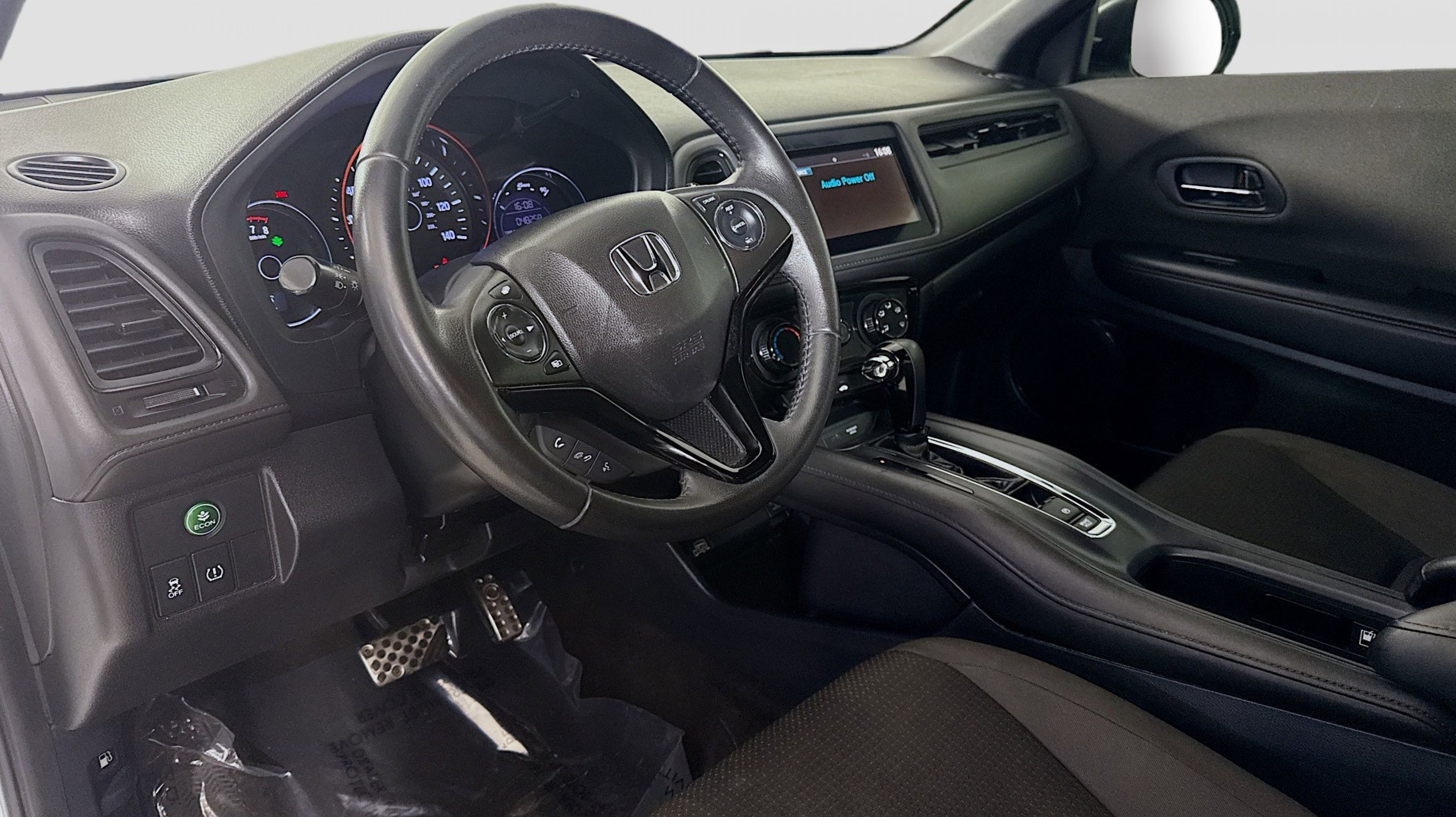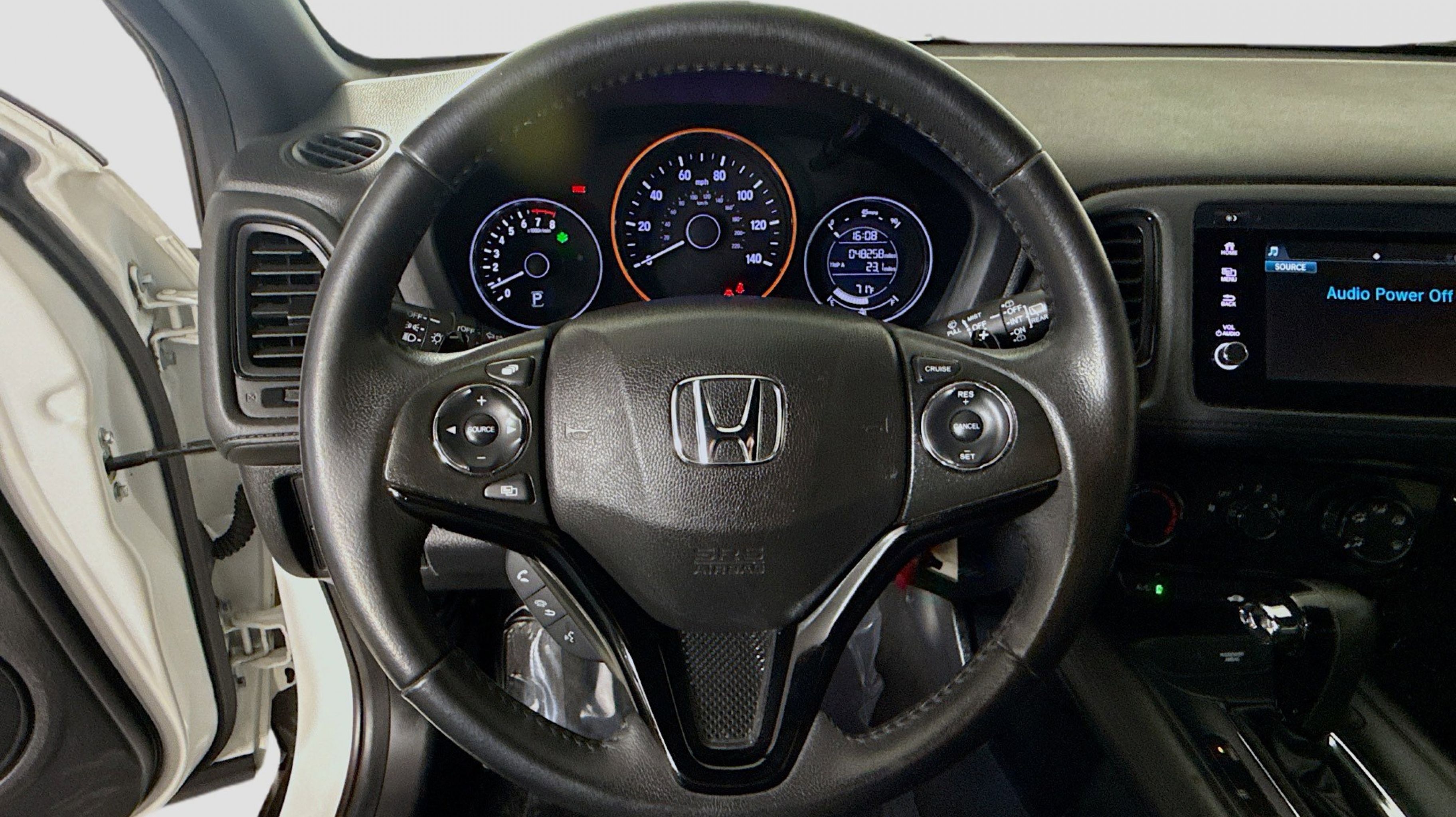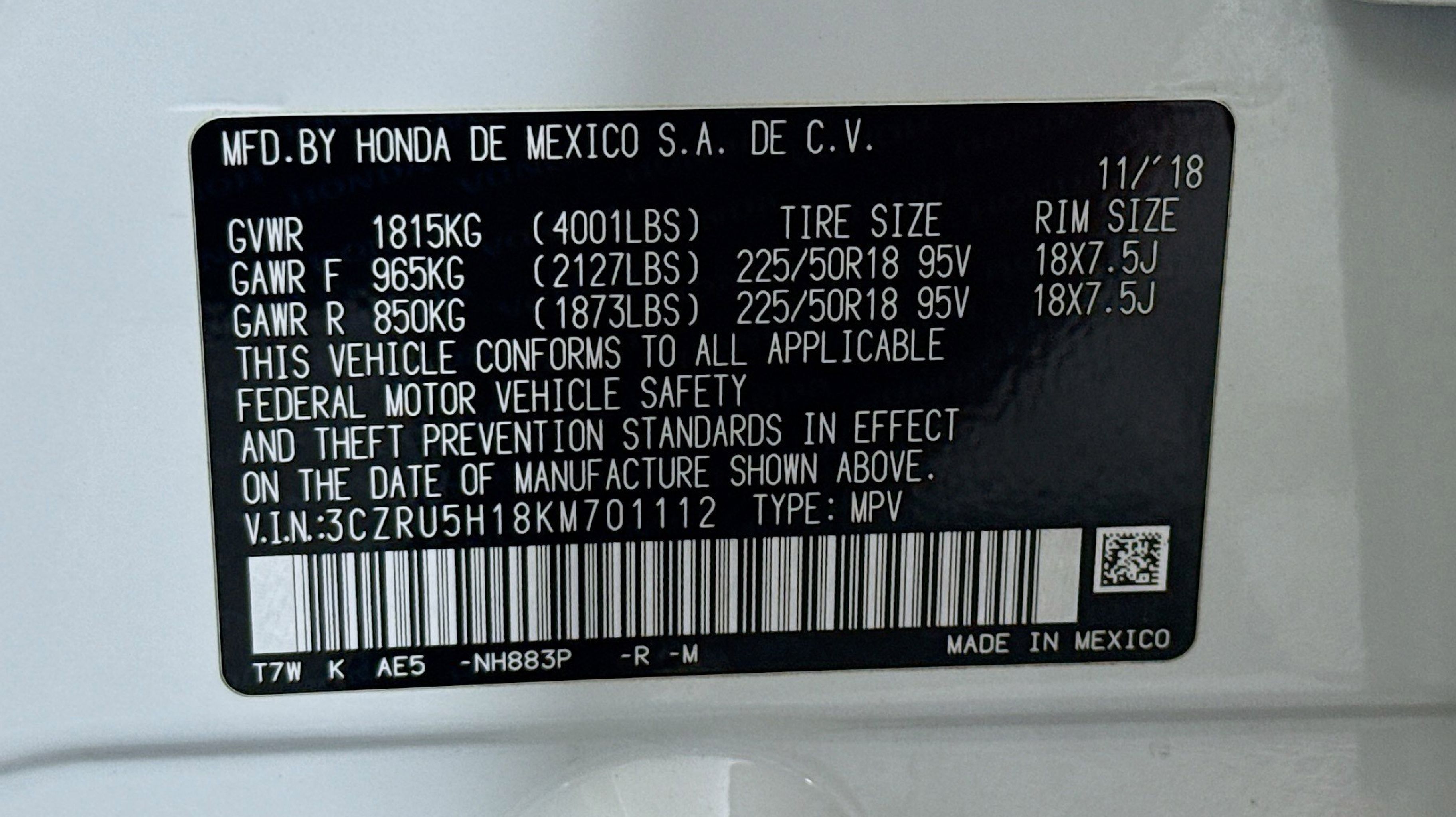 Platinum White Pearl 2019 Honda HR-V Sport FWD CVT 1.8L I4 SOHC 16V i-VTEC 18 Machine-Finished Alloy Wheels, 4-Wheel Disc Brakes, 5.436 Axle Ratio, 6 Speakers, ABS brakes, Air Conditioning, Alloy wheels, AM/FM radio, Apple CarPlay/Android Auto, Brake assist, Bumpers: body-color, Cloth Seat Trim, Driver door bin, Driver vanity mirror, Dual front impact airbags, Dual front side impact airbags, Electronic Stability Control, Emergency communication system, Exterior Parking Camera Rear, Front anti-roll bar, Front Bucket Seats, Front Center Armrest, Front fog lights, Front reading lights, Front wheel independent suspension, Fully automatic headlights, Illuminated entry, Low tire pressure warning, Occupant sensing airbag, Outside temperature display, Overhead airbag, Panic alarm, Passenger door bin, Passenger vanity mirror, Power door mirrors, Power steering, Power windows, Radio data system, Radio: AM/FM Stereo Audio System (180-Watt), Rear window defroster, Rear window wiper, Remote keyless entry, Roof rack: rails only, Security system, Speed control, Speed-sensing steering, Split folding rear seat, Spoiler, Steering wheel mounted audio controls, Tachometer, Telescoping steering wheel, Tilt steering wheel, Traction control, Trip computer.