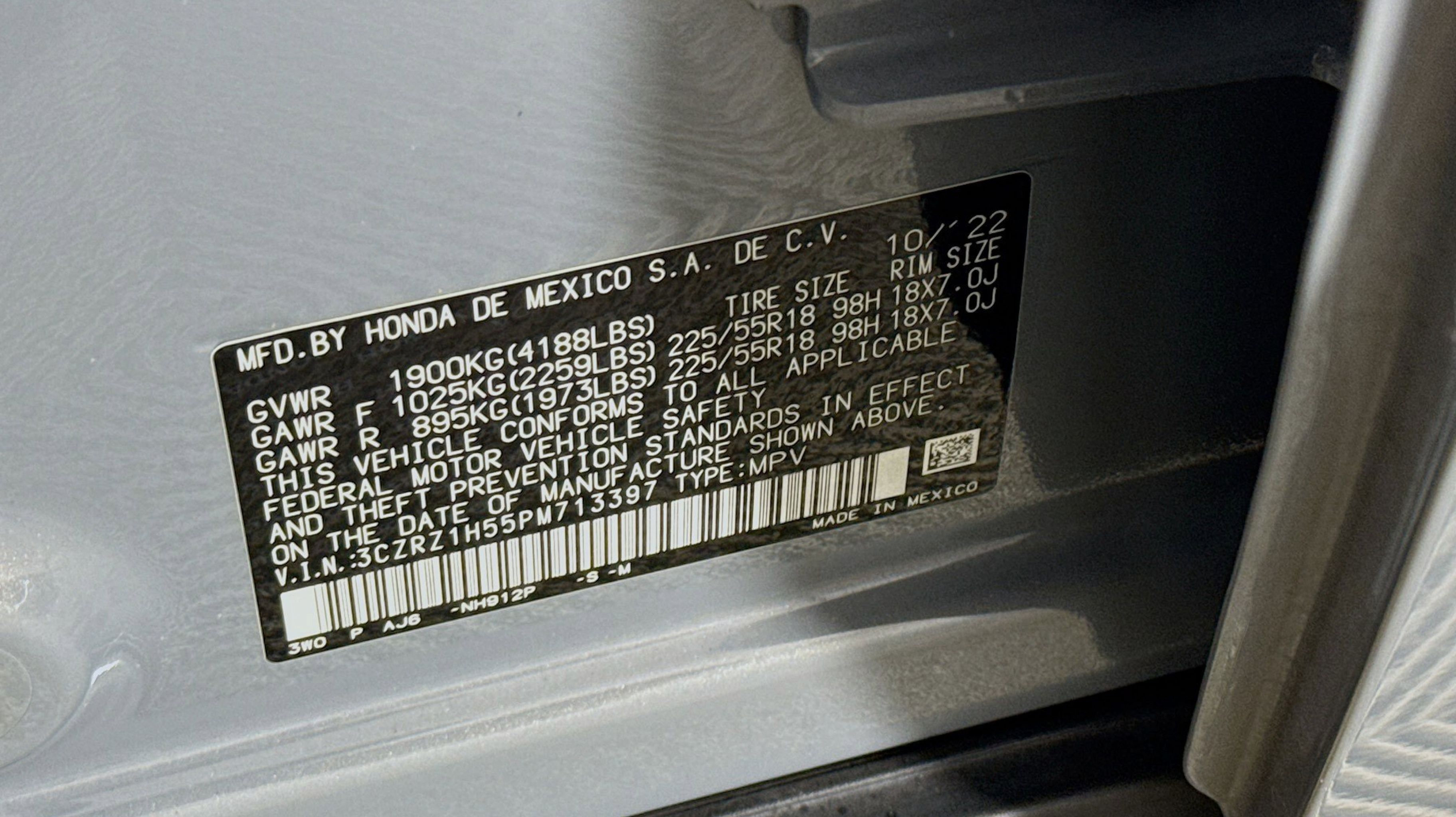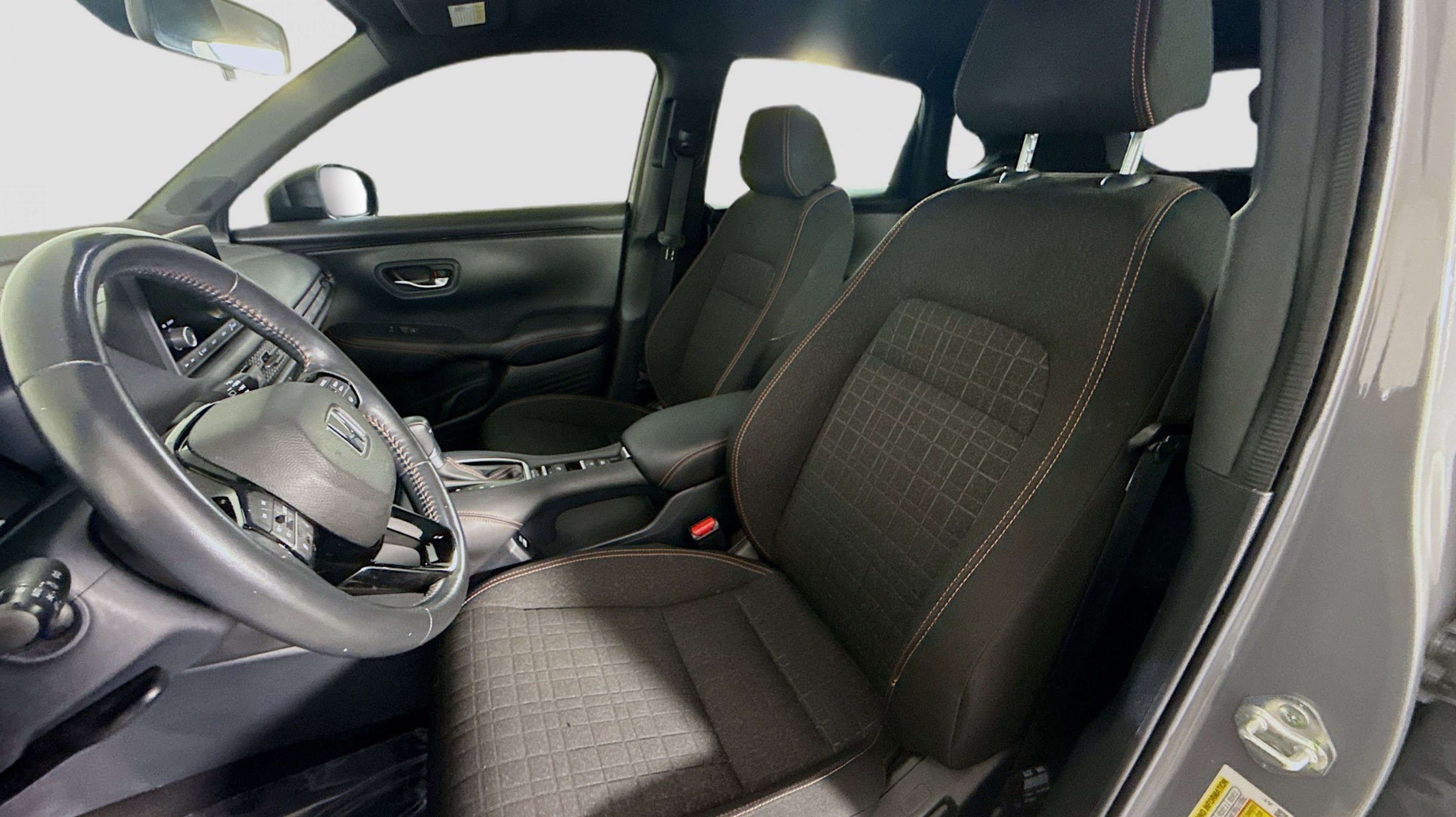 Urban Gray Pearl 2023 Honda HR-V Sport FWD CVT 2.0L I4 DOHC 16V i-VTEC 4-Wheel Disc Brakes, 5.436 Axle Ratio, 6 Speakers, ABS brakes, Adaptive Cruise Control: Adaptive Cruise Control (ACC) with Low-Speed Follow, Air Conditioning, Alloy wheels, AM/FM radio, Apple CarPlay/Android Auto, Auto High-beam Headlights, Automatic temperature control, Blind Spot Information (BSI) System warning, Brake assist, Bumpers: body-color, Cloth Seat Trim, Delay-off headlights, Driver door bin, Driver vanity mirror, Dual front impact airbags, Dual front side impact airbags, Electronic Stability Control, Emergency communication system: HondaLink, Exterior Parking Camera Rear, Four wheel independent suspension, Front anti-roll bar, Front Bucket Seats, Front Center Armrest, Front reading lights, Fully automatic headlights, Heated door mirrors, Heated Front Bucket Seats, Heated front seats, Illuminated entry, Knee airbag, Leather Shift Knob, Low tire pressure warning, Occupant sensing airbag, Outside temperature display, Overhead airbag, Panic alarm, Passenger door bin, Passenger vanity mirror, Power door mirrors, Power steering, Power windows, Radio data system, Radio: 180-Watt Audio System w/6 Speakers, Rear anti-roll bar, Rear reading lights, Rear side impact airbag, Rear window defroster, Rear window wiper, Remote keyless entry, Security system, Speed control, Speed-sensing steering, Split folding rear seat, Spoiler, Steering wheel mounted audio controls, Tachometer, Telescoping steering wheel, Tilt steering wheel, Traction control, Trip computer, Turn signal indicator mirrors, Variably intermittent wipers, Wheels: 18 Gloss Black Alloy.