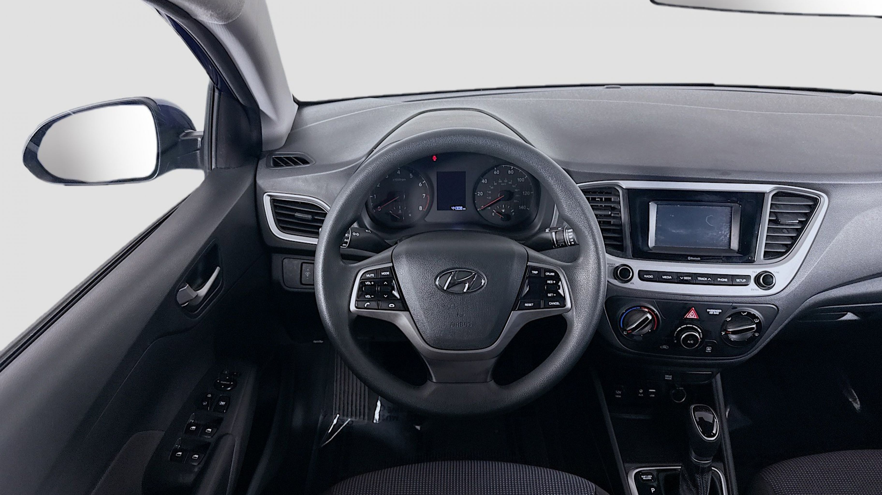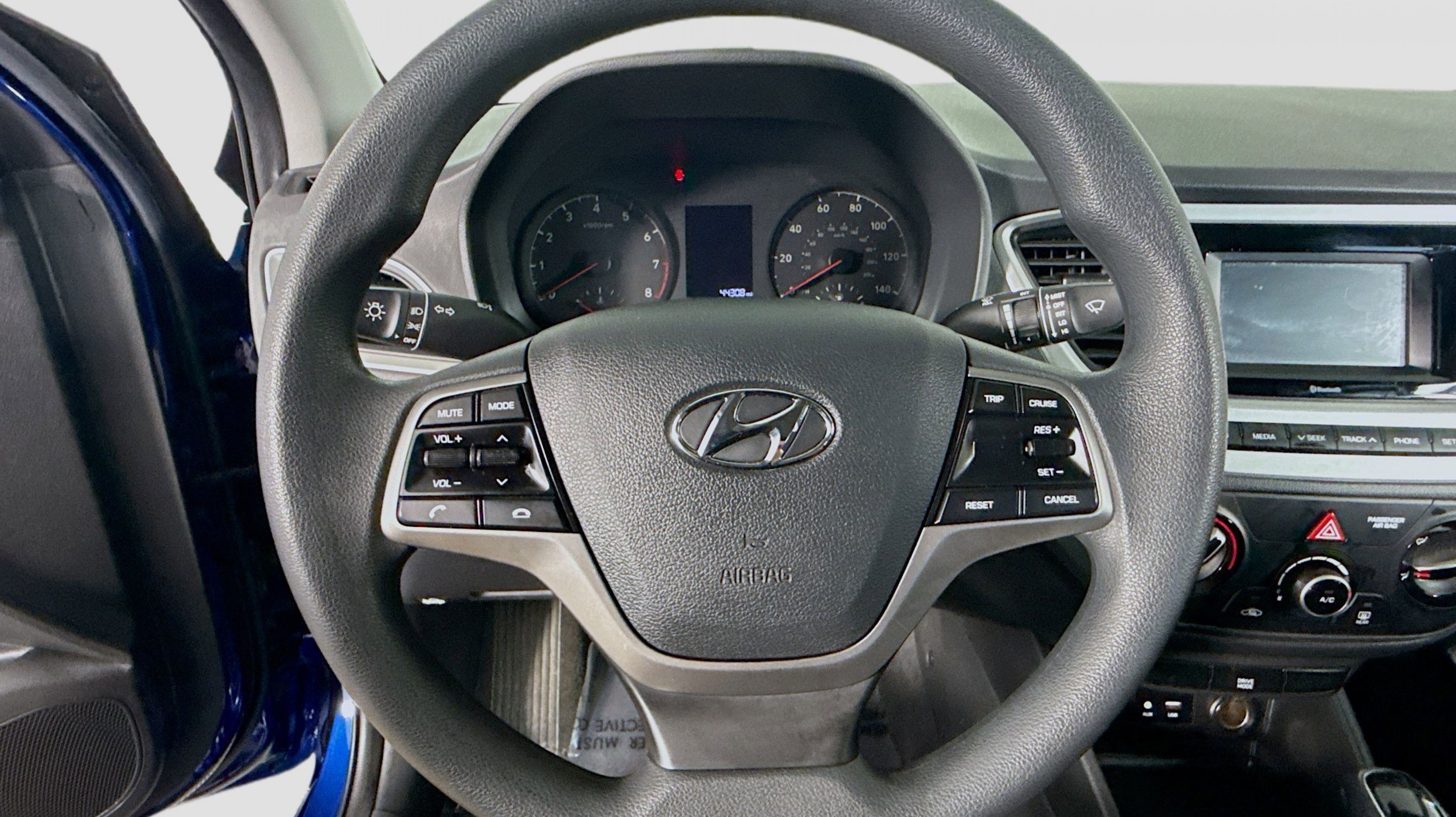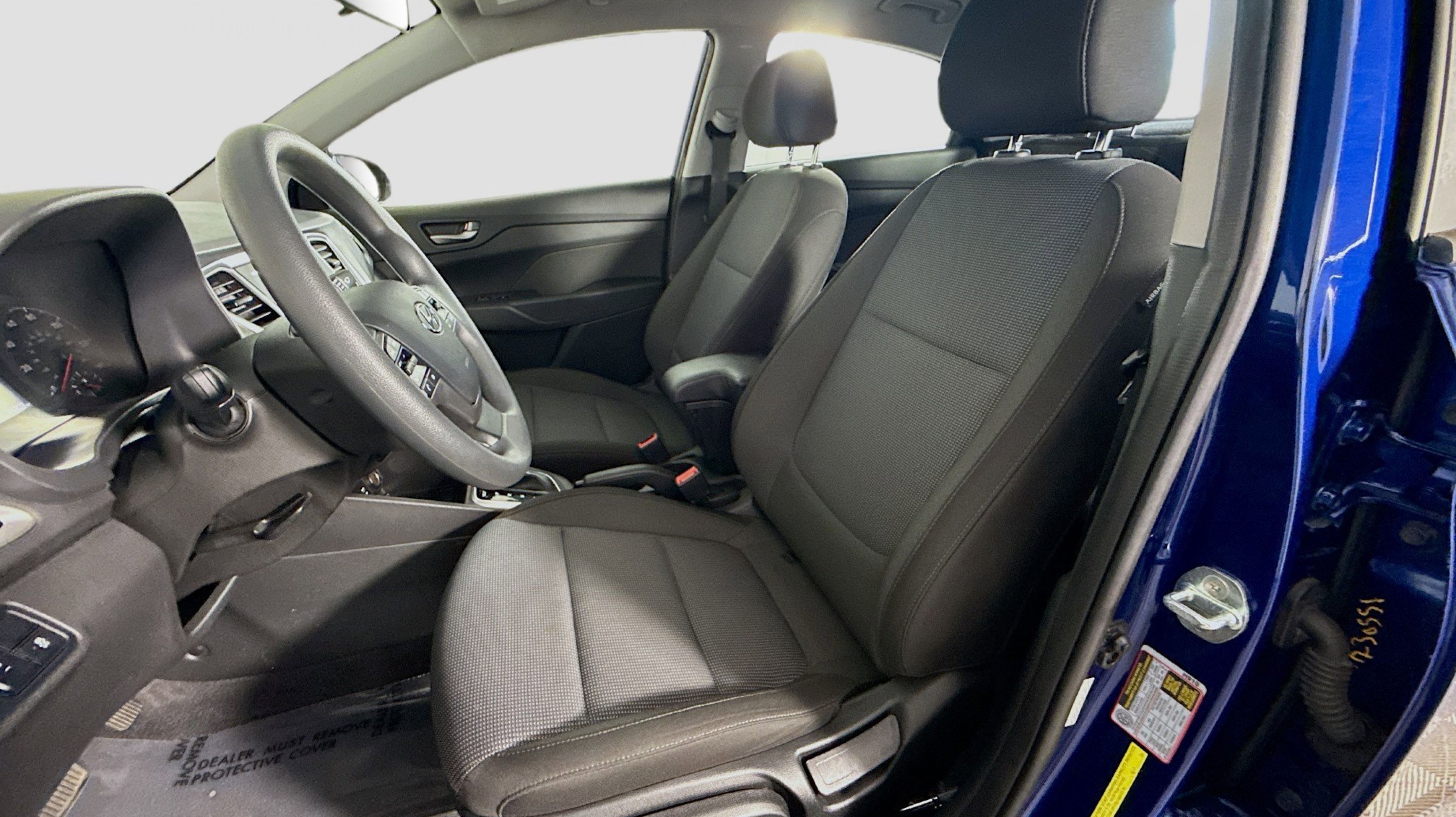 Admiral Blue 2022 Hyundai Accent SE FWD CVT 1.6L I4 PDI DOHC 16V LEV3-ULEV125 120hp Black w/Cloth Seat Trim, Option Group 01, 4 Speakers, ABS brakes, Air Conditioning, AM/FM radio, Anti-whiplash front head restraints, Brake assist, Bumpers: body-color, Cargo Net, Carpeted Floor Mats, Cloth Seat Trim, Driver door bin, Driver vanity mirror, Dual front impact airbags, Dual front side impact airbags, Electronic Stability Control, Exterior Parking Camera Rear, Front anti-roll bar, Front Bucket Seats, Front reading lights, Front wheel independent suspension, Illuminated entry, Low tire pressure warning, Mudguards, Occupant sensing airbag, Outside temperature display, Overhead airbag, Overhead console, Panic alarm, Passenger door bin, Passenger vanity mirror, Power door mirrors, Power steering, Power windows, Radio: Audio 4.0B AM/FM, Rear window defroster, Remote keyless entry, Security system, Speed control, Speed-sensing steering, Split folding rear seat, Steering wheel mounted audio controls, Tachometer, Tilt steering wheel, Traction control, Trip computer, Wheels: 5.5J x 15 Steel w/Covers, Black w/Cloth Seat Trim, Option Group 01.