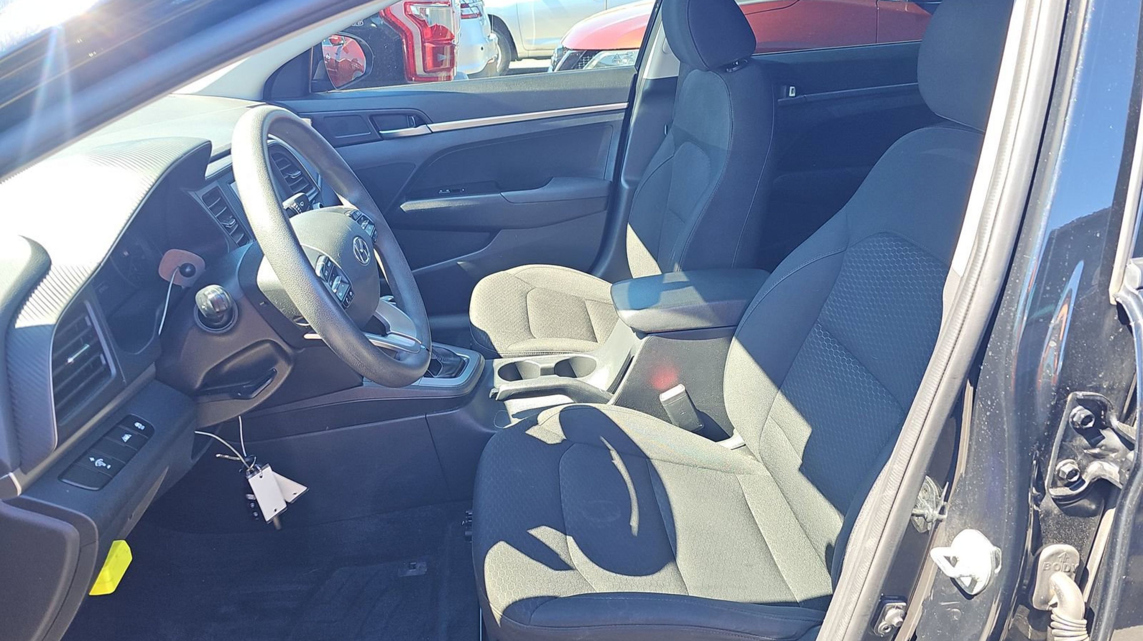 Phantom Black 2020 Hyundai Elantra SE FWD CVT 2.0L 4-Cylinder DOHC 16V Cargo Net, Cargo Package (C1), Option Group 01, Reversible Cargo Tray, Trunk Hooks, 6 Speakers, ABS brakes, Air Conditioning, AM/FM radio, Automatic temperature control, Brake assist, Bumpers: body-color, Carpeted Floor Mats, Delay-off headlights, Driver door bin, Driver vanity mirror, Dual front impact airbags, Dual front side impact airbags, Electronic Stability Control, Exterior Parking Camera Rear, Front anti-roll bar, Front Bucket Seats, Front Center Armrest, Front dual zone A/C, Front reading lights, Front wheel independent suspension, Illuminated entry, Knee airbag, Lane Departure Warning System, Low tire pressure warning, Occupant sensing airbag, Outside temperature display, Overhead airbag, Overhead console, Panic alarm, Passenger door bin, Passenger vanity mirror, Power door mirrors, Power steering, Power windows, Premium Cloth Seat Trim, Radio: AM/FM Audio System, Rear Bumper APPLIQUE, Rear window defroster, Remote keyless entry, Security system, Speed control, Speed-sensing steering, Split folding rear seat, Steering wheel mounted audio controls, Tachometer, Telescoping steering wheel, Tilt steering wheel, Traction control, Trip computer, Variably intermittent wipers, Wheels: 15 x 6.0J Steel w/Covers, Cargo Net, Cargo Package (C1), Option Group 01, Reversible Cargo Tray, Trunk Hooks.
