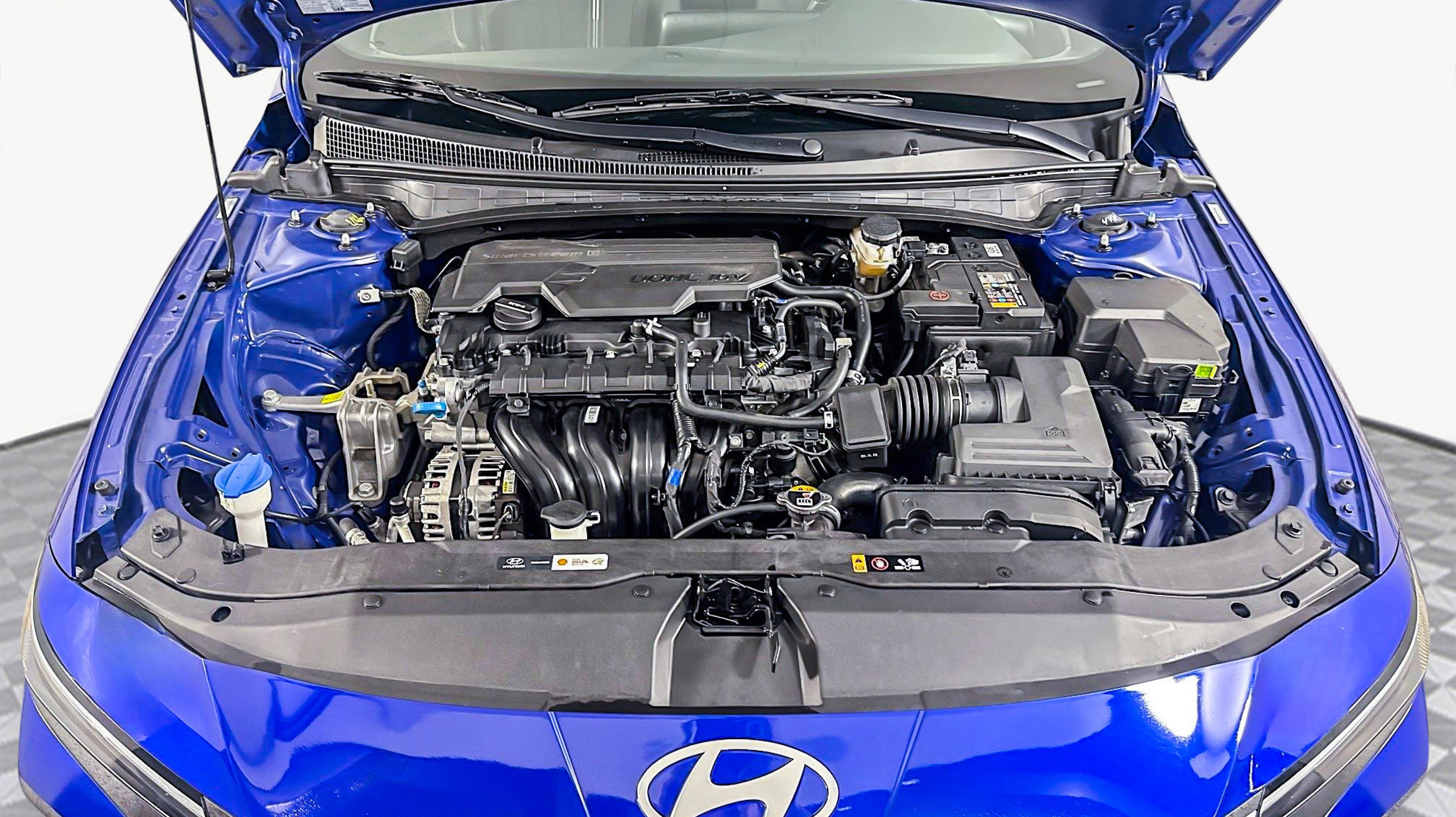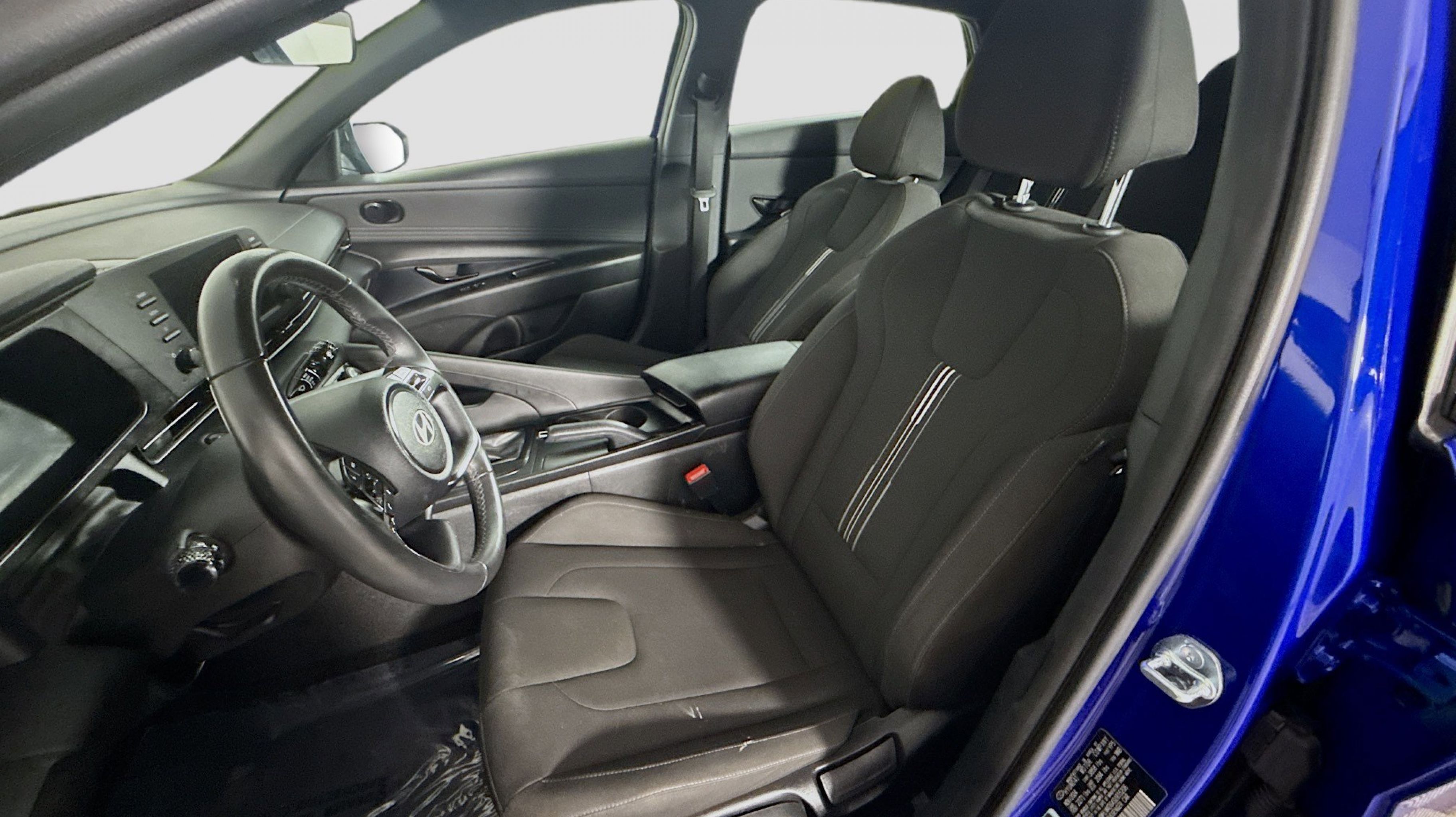Intense Blue 2025 Hyundai Elantra SEL Sport FWD CVT I4 Option Group 01, 17 x 7.0J Alloy Wheels, 4-Wheel Disc Brakes, 6 Speakers, ABS brakes, Air Conditioning, All-Season Fitted Liners, Alloy wheels, AM/FM radio, Apple CarPlay & Android Auto, Auto High-beam Headlights, Automatic temperature control, Brake assist, Bumpers: body-color, Cargo Net, Carpeted Floor Mats, Delay-off headlights, Driver door bin, Driver vanity mirror, Dual front impact airbags, Dual front side impact airbags, Electronic Stability Control, Exterior Parking Camera Rear, First Aid Kit, Front anti-roll bar, Front Bucket Seats, Front Center Armrest, Front dual zone A/C, Front reading lights, Front wheel independent suspension, Fully automatic headlights, Illuminated entry, Leather Shift Knob, Leather steering wheel, Low tire pressure warning, Mudguards, Occupant sensing airbag, Outside temperature display, Overhead airbag, Overhead console, Panic alarm, Passenger door bin, Passenger vanity mirror, Power door mirrors, Power steering, Power windows, Premium Cloth Seat Trim, Radio: AM/FM/HD Display Audio, Rear side impact airbag, Rear window defroster, Remote keyless entry, Reversible Cargo Tray, Roadside Assistance Kit, Security system, Speed control, Speed-sensing steering, Spoiler, Steering wheel mounted audio controls, Tachometer, Telescoping steering wheel, Tilt steering wheel, Traction control, Trip computer, Variably intermittent wipers, Option Group 01.