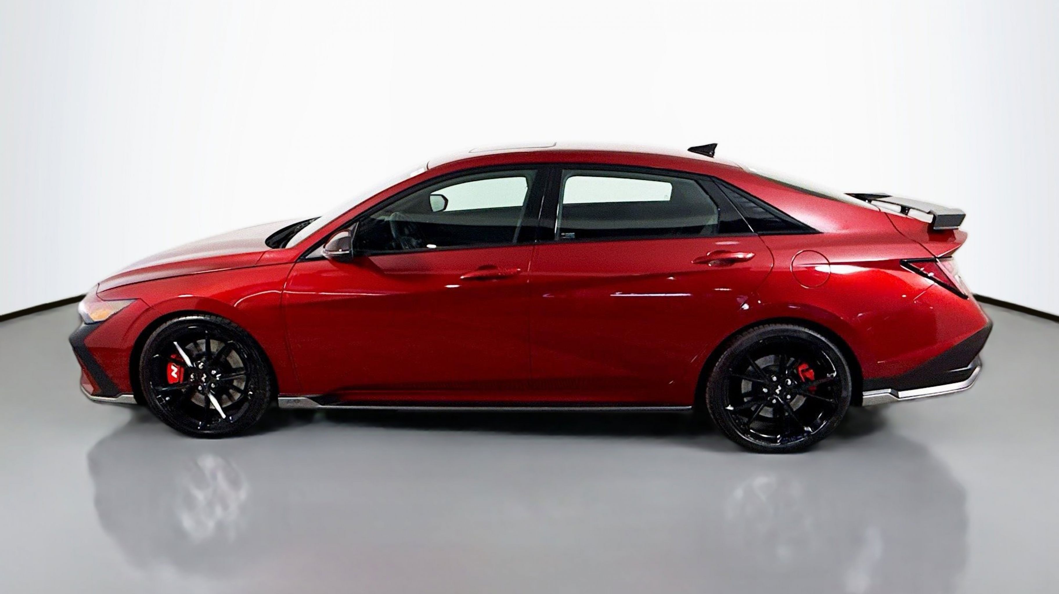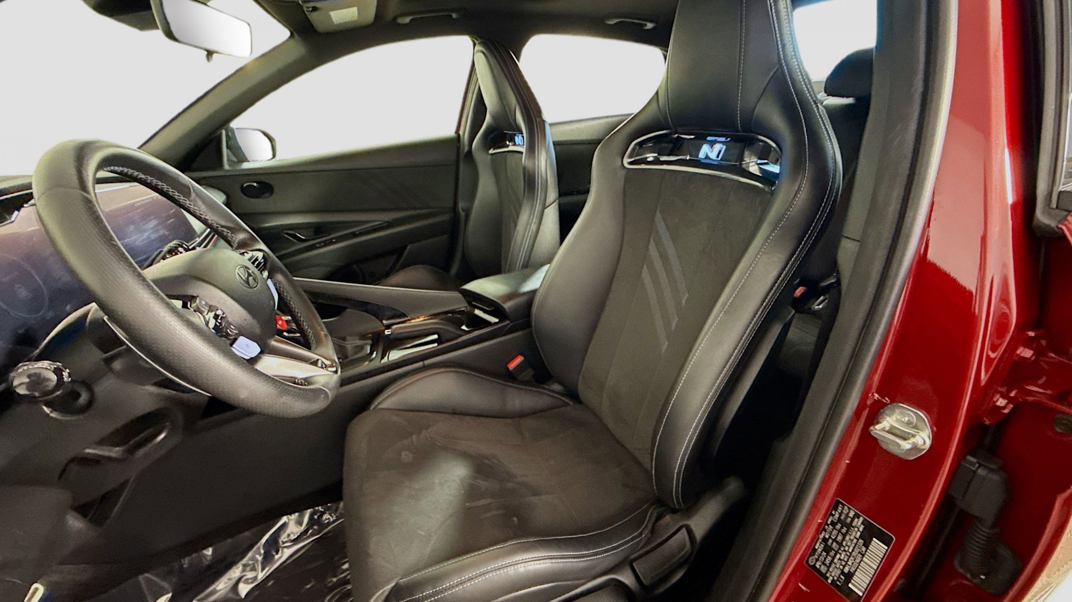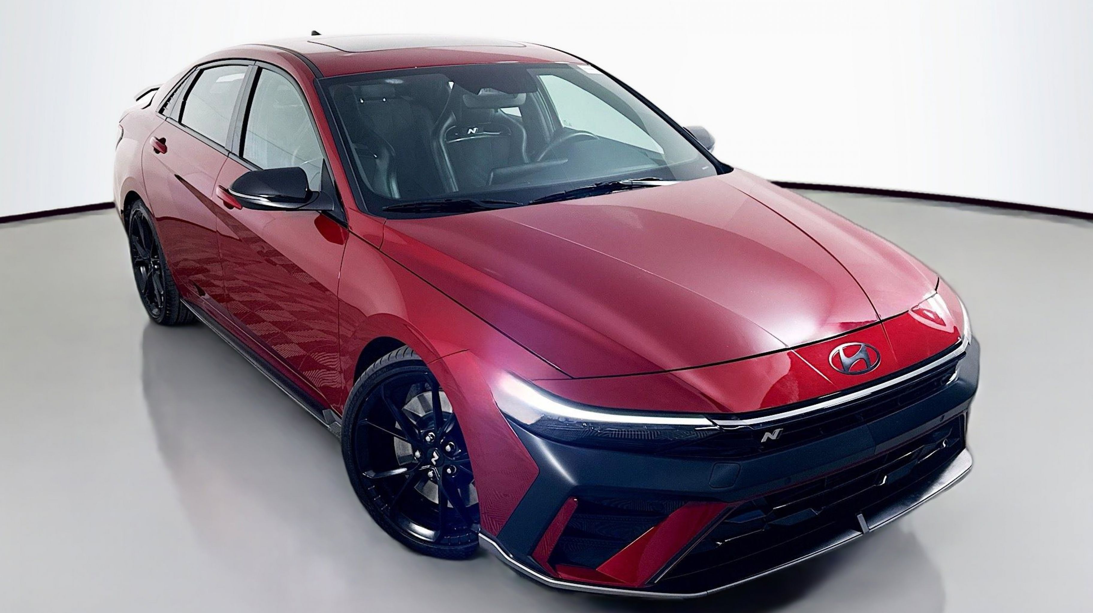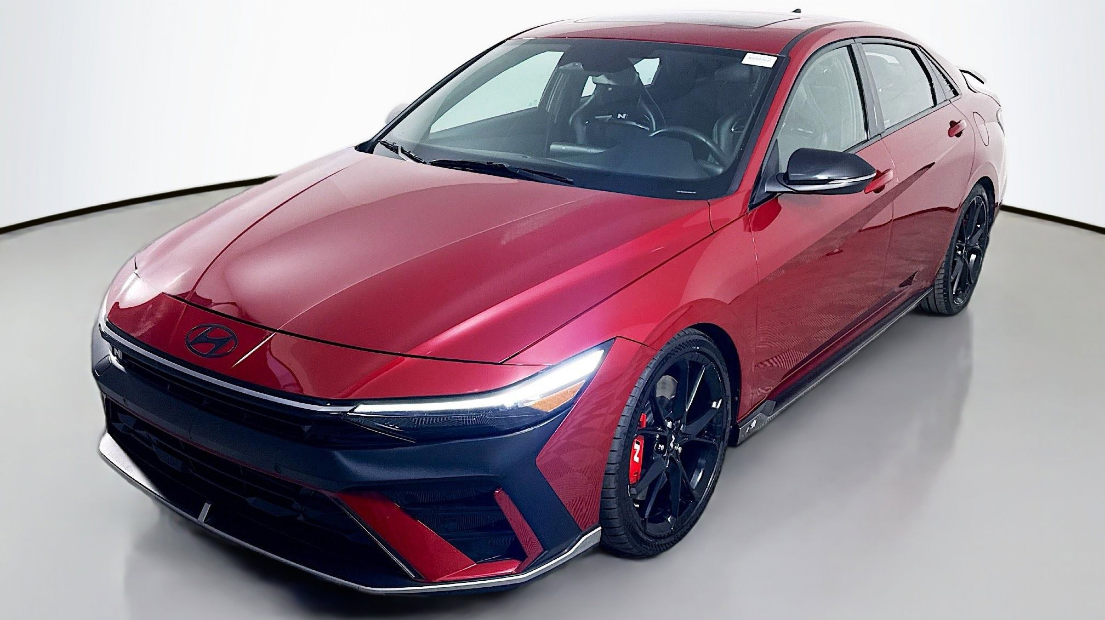 Ultimate red 2024 Hyundai Elantra N FWD N 8-Speed Wet Dual Clutch 2.0L Turbocharged Option Group 01, 4-Wheel Disc Brakes, 8 Speakers, ABS brakes, Air Conditioning, Alloy wheels, AM/FM radio: SiriusXM, Apple CarPlay & Android Auto, Auto High-beam Headlights, Automatic temperature control, Brake assist, Bumpers: body-color, Cargo Net, Compass, Delay-off headlights, Driver door bin, Driver vanity mirror, Dual front impact airbags, Dual front side impact airbags, Electronic Stability Control, Emergency communication system, Exterior Parking Camera Rear, Four wheel independent suspension, Front anti-roll bar, Front Bucket Seats, Front Center Armrest w/Storage, Front dual zone A/C, Front reading lights, Fully automatic headlights, Heated door mirrors, Heated front seats, Illuminated entry, Leather Shift Knob, Leather steering wheel, Leather-Trimmed w/Alcantara Inserts Seat Trim, Low tire pressure warning, N Light Heated Sport Bucket Seats, Navigation System, Occupant sensing airbag, Outside temperature display, Overhead airbag, Overhead console, Panic alarm, Passenger door bin, Passenger vanity mirror, Power door mirrors, Power steering, Power windows, Radio: Bose AM/FM/HD/SXM Audio System, Rear side impact airbag, Rear window defroster, Remote keyless entry, Reversible Cargo Tray, Security system, Speed control, Speed-sensing steering, Spoiler, Steering wheel mounted audio controls, Tachometer, Telescoping steering wheel, Tilt steering wheel, Traction control, Trip computer, Turn signal indicator mirrors, Variably intermittent wipers, Wheel Locks, Wheels: 19 x 8.0 Forged Alloy, Option Group 01.