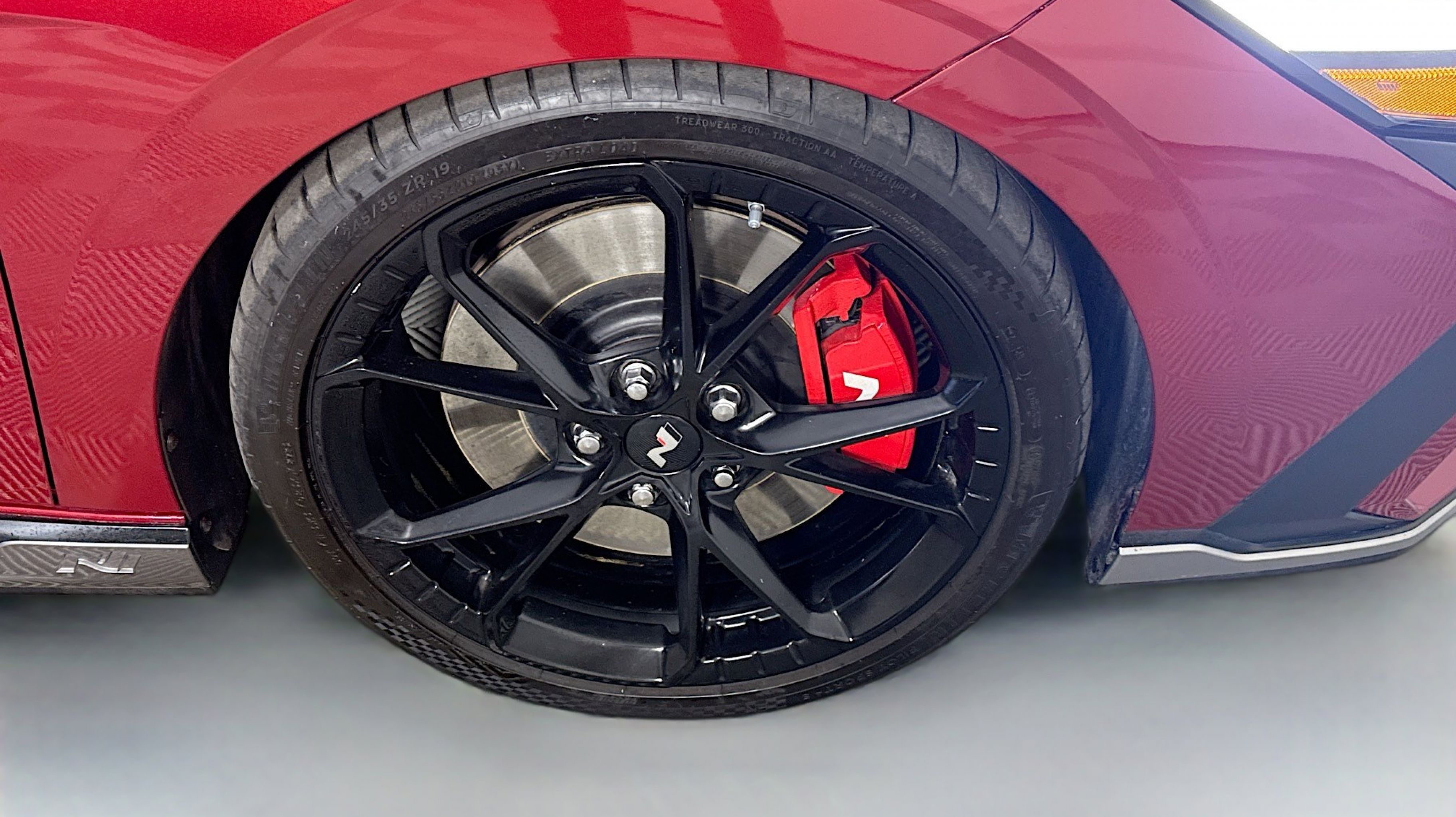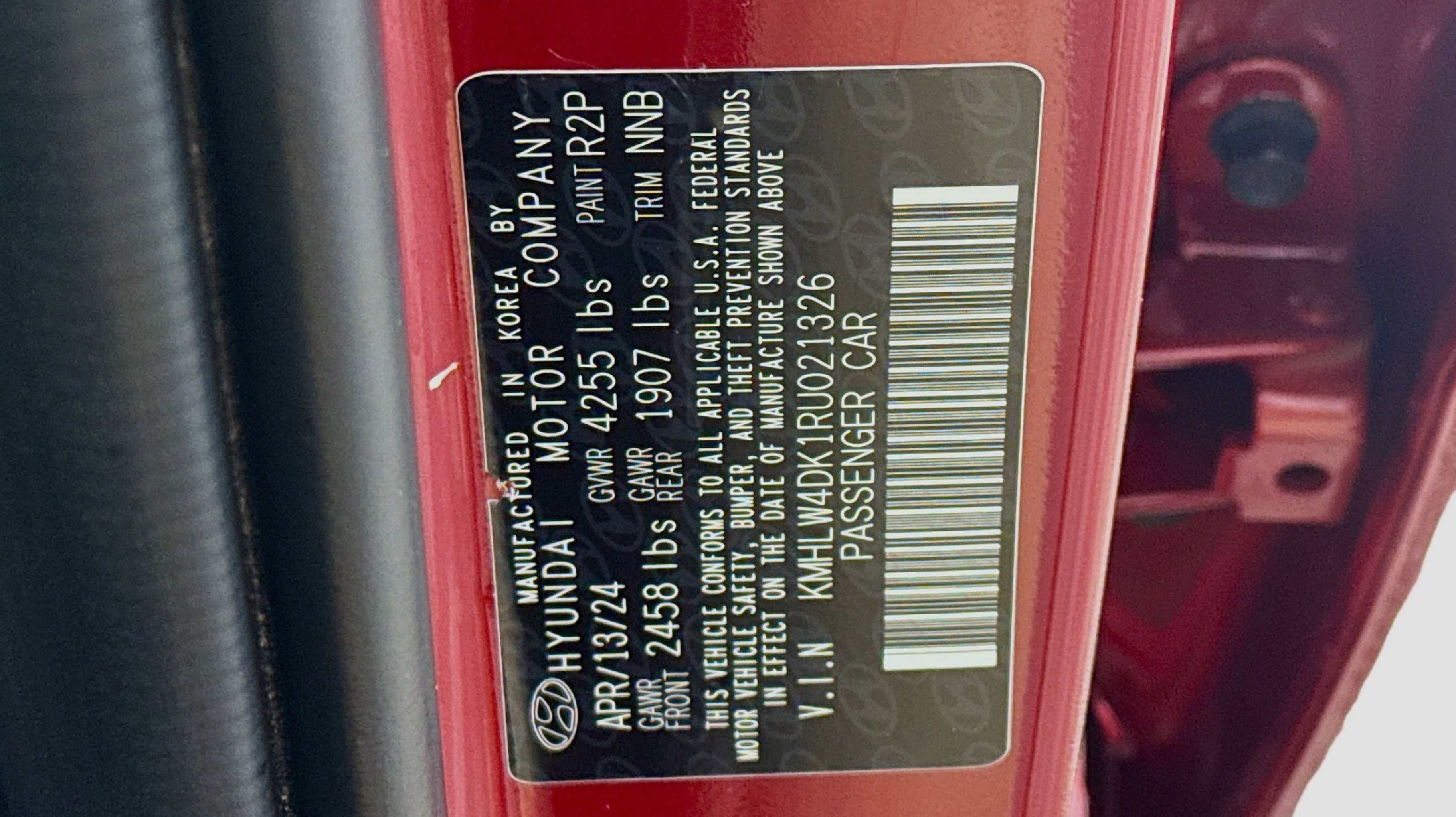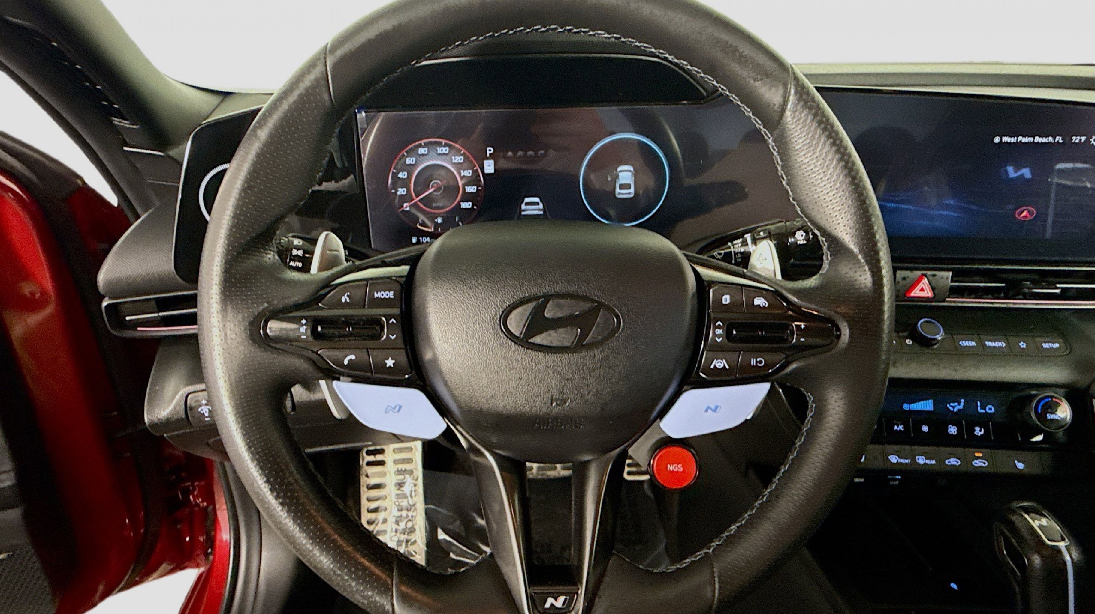 Ultimate red 2024 Hyundai Elantra N FWD N 8-Speed Wet Dual Clutch 2.0L Turbocharged Option Group 01, 4-Wheel Disc Brakes, 8 Speakers, ABS brakes, Air Conditioning, Alloy wheels, AM/FM radio: SiriusXM, Apple CarPlay & Android Auto, Auto High-beam Headlights, Automatic temperature control, Brake assist, Bumpers: body-color, Cargo Net, Compass, Delay-off headlights, Driver door bin, Driver vanity mirror, Dual front impact airbags, Dual front side impact airbags, Electronic Stability Control, Emergency communication system, Exterior Parking Camera Rear, Four wheel independent suspension, Front anti-roll bar, Front Bucket Seats, Front Center Armrest w/Storage, Front dual zone A/C, Front reading lights, Fully automatic headlights, Heated door mirrors, Heated front seats, Illuminated entry, Leather Shift Knob, Leather steering wheel, Leather-Trimmed w/Alcantara Inserts Seat Trim, Low tire pressure warning, N Light Heated Sport Bucket Seats, Navigation System, Occupant sensing airbag, Outside temperature display, Overhead airbag, Overhead console, Panic alarm, Passenger door bin, Passenger vanity mirror, Power door mirrors, Power steering, Power windows, Radio: Bose AM/FM/HD/SXM Audio System, Rear side impact airbag, Rear window defroster, Remote keyless entry, Reversible Cargo Tray, Security system, Speed control, Speed-sensing steering, Spoiler, Steering wheel mounted audio controls, Tachometer, Telescoping steering wheel, Tilt steering wheel, Traction control, Trip computer, Turn signal indicator mirrors, Variably intermittent wipers, Wheel Locks, Wheels: 19 x 8.0 Forged Alloy, Option Group 01.
