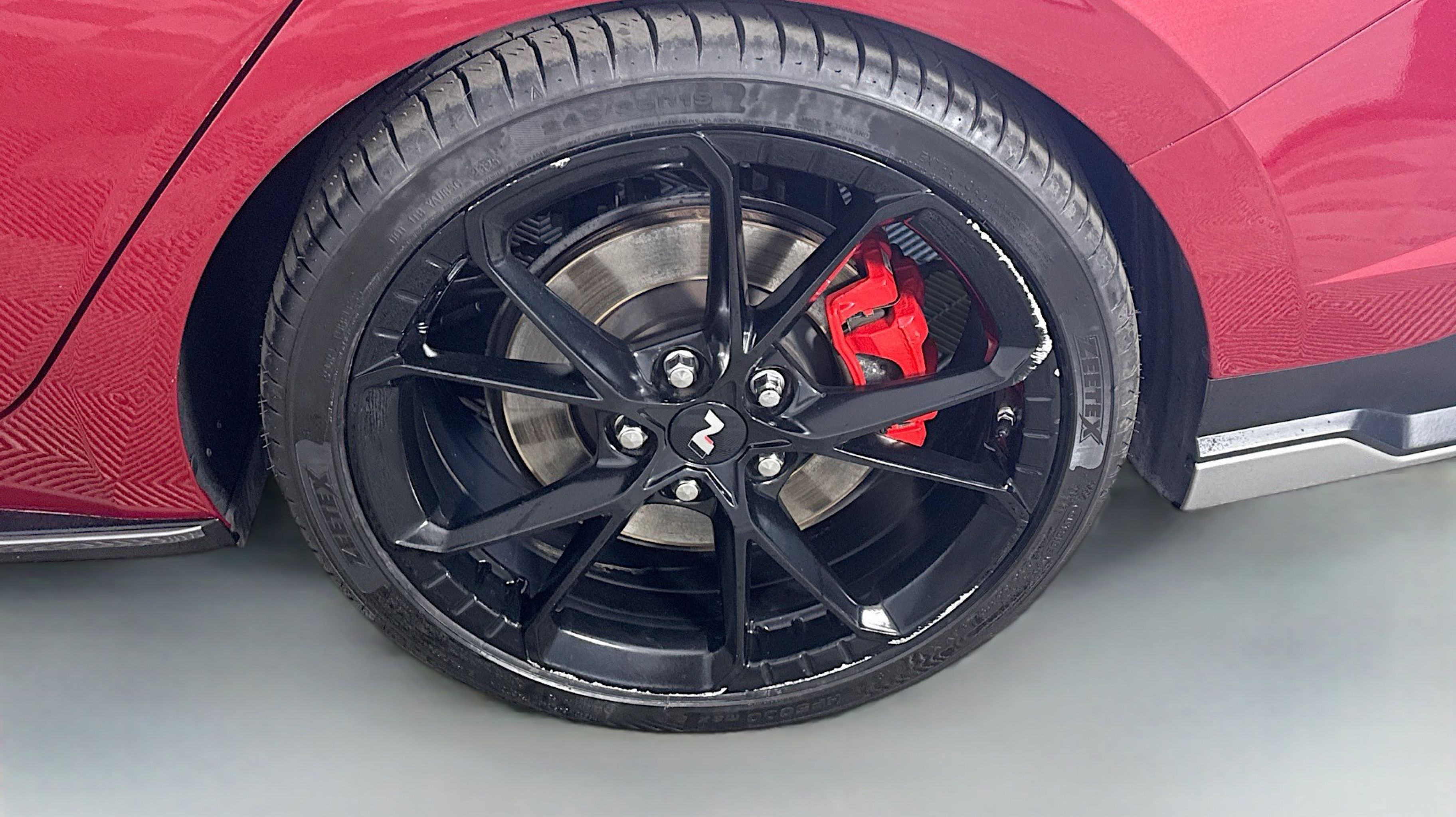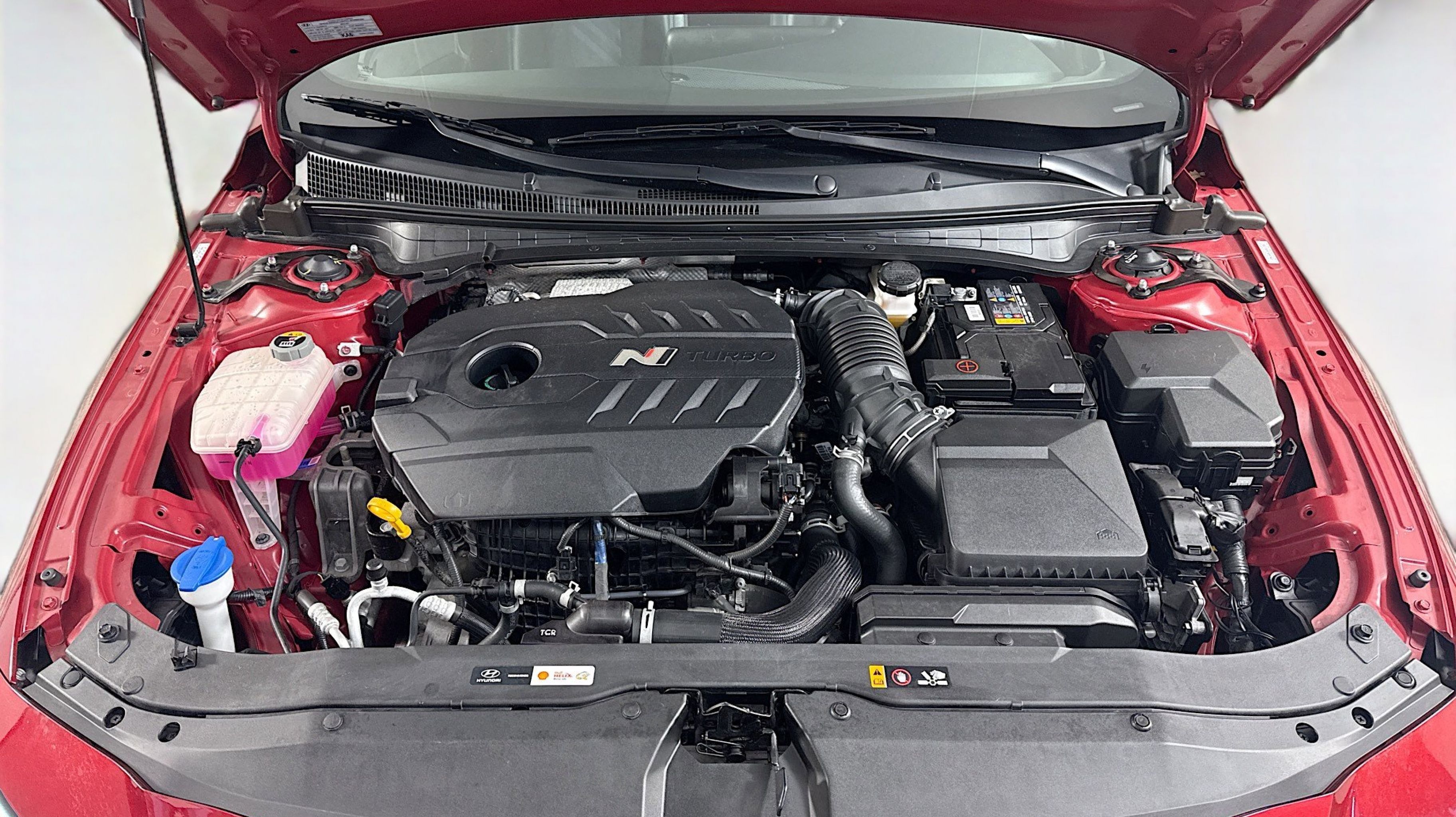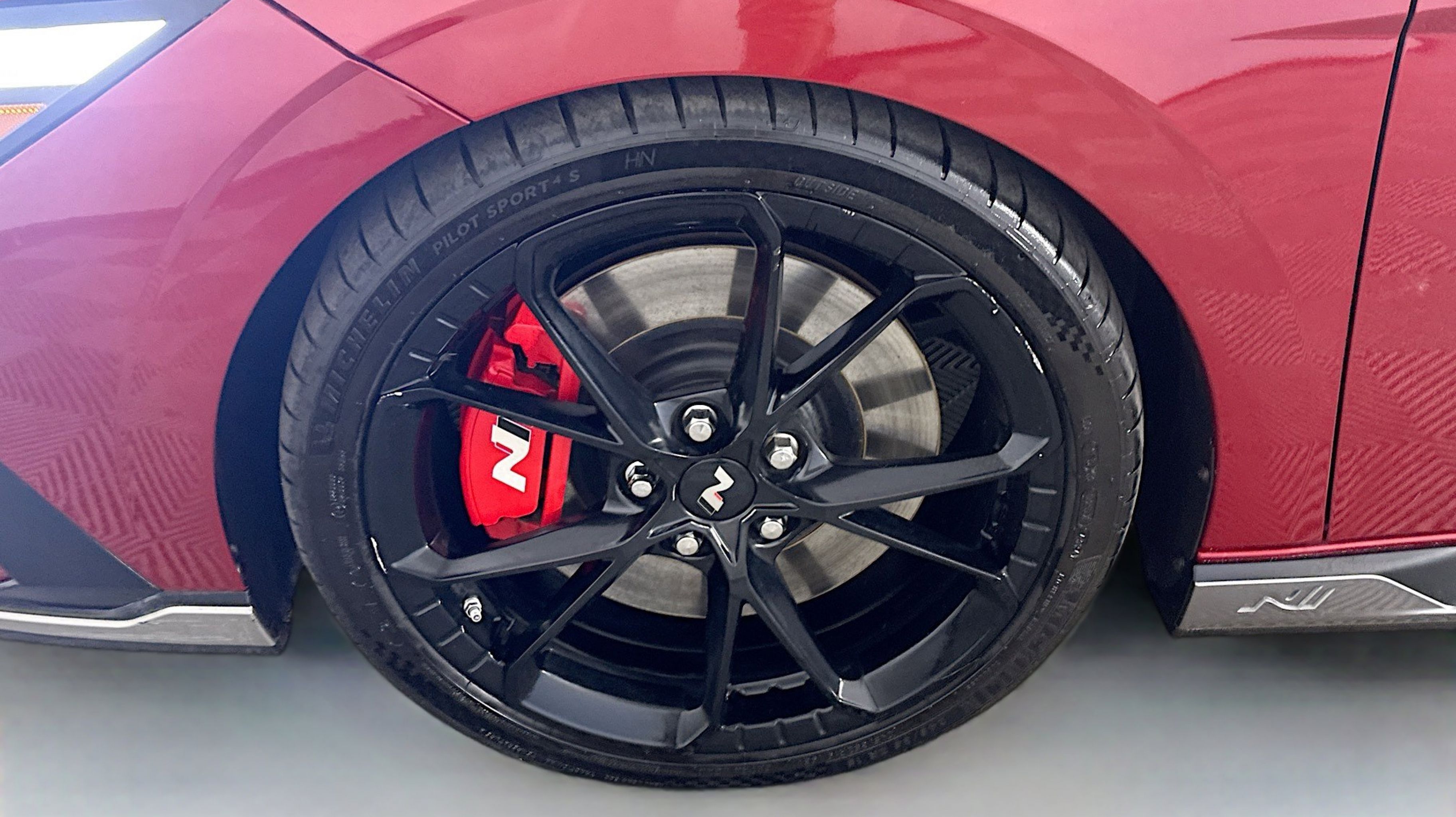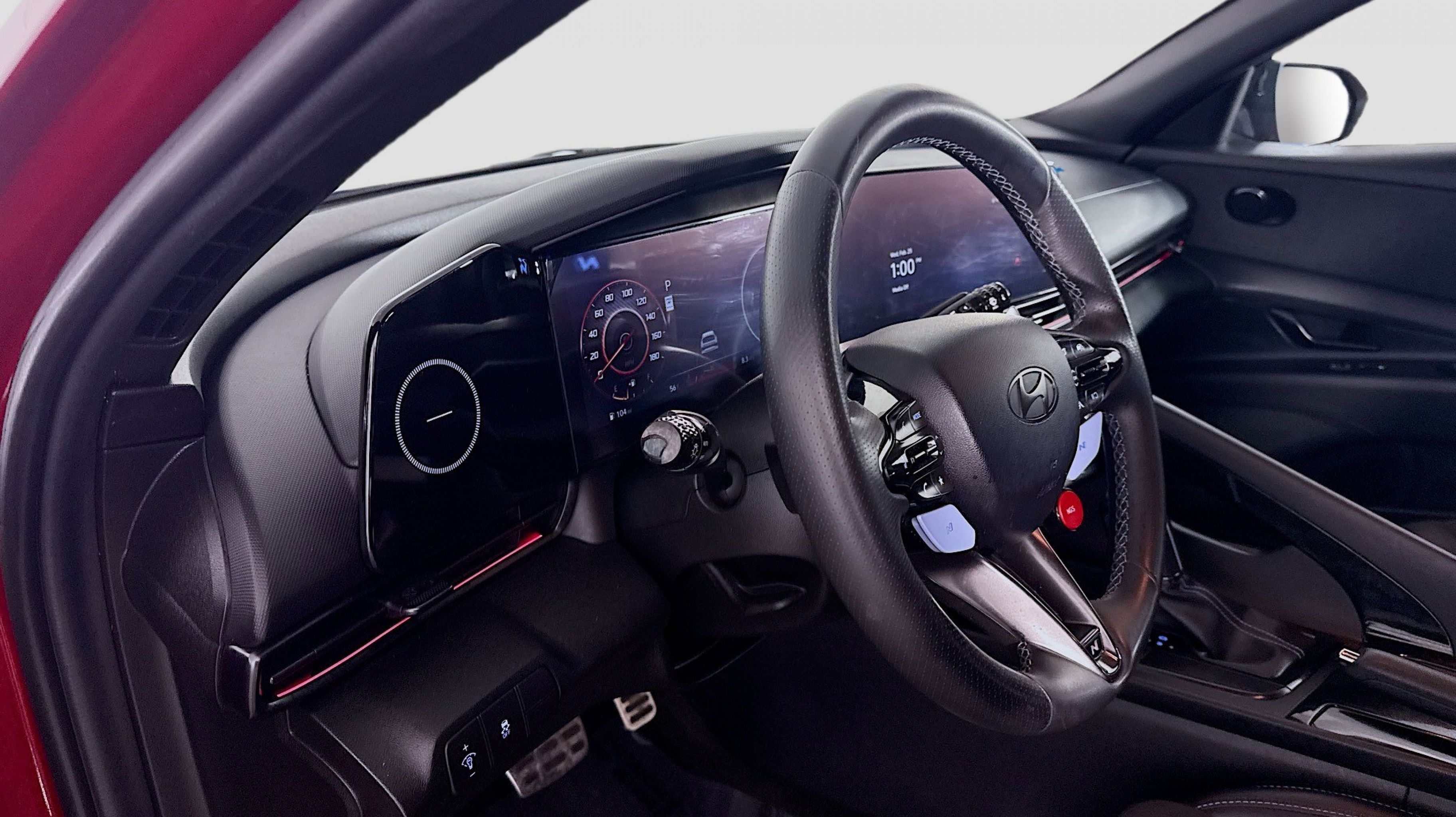 Ultimate red 2024 Hyundai Elantra N FWD N 8-Speed Wet Dual Clutch 2.0L Turbocharged Option Group 01, 4-Wheel Disc Brakes, 8 Speakers, ABS brakes, Air Conditioning, Alloy wheels, AM/FM radio: SiriusXM, Apple CarPlay & Android Auto, Auto High-beam Headlights, Automatic temperature control, Brake assist, Bumpers: body-color, Cargo Net, Compass, Delay-off headlights, Driver door bin, Driver vanity mirror, Dual front impact airbags, Dual front side impact airbags, Electronic Stability Control, Emergency communication system, Exterior Parking Camera Rear, Four wheel independent suspension, Front anti-roll bar, Front Bucket Seats, Front Center Armrest w/Storage, Front dual zone A/C, Front reading lights, Fully automatic headlights, Heated door mirrors, Heated front seats, Illuminated entry, Leather Shift Knob, Leather steering wheel, Leather-Trimmed w/Alcantara Inserts Seat Trim, Low tire pressure warning, N Light Heated Sport Bucket Seats, Navigation System, Occupant sensing airbag, Outside temperature display, Overhead airbag, Overhead console, Panic alarm, Passenger door bin, Passenger vanity mirror, Power door mirrors, Power steering, Power windows, Radio: Bose AM/FM/HD/SXM Audio System, Rear side impact airbag, Rear window defroster, Remote keyless entry, Reversible Cargo Tray, Security system, Speed control, Speed-sensing steering, Spoiler, Steering wheel mounted audio controls, Tachometer, Telescoping steering wheel, Tilt steering wheel, Traction control, Trip computer, Turn signal indicator mirrors, Variably intermittent wipers, Wheel Locks, Wheels: 19 x 8.0 Forged Alloy, Option Group 01.